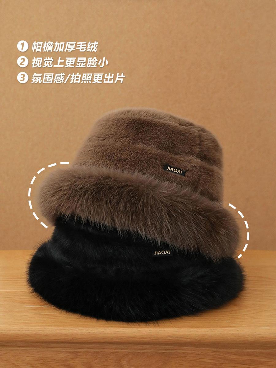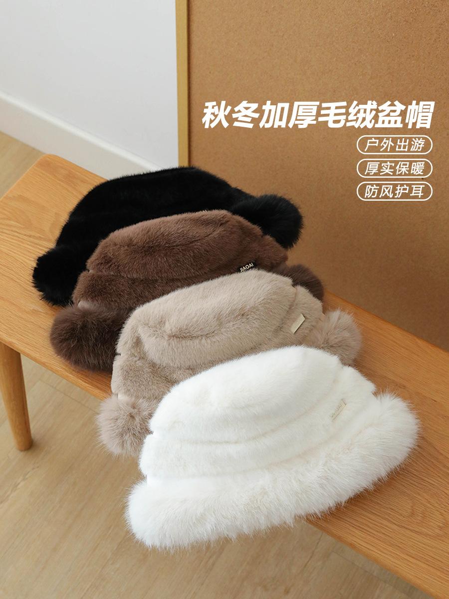 Gorro de pescador de felpa gruesa y cálido para turismo de invierno, gorro Baotou para mujer, resistente al frío y con protección auditiva para rostro pequeño.