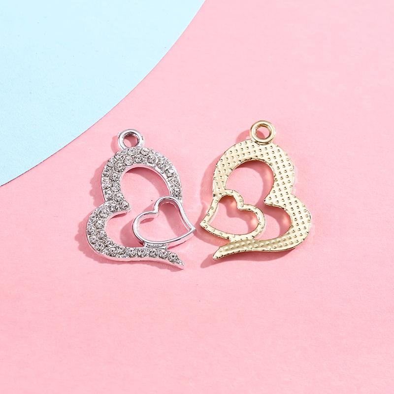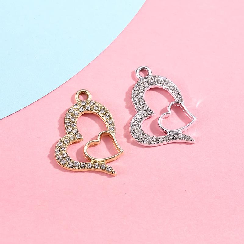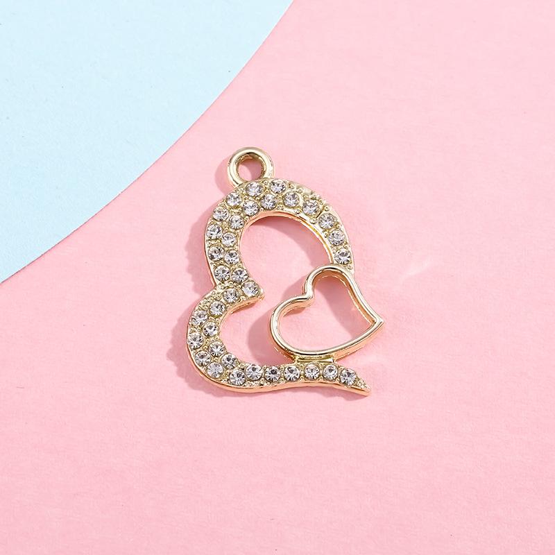 Colgante de Accesorios de Doble Corazón con Diamante Colgante Pequeño Estilo Europeo y Americano Aleación Accesorios Pequeños DIY Collar Pulsera Material de Ropa