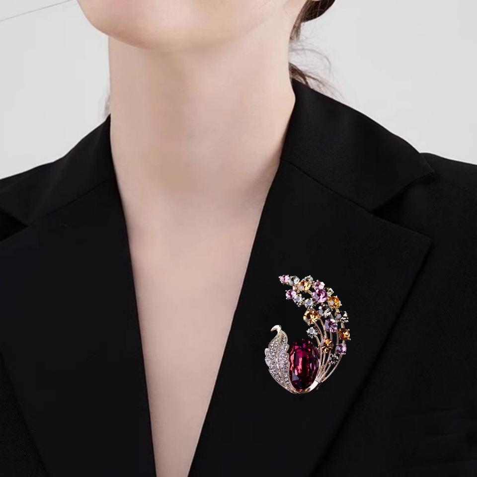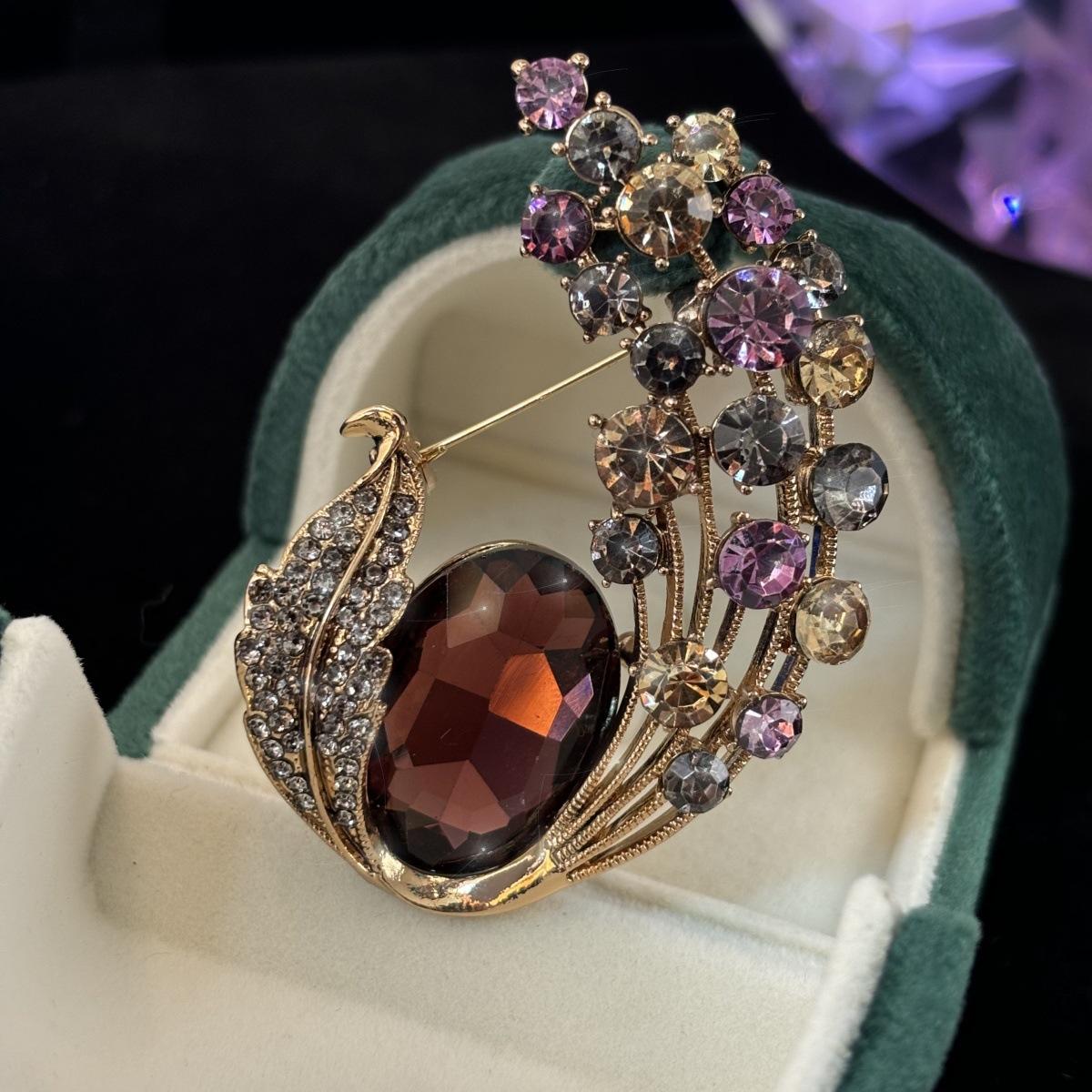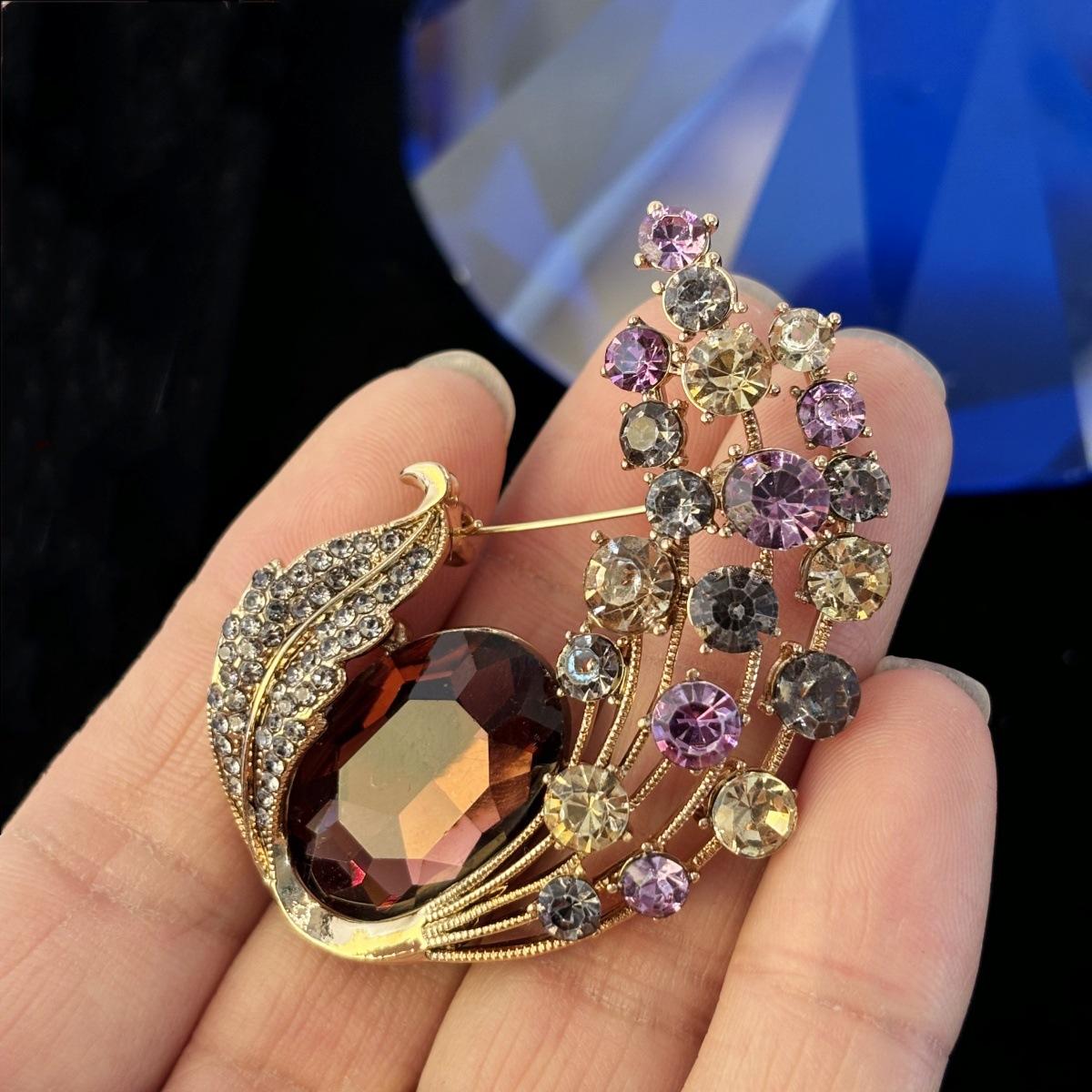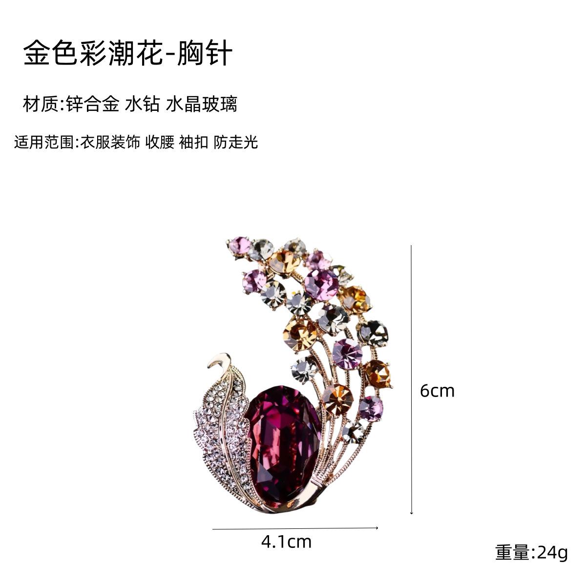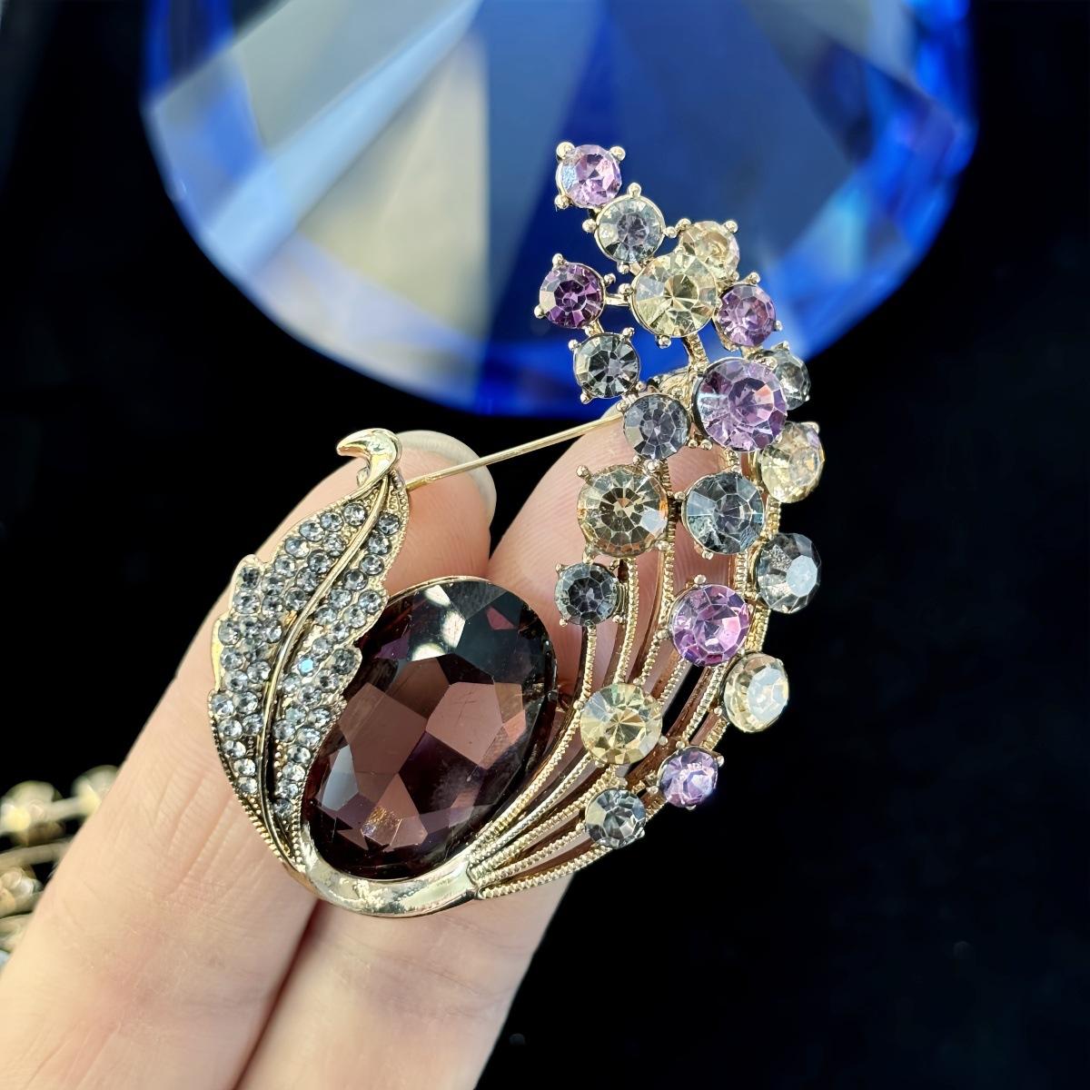 Broche de aleación de estilo europeo y americano, broche de cristal súper brillante de lujo retro atmosférico, broche de ramillete para abrigo de mujer de moda