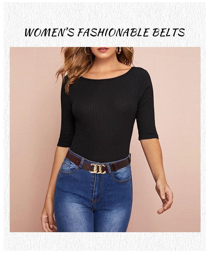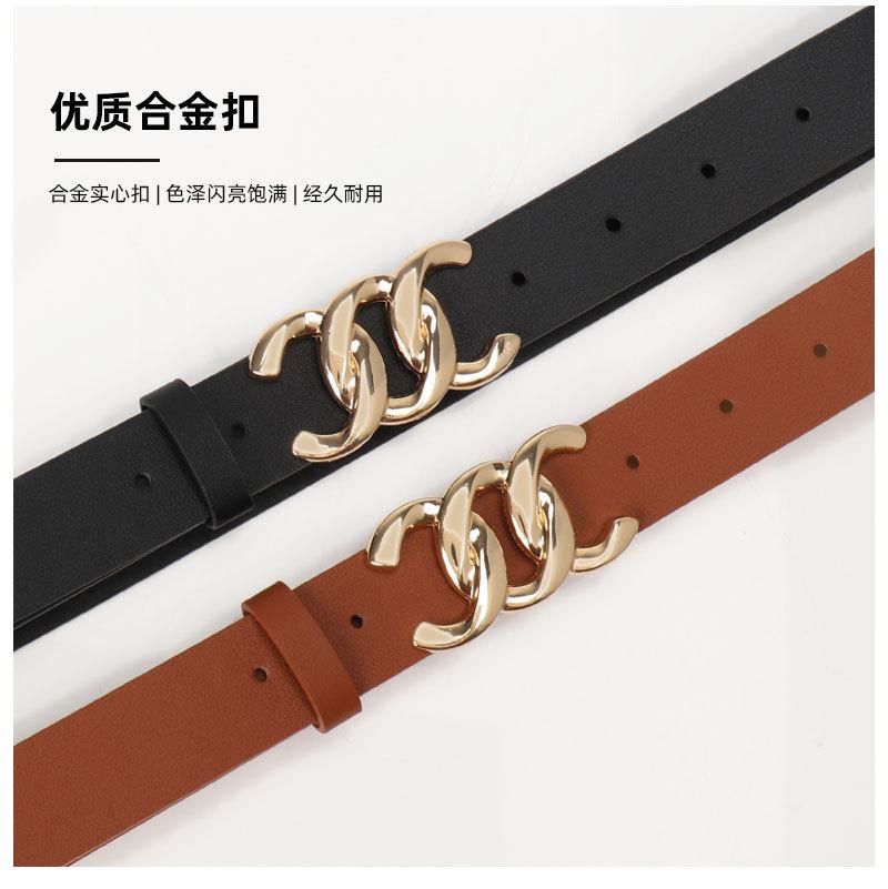 Cinturón de mujer con botón en C de alta gama europeo y americano, estilo CleanFi, sencillo, combinable con todo, para jeans y vestidos de mujer