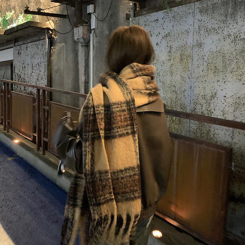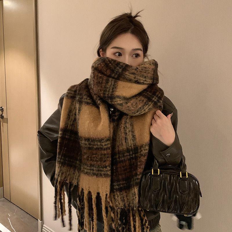 Bufanda a cuadros Maillard de moda nueva para otoño e invierno para combinar con todo, chal a cuadros de alta gama para mujer, borla a juego de colores para el cuello, moda