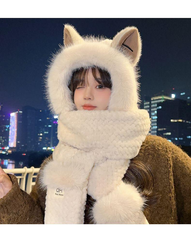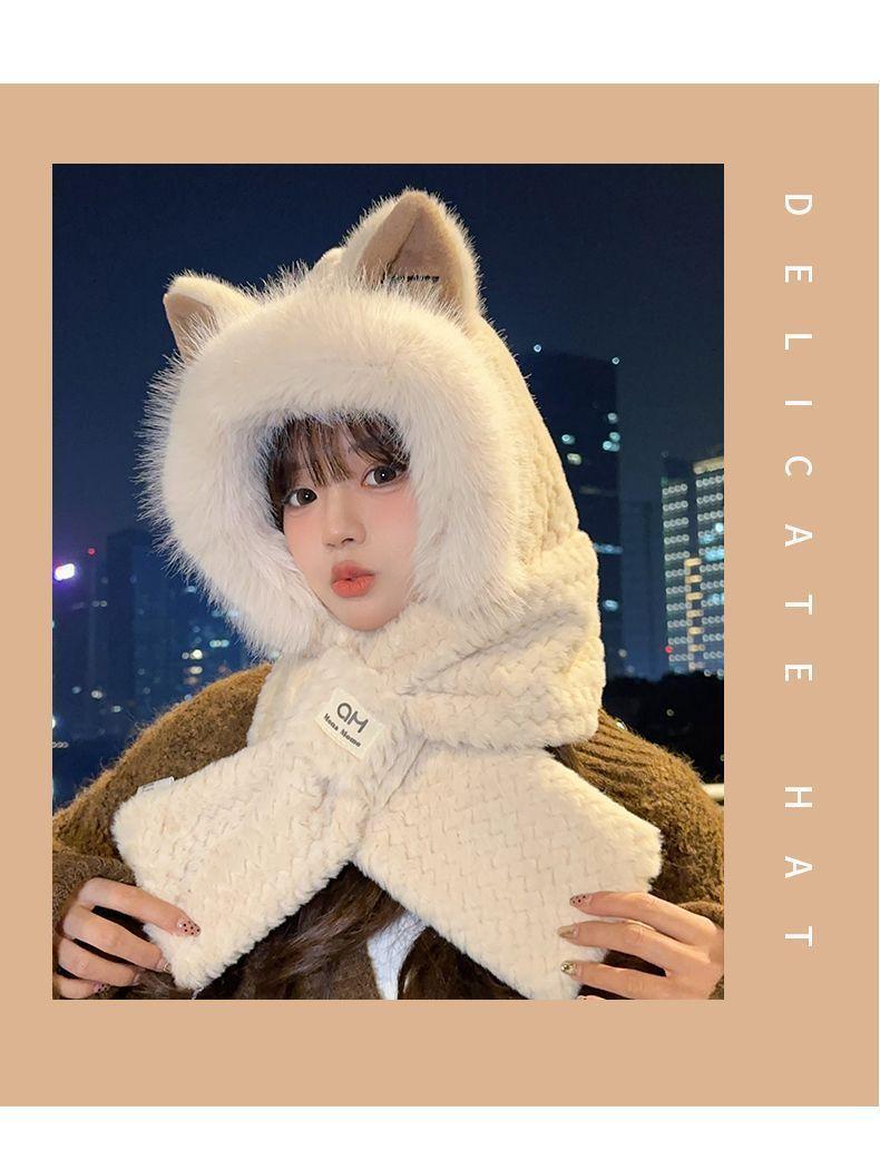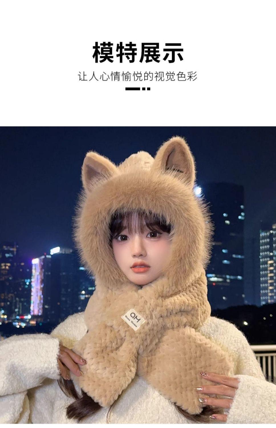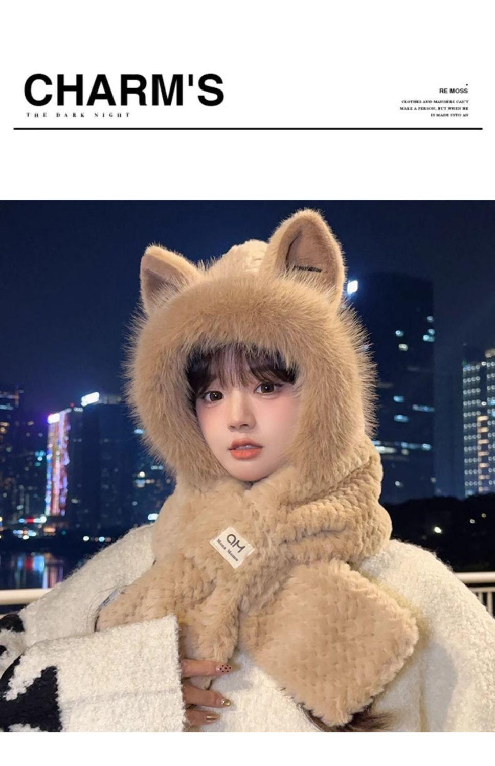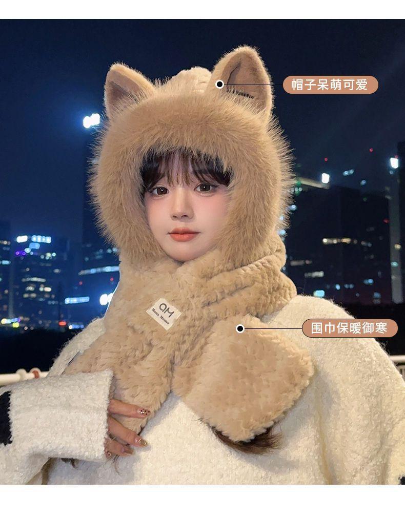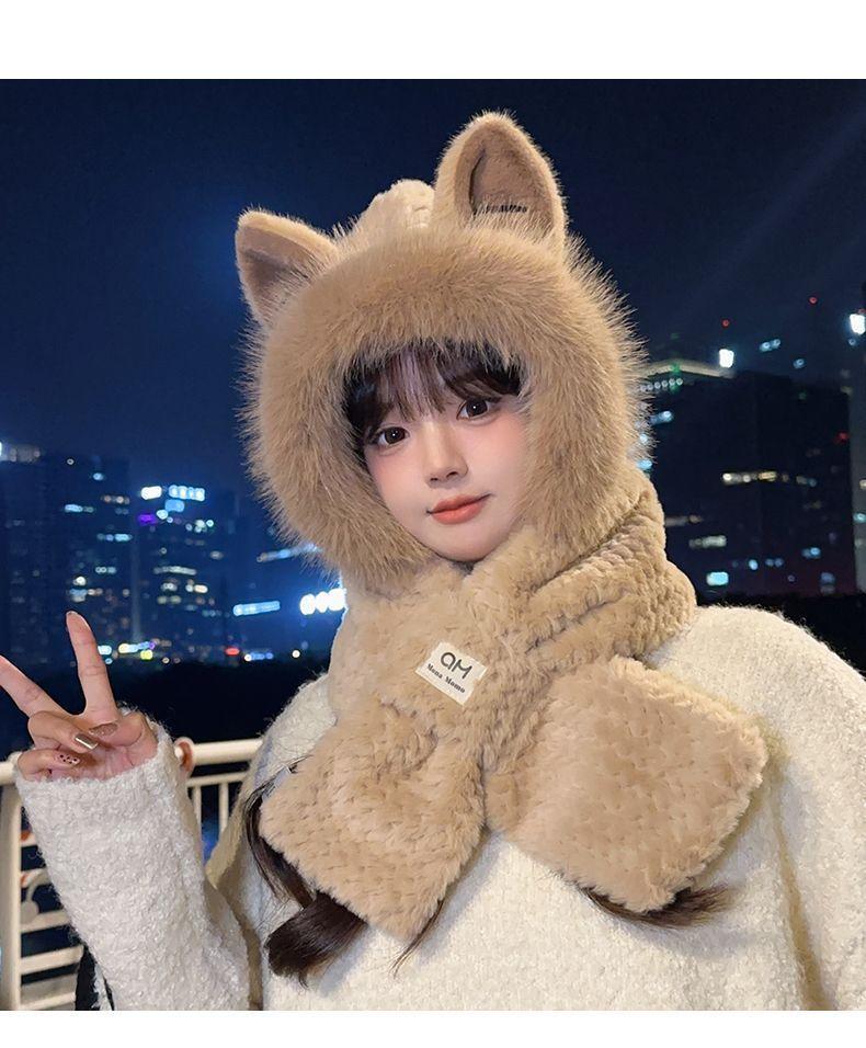 Lindo Protección de Orejas Zorro Nuevo Sombrero Grueso Bufanda Oreja Cuello Uno Otoño e Invierno Felpa A prueba de Frío Cálido
