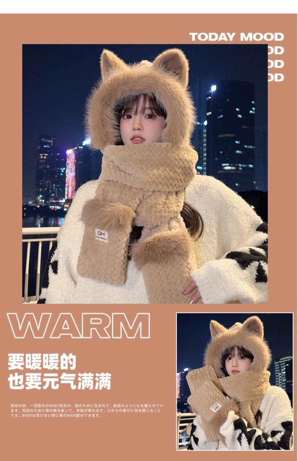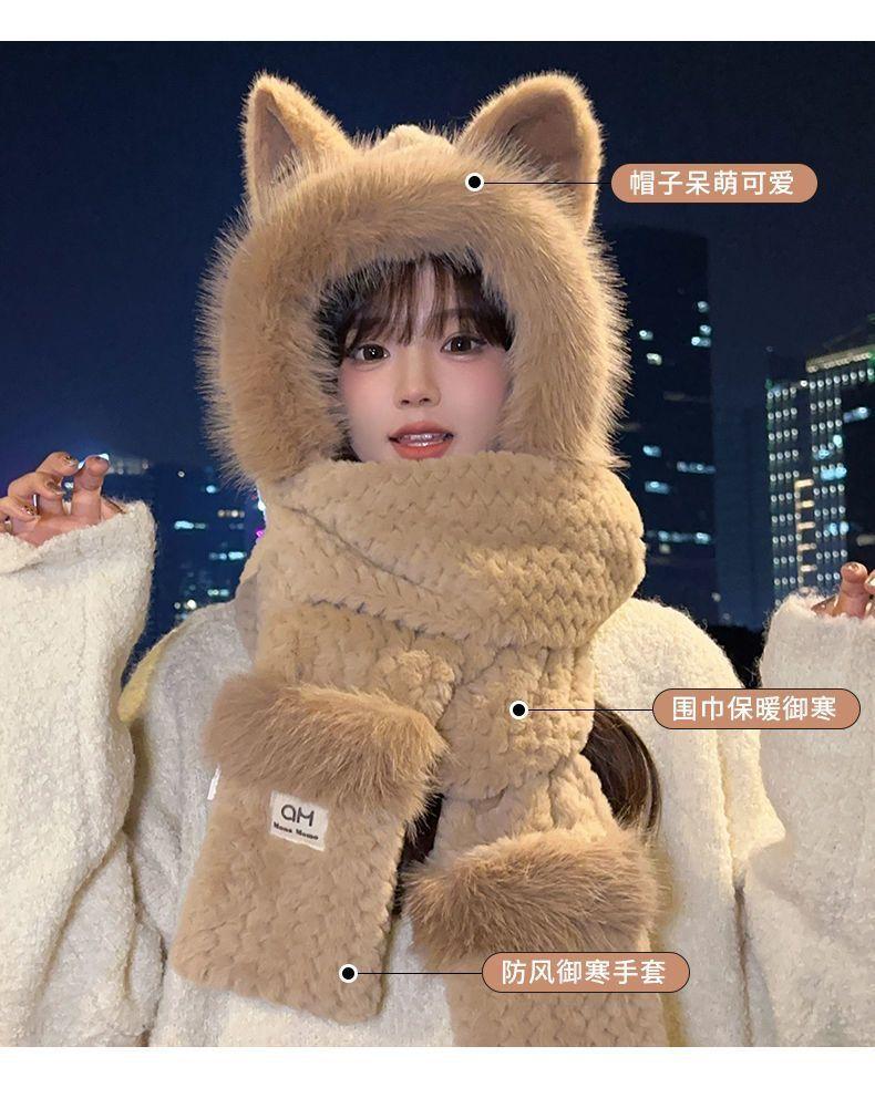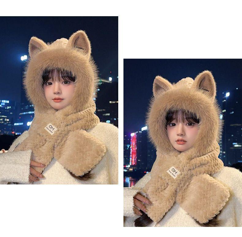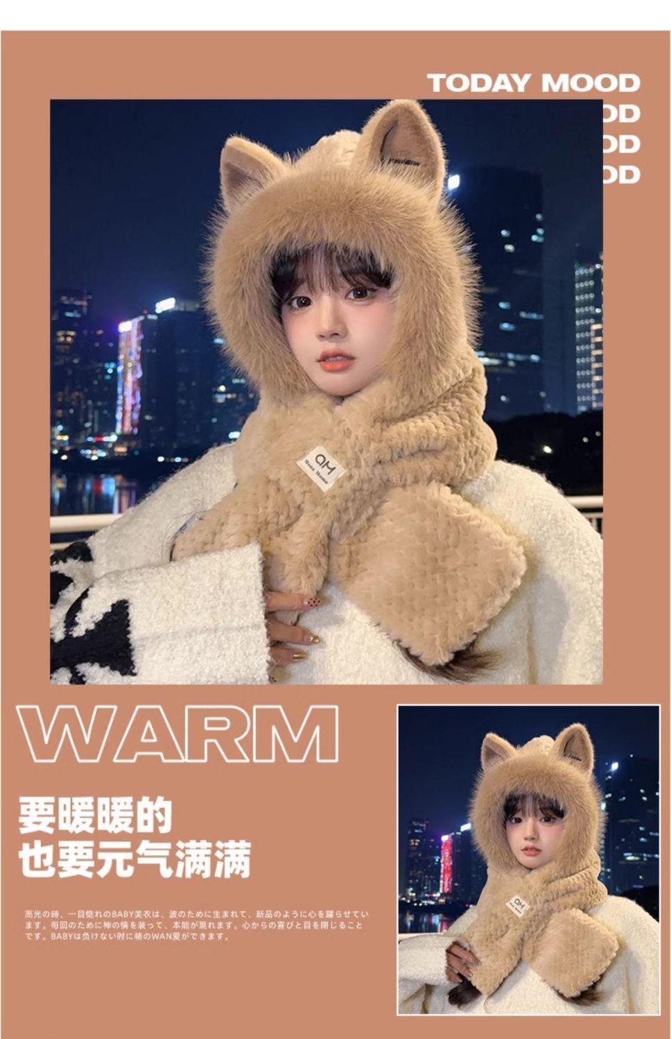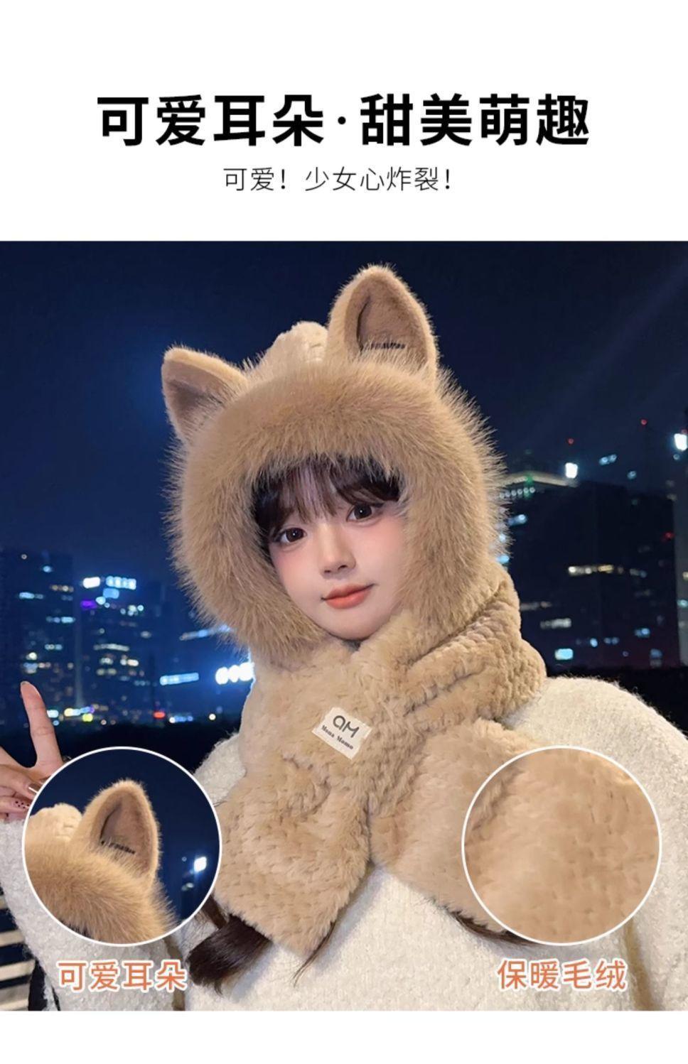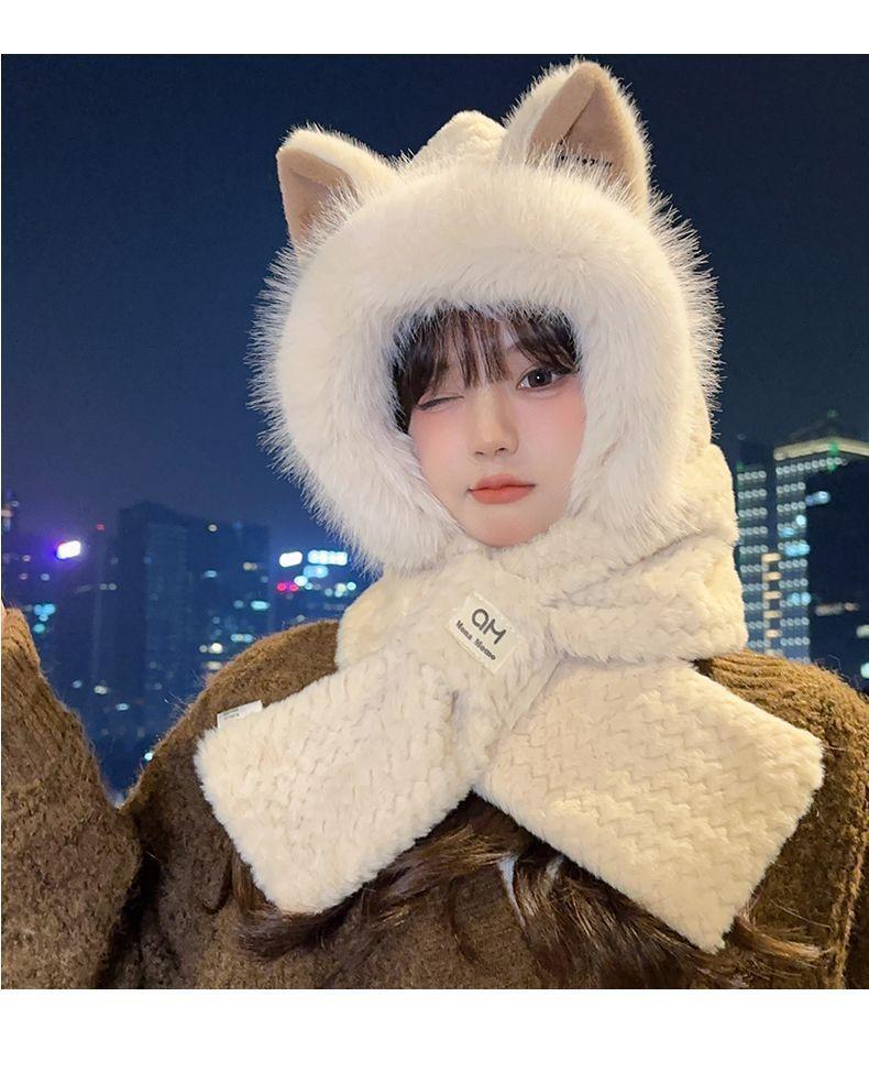Lindo Protección de Orejas Zorro Nuevo Sombrero Grueso Bufanda Oreja Cuello Uno Otoño e Invierno Felpa A prueba de Frío Cálido