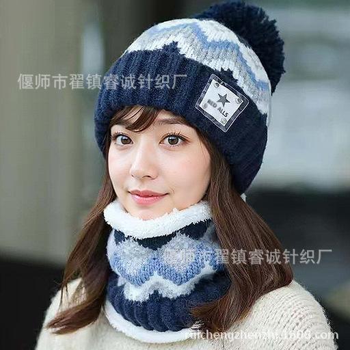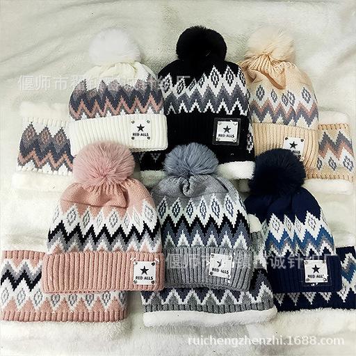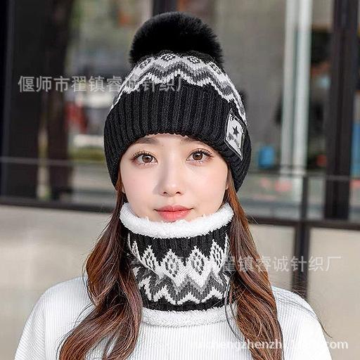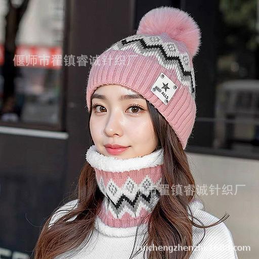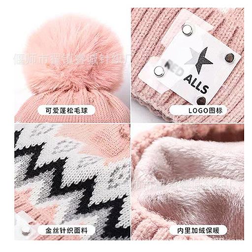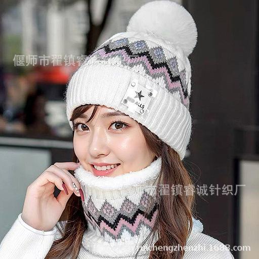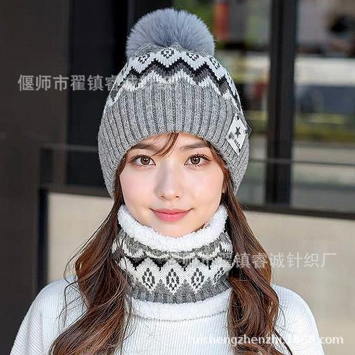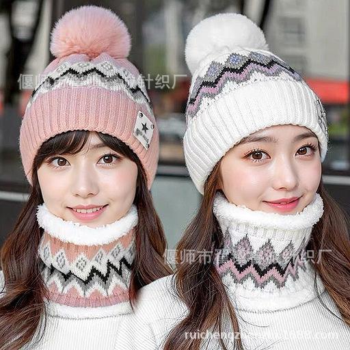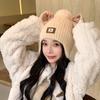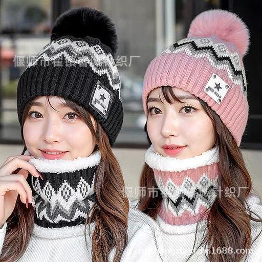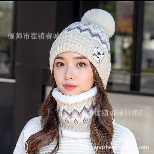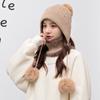Gorro de Invierno para Mujer Estilo Coreano Protección para las Orejas Gorro de Lana Espesado Terciopelo Cálido Gorro con Bola de Pelo Cubre Cuello Gorro de Punto Venta al por Mayor Moda