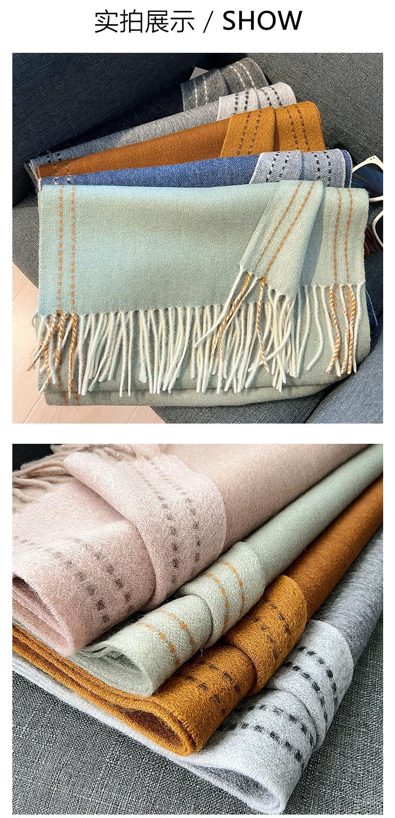 Bufanda 100% lana diseño de costuras de color sólido chal de cachemira de doble cara invierno grueso moda cálido bufanda de alta gama