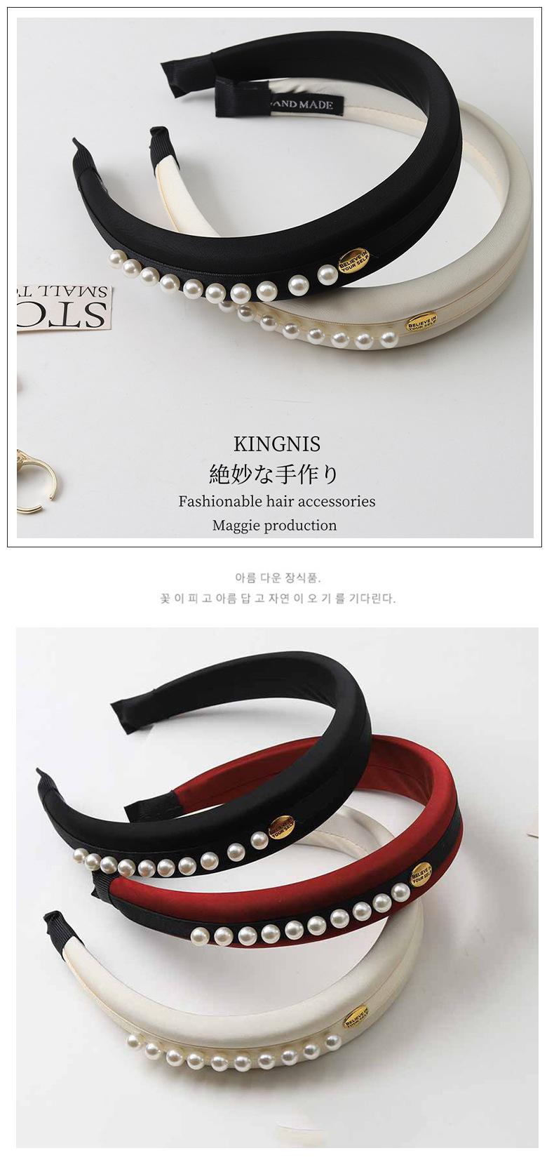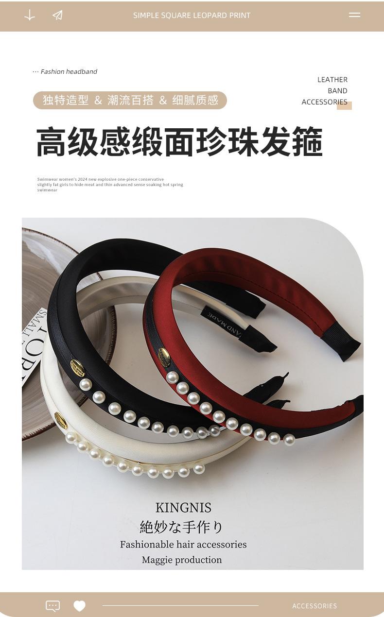 Nueva diadema de satén con perlas de alta calidad para la cabeza, estilo coreano, con pinzas para el pelo, accesorios elegantes para el cabello que combinan con todo.