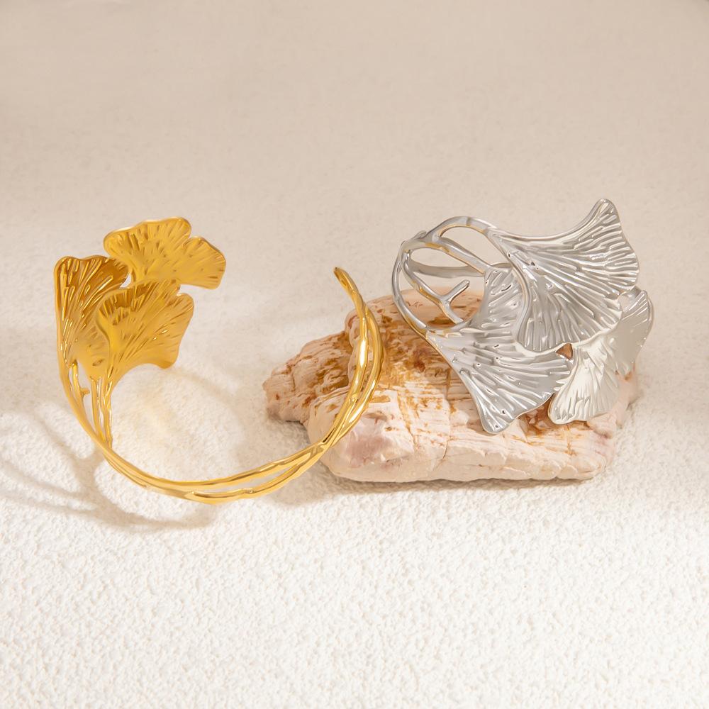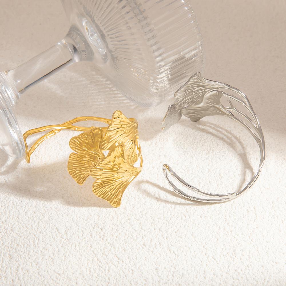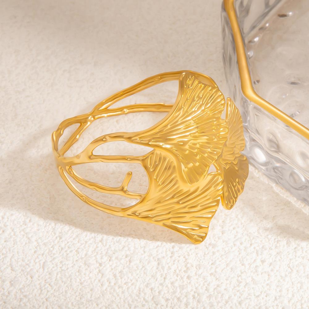 Pulsera de Titanio Europea y Americana Transfronteriza Diseño Nicho Creativo Pulsera Hoja de Ginkgo Pulsera de Gama Alta para Mujer Pulsera