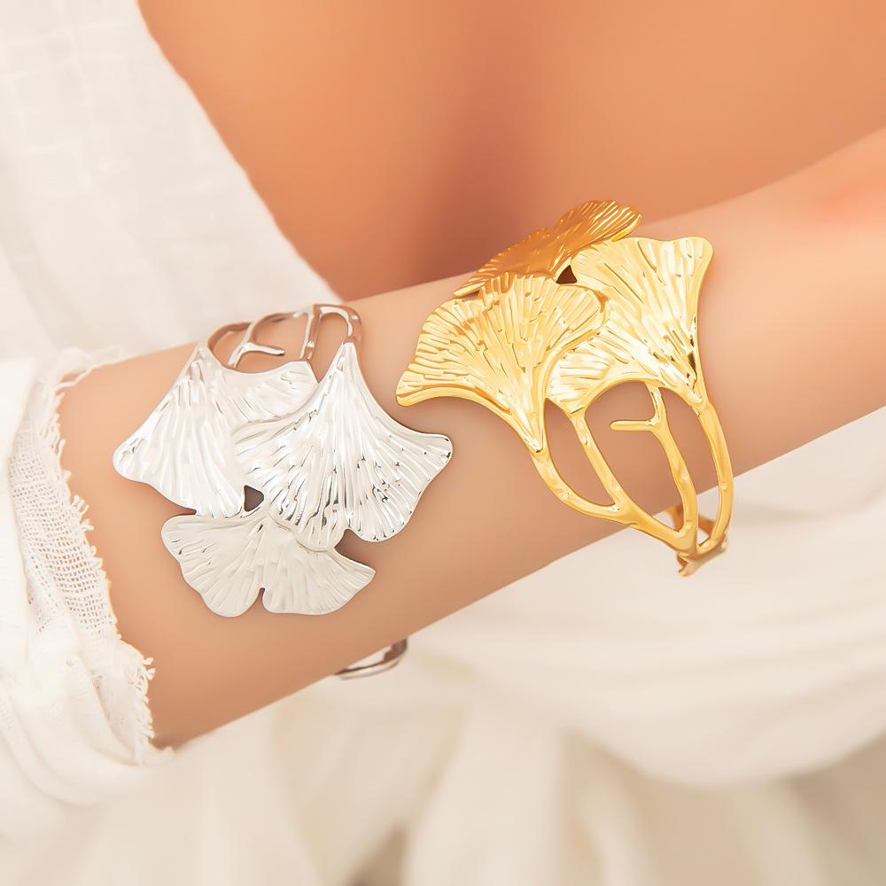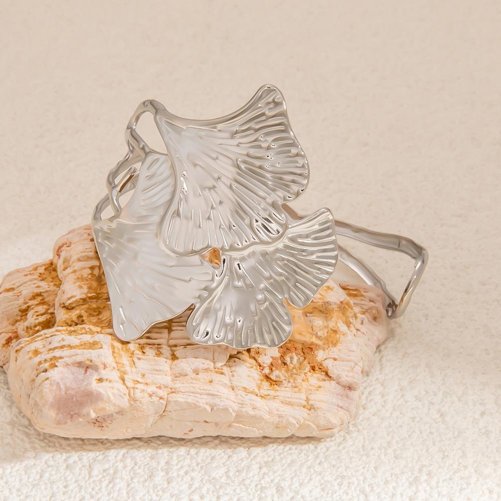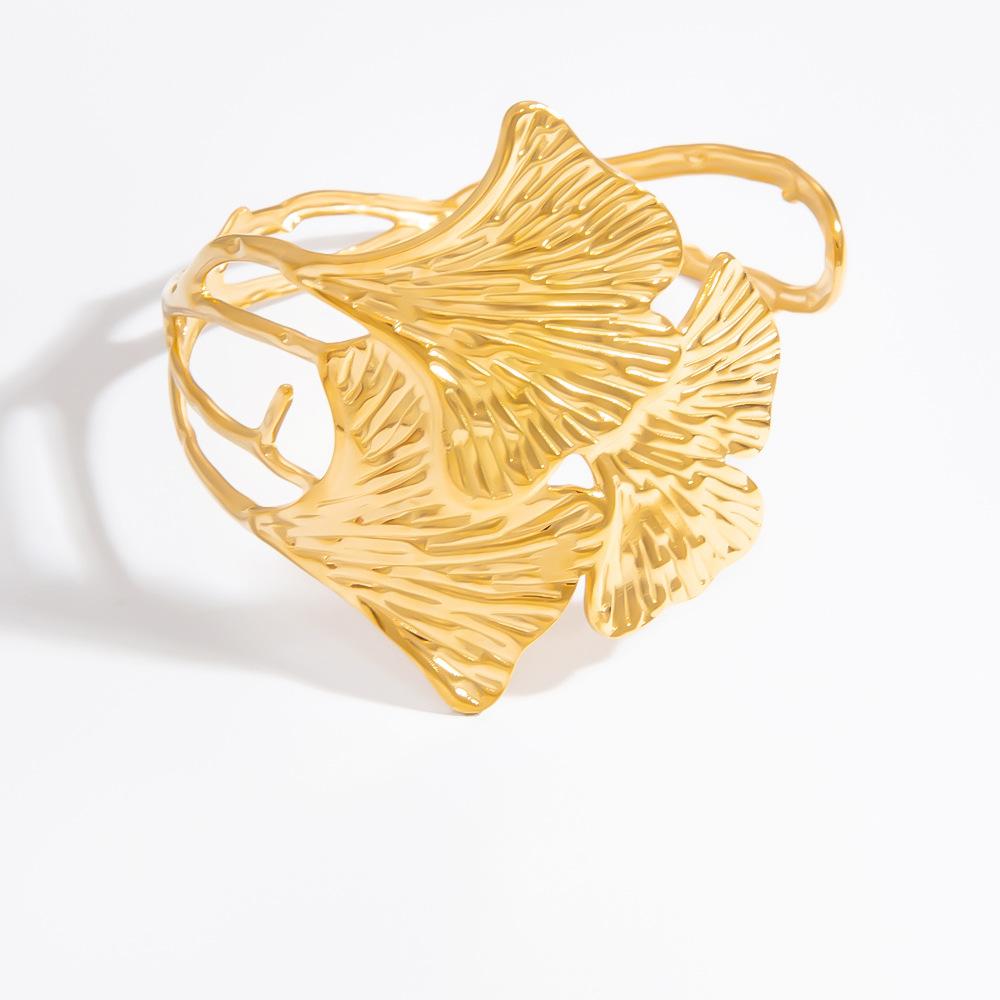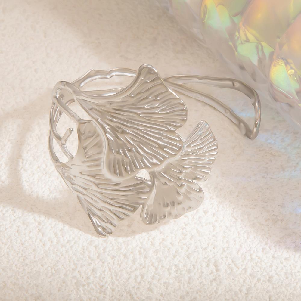 Pulsera de Titanio Europea y Americana Transfronteriza Diseño Nicho Creativo Pulsera Hoja de Ginkgo Pulsera de Gama Alta para Mujer Pulsera
