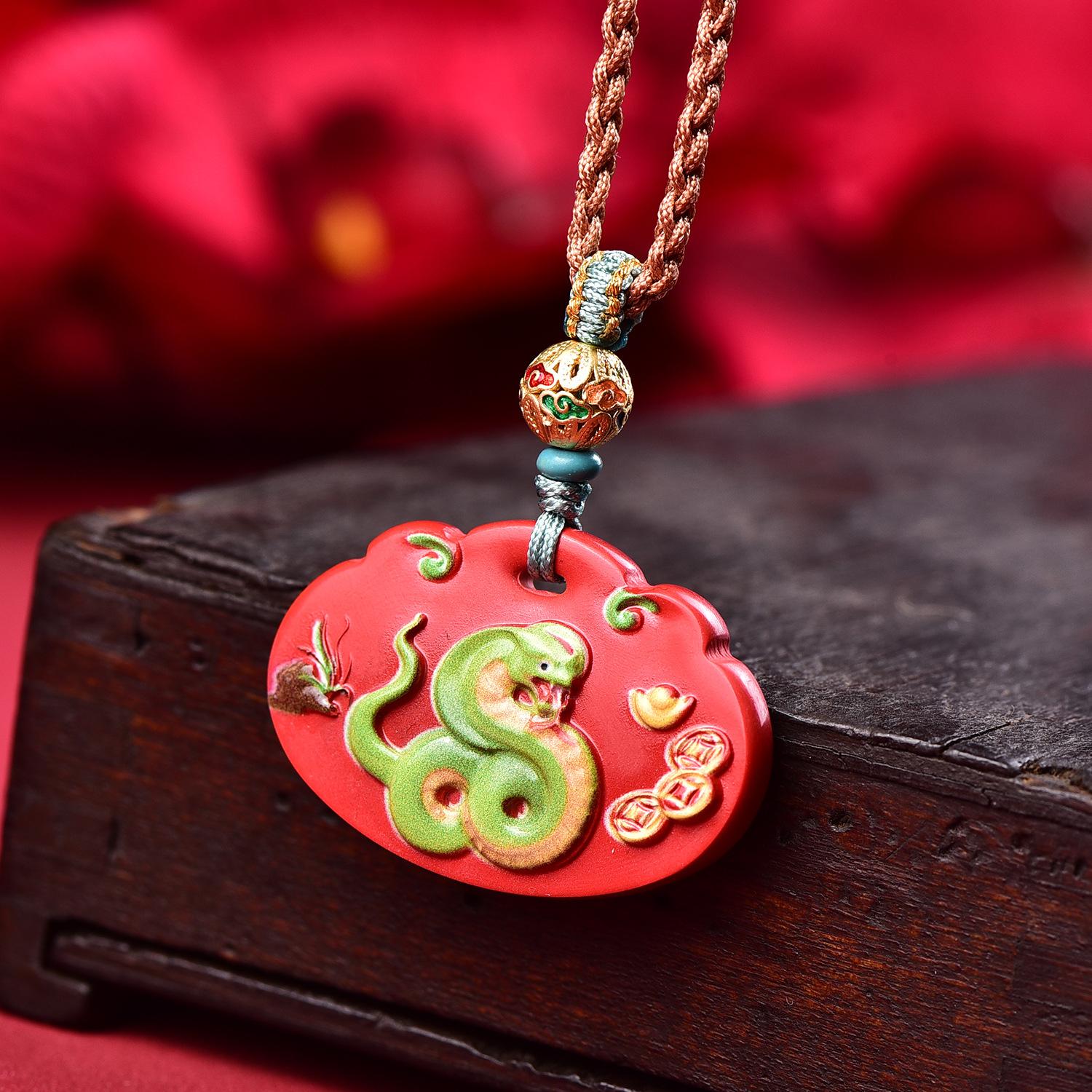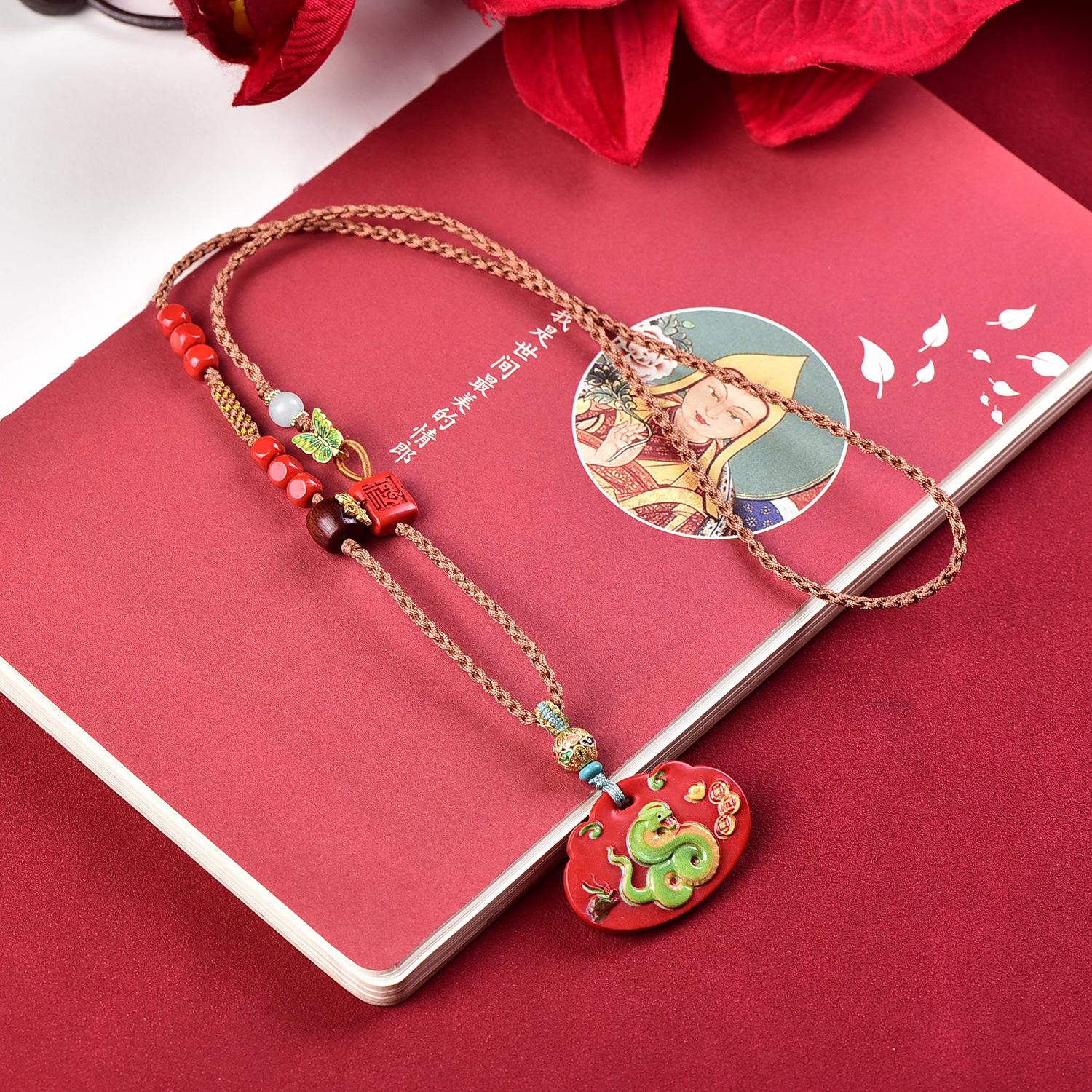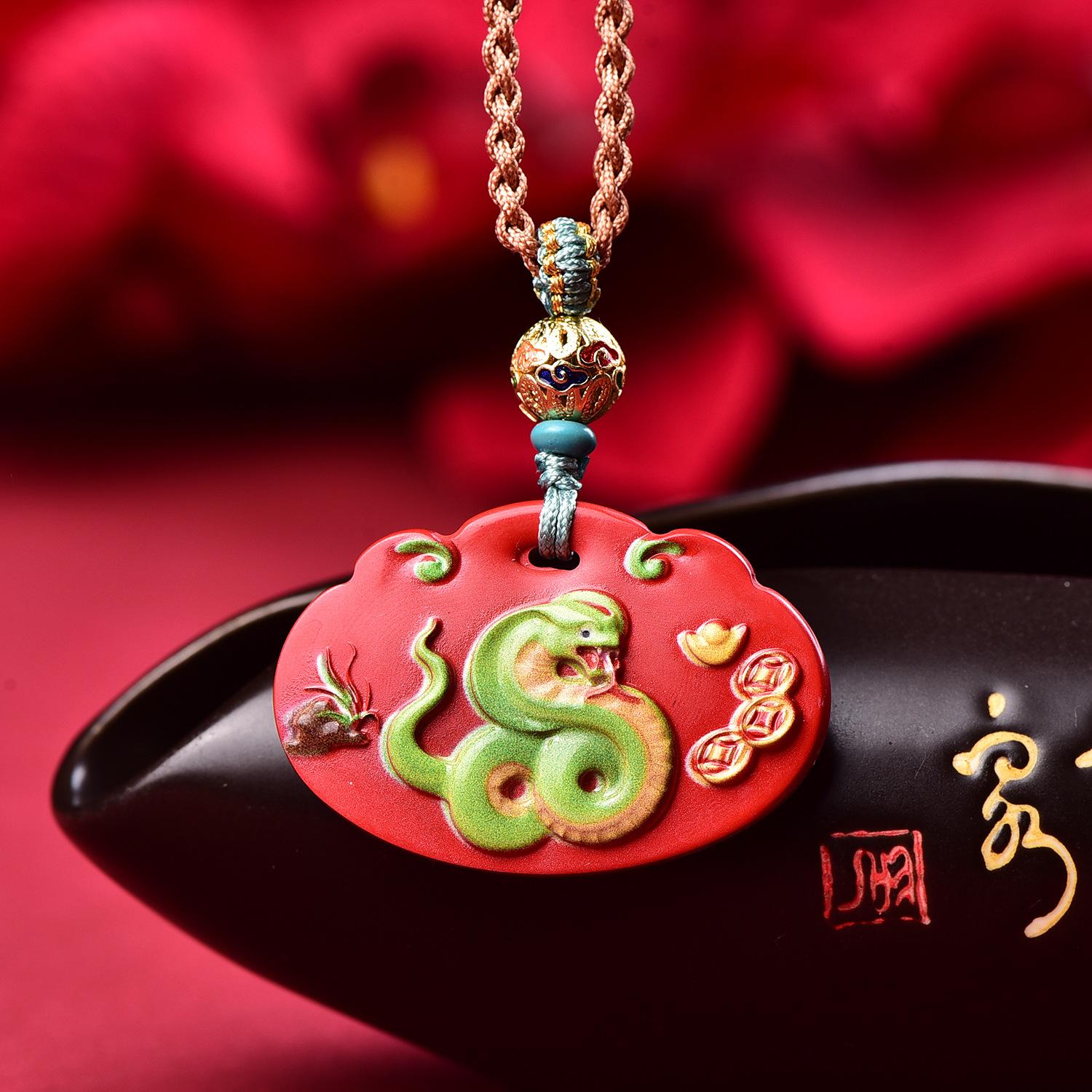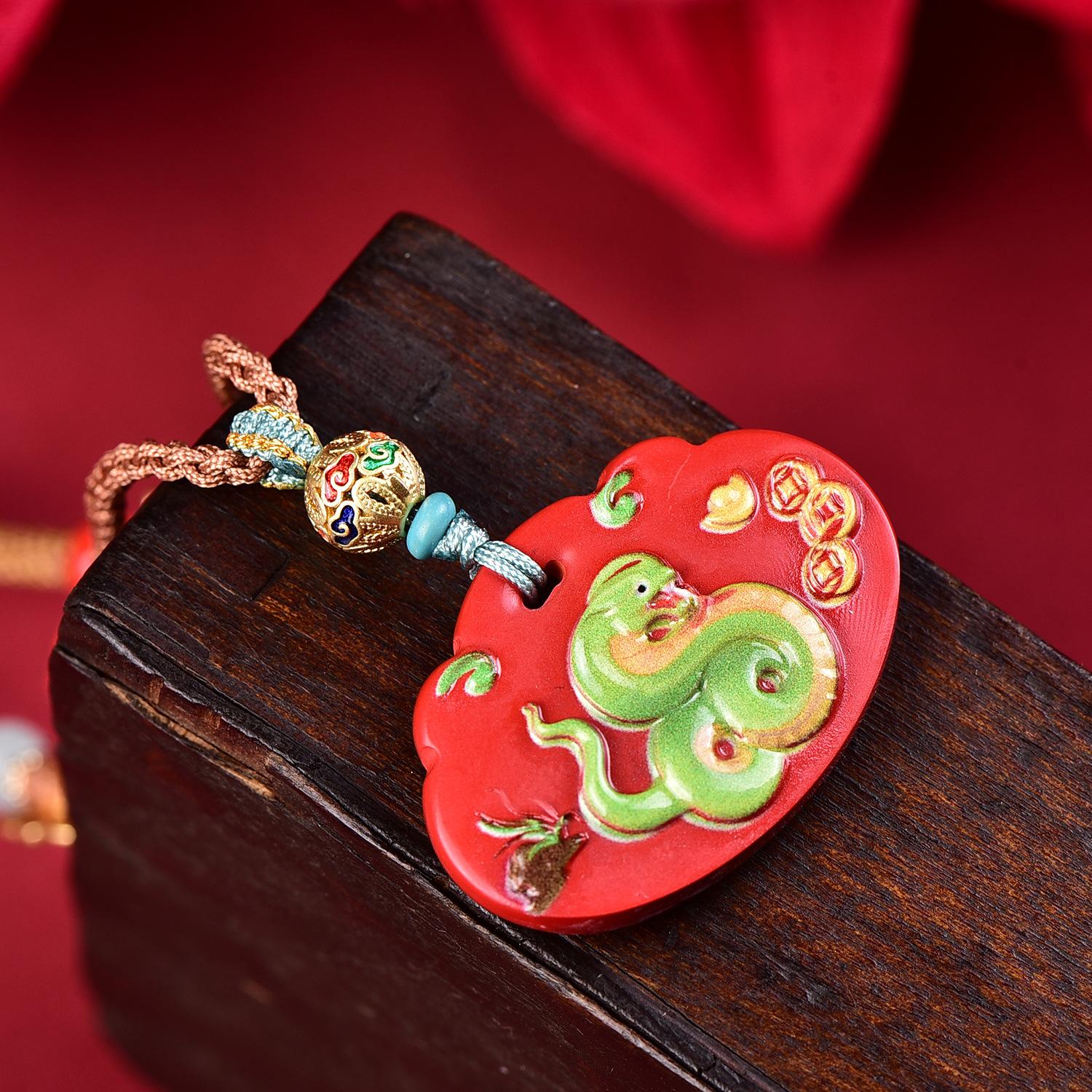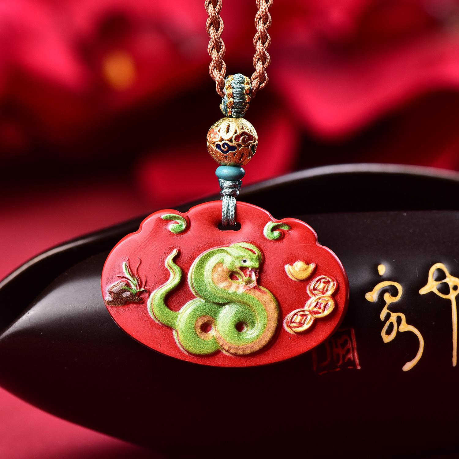 Collar con Colgante de Año de Nacimiento del Zodíaco Pintado con Cinabrio de Alta Calidad Serpiente Auténtico de Alta Gama Alto Contenido Diseño Original