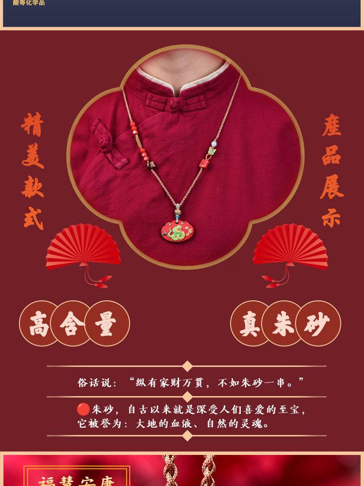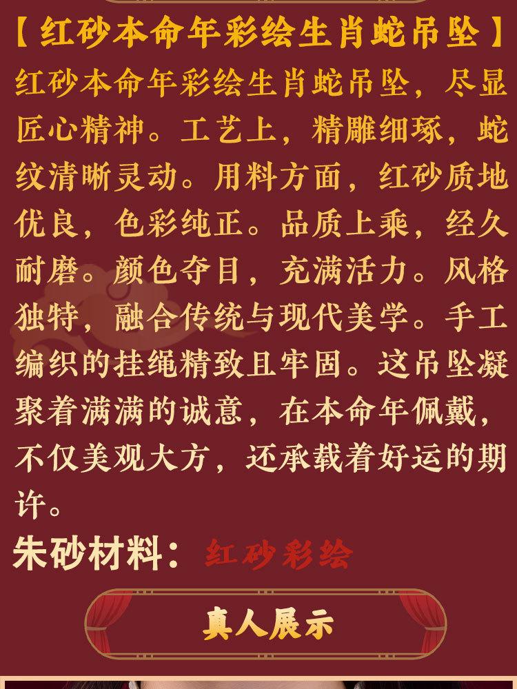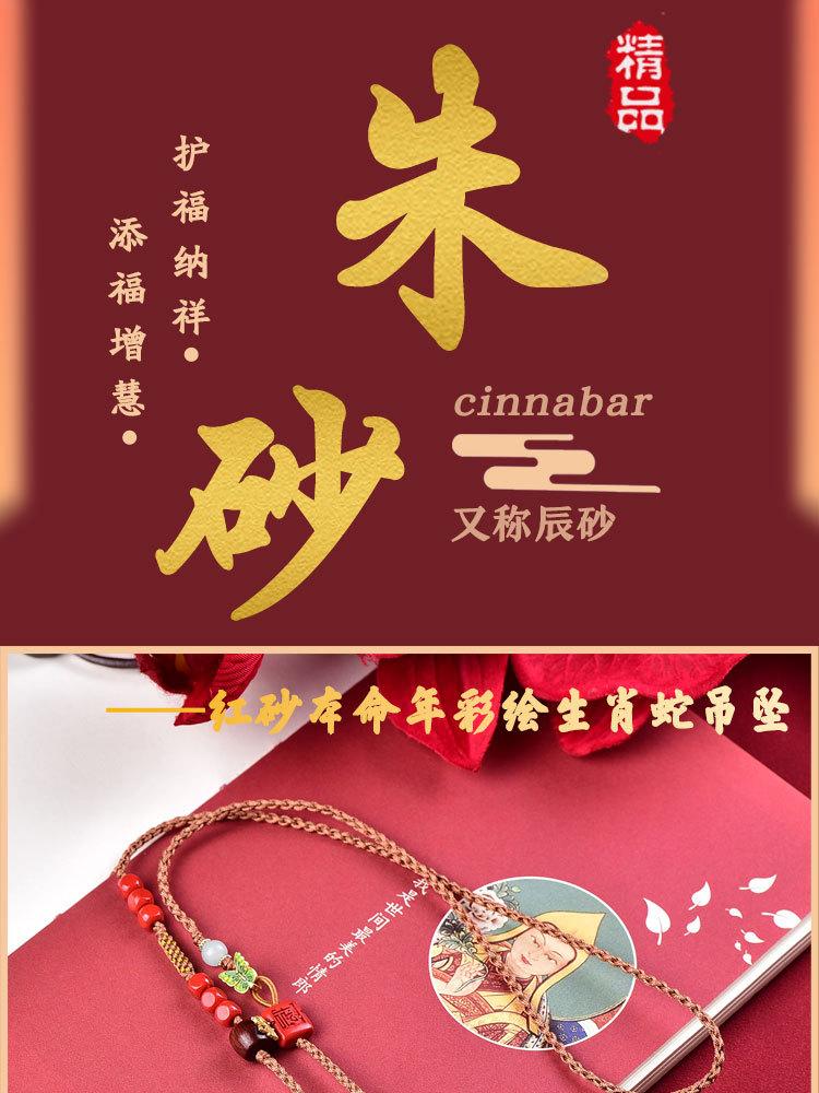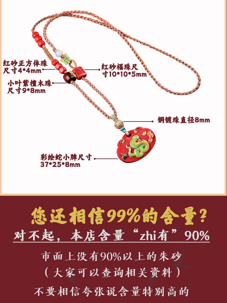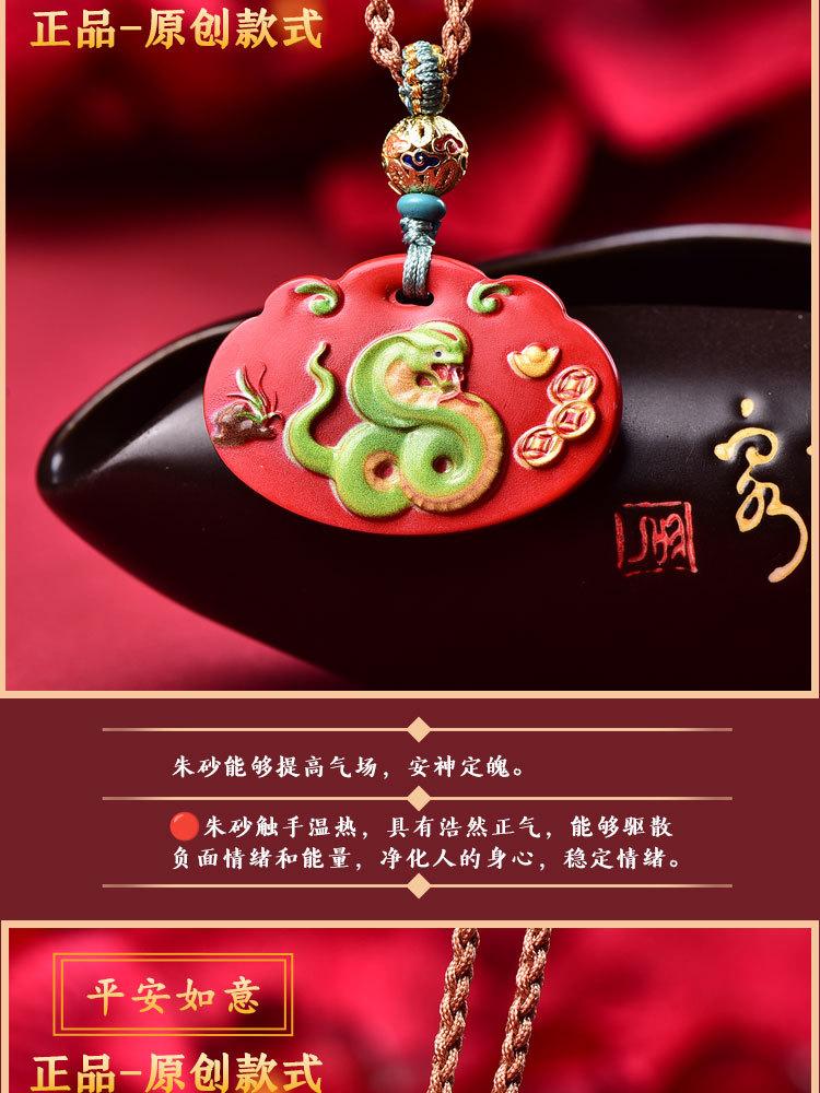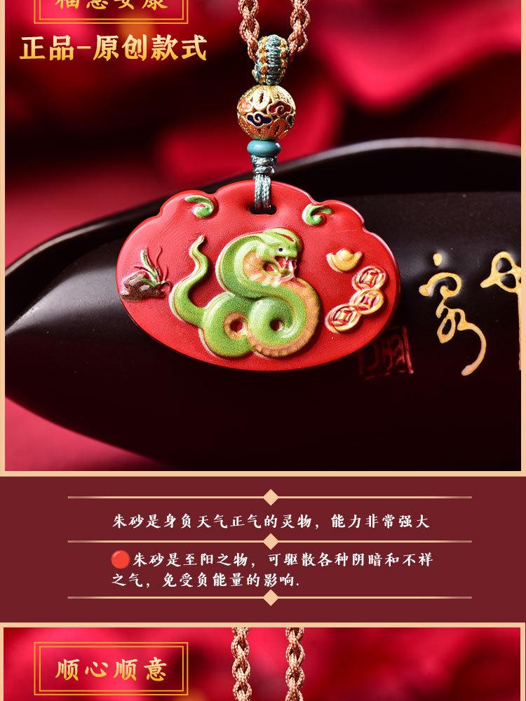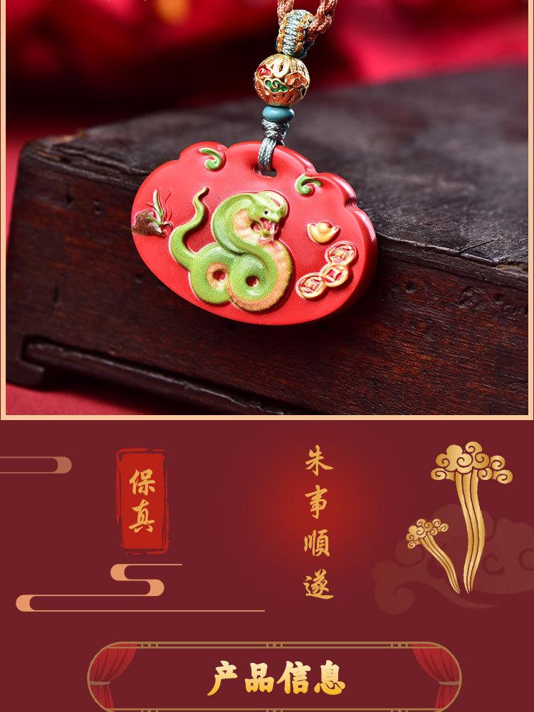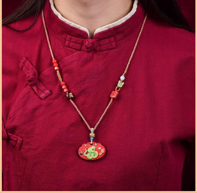 Collar con Colgante de Año de Nacimiento del Zodíaco Pintado con Cinabrio de Alta Calidad Serpiente Auténtico de Alta Gama Alto Contenido Diseño Original