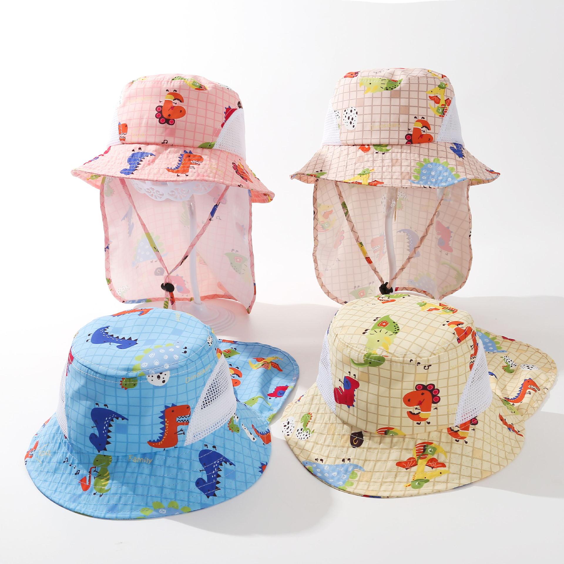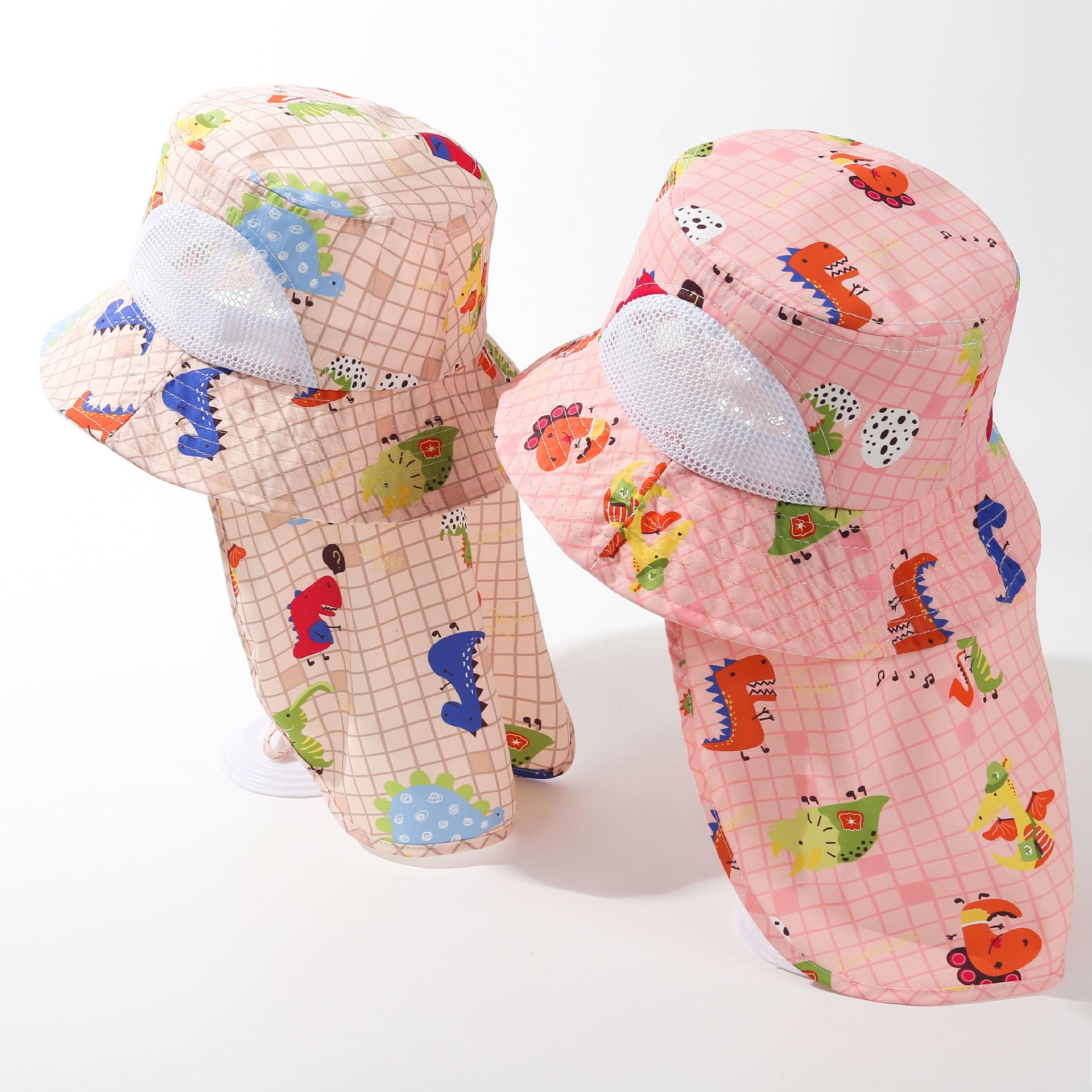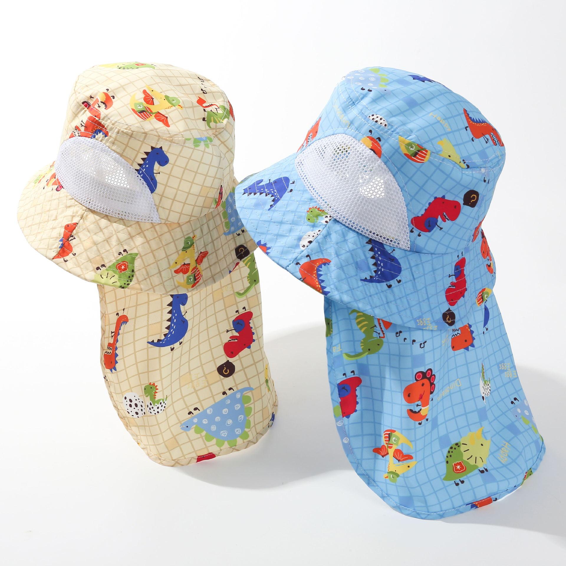 Sombrero de verano para niños, nuevo chal de dinosaurio, bonito sombrero de sol para bebés, protector solar, sombrero de playa para viajes, protección para el cuello.