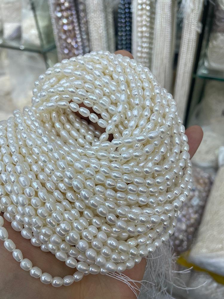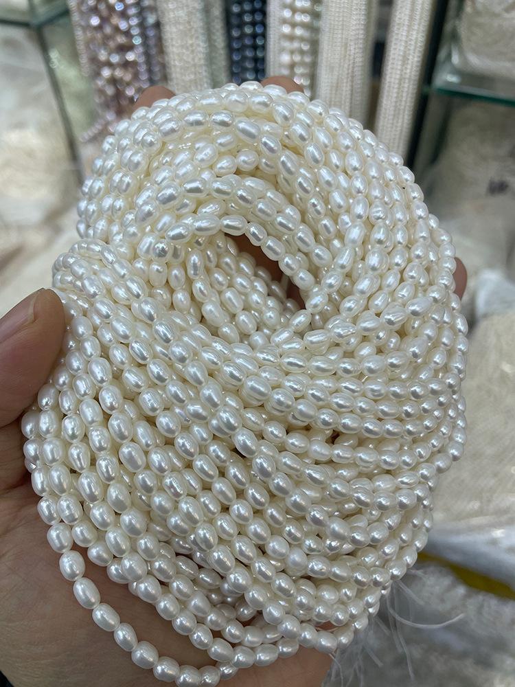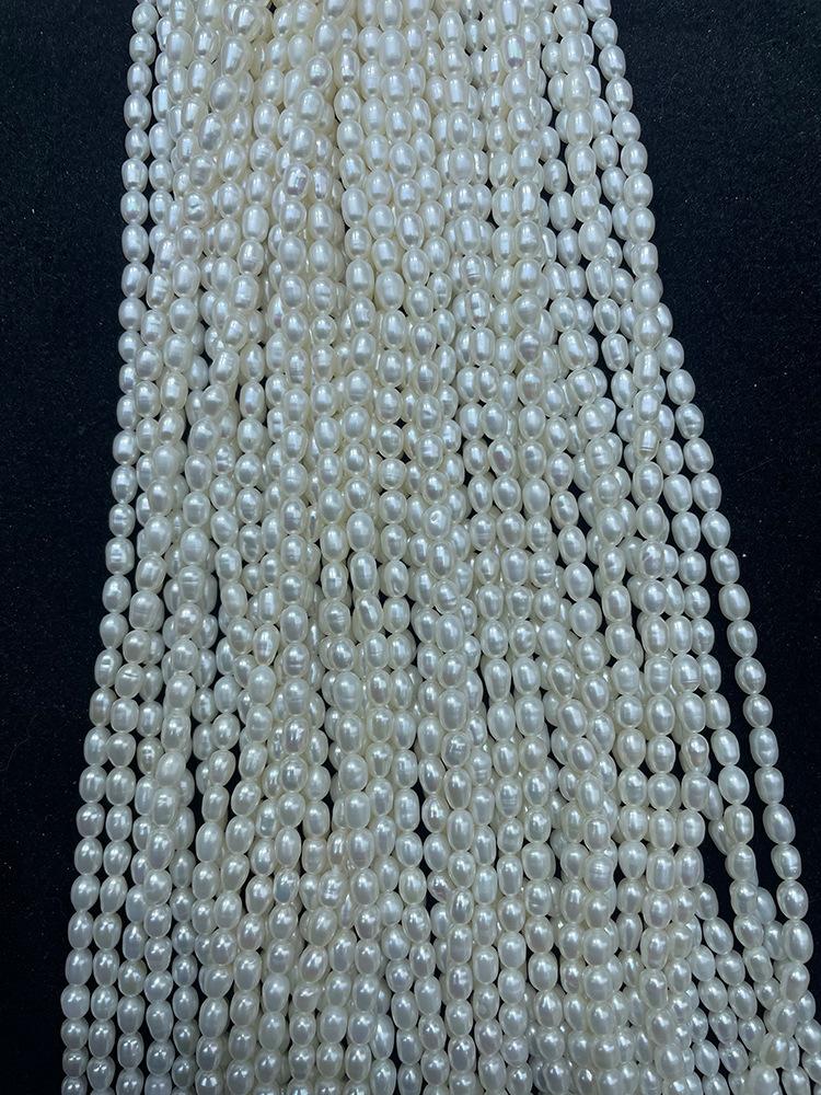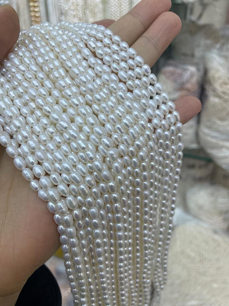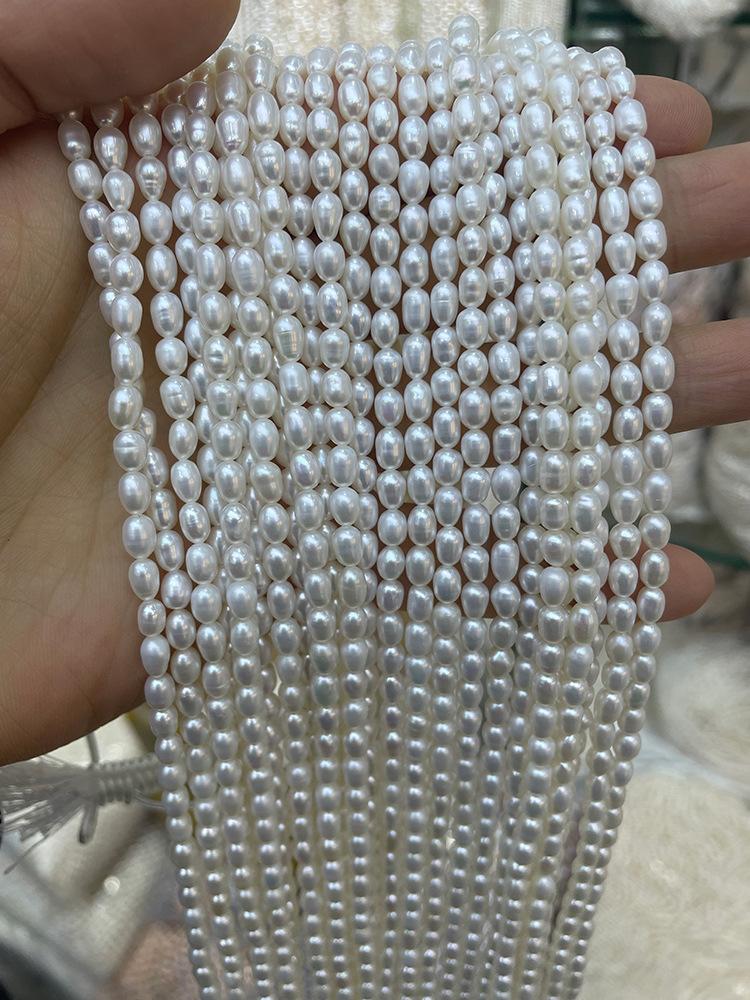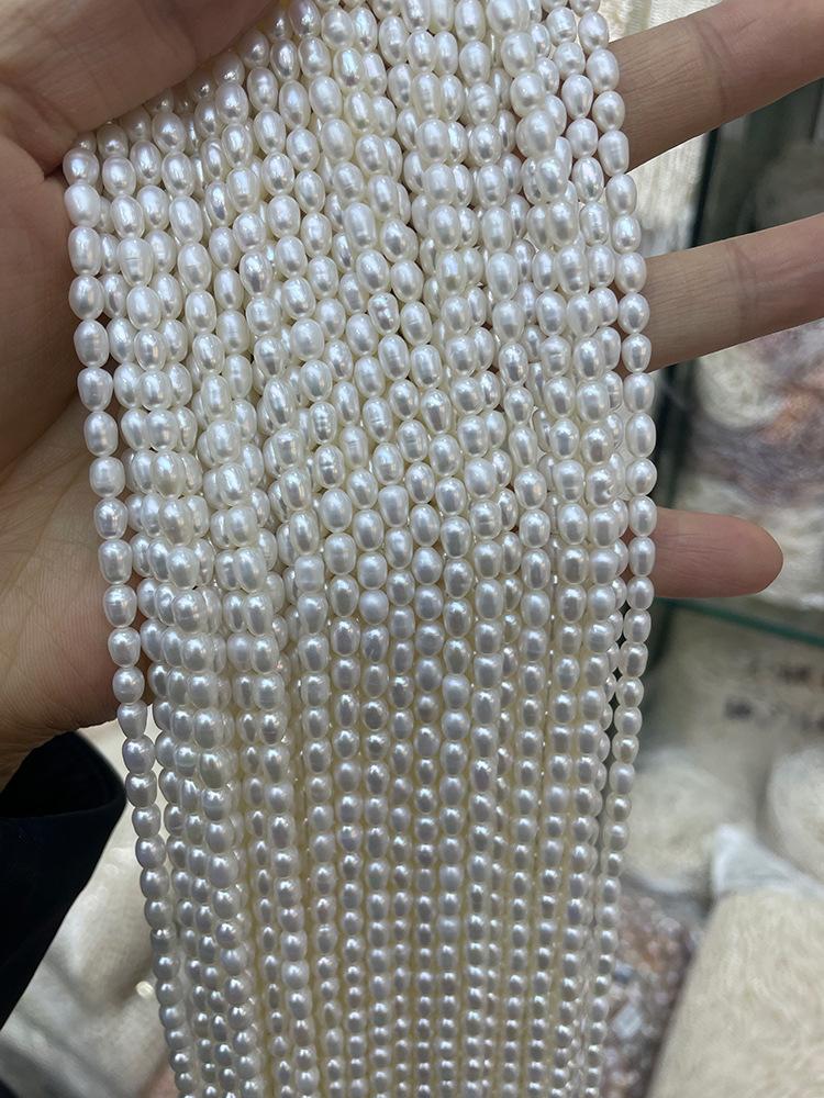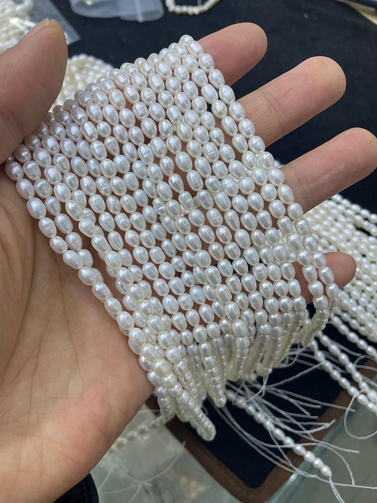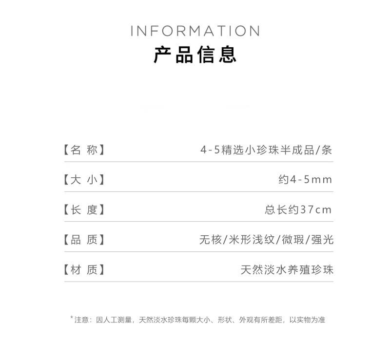 Collar de perlas de agua dulce en forma de M de 4-5 mm, semiacabado, bricolaje, blanco, natural, hecho a mano, con microdefectos.
