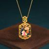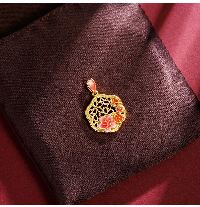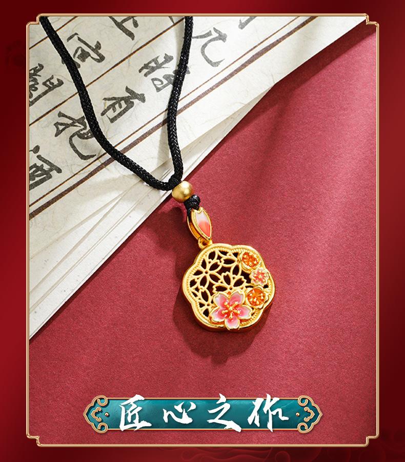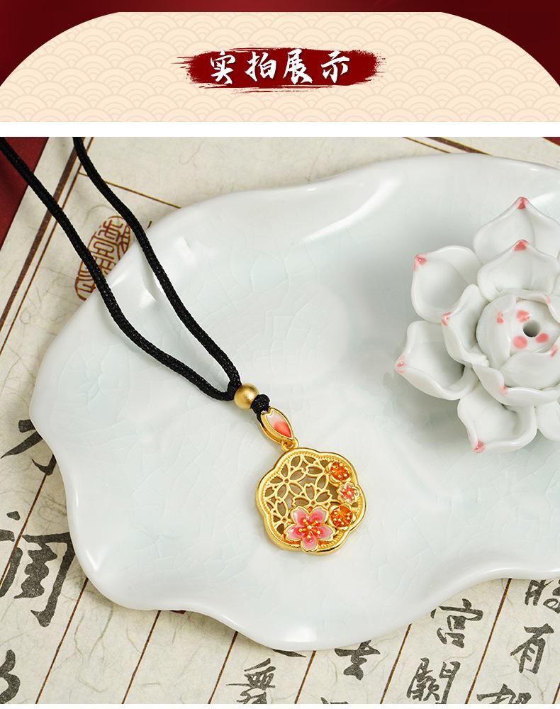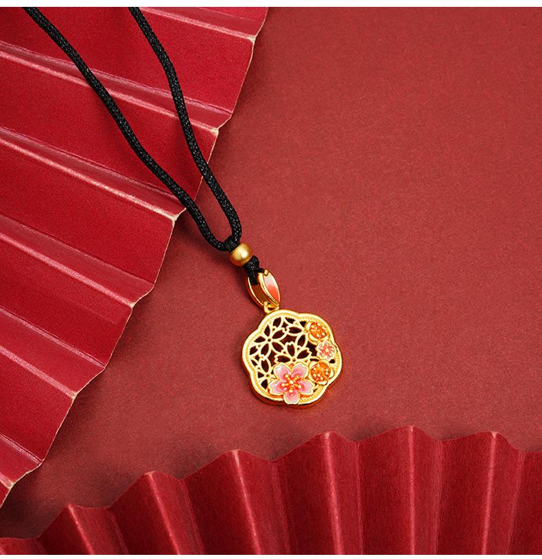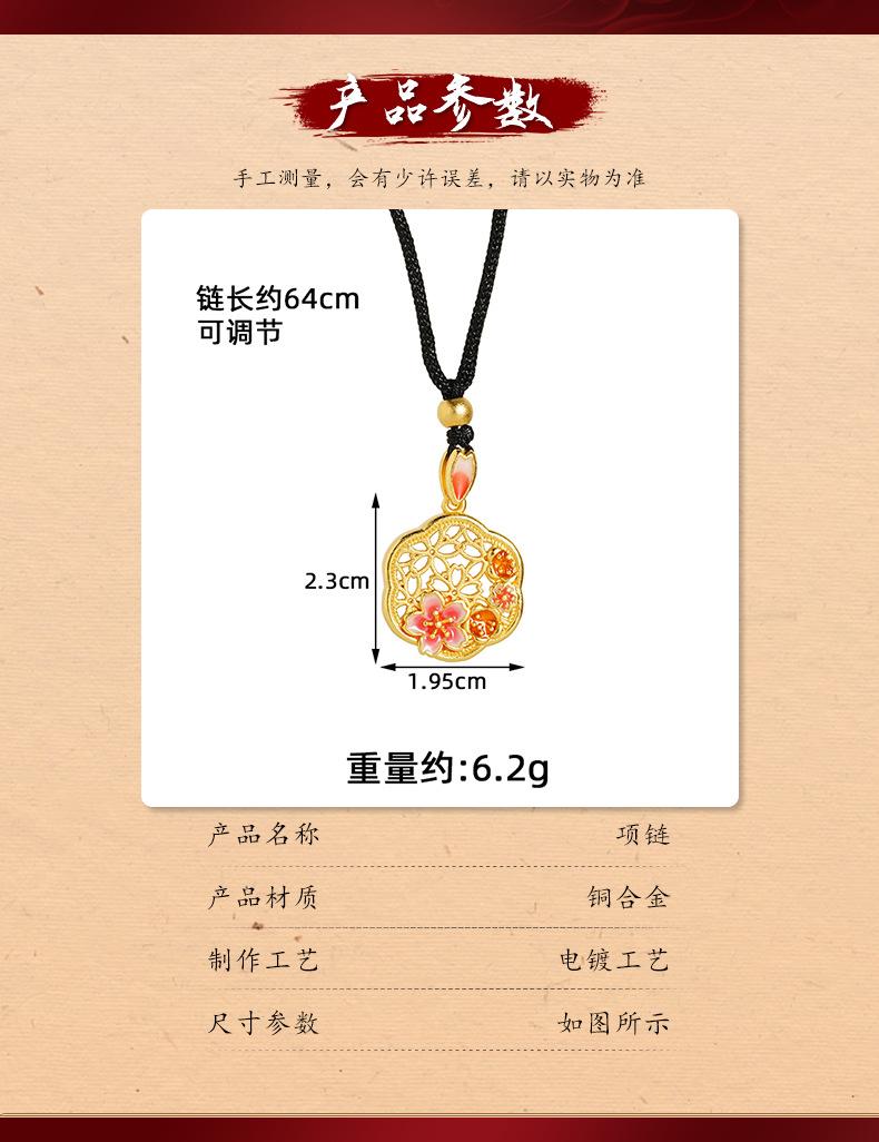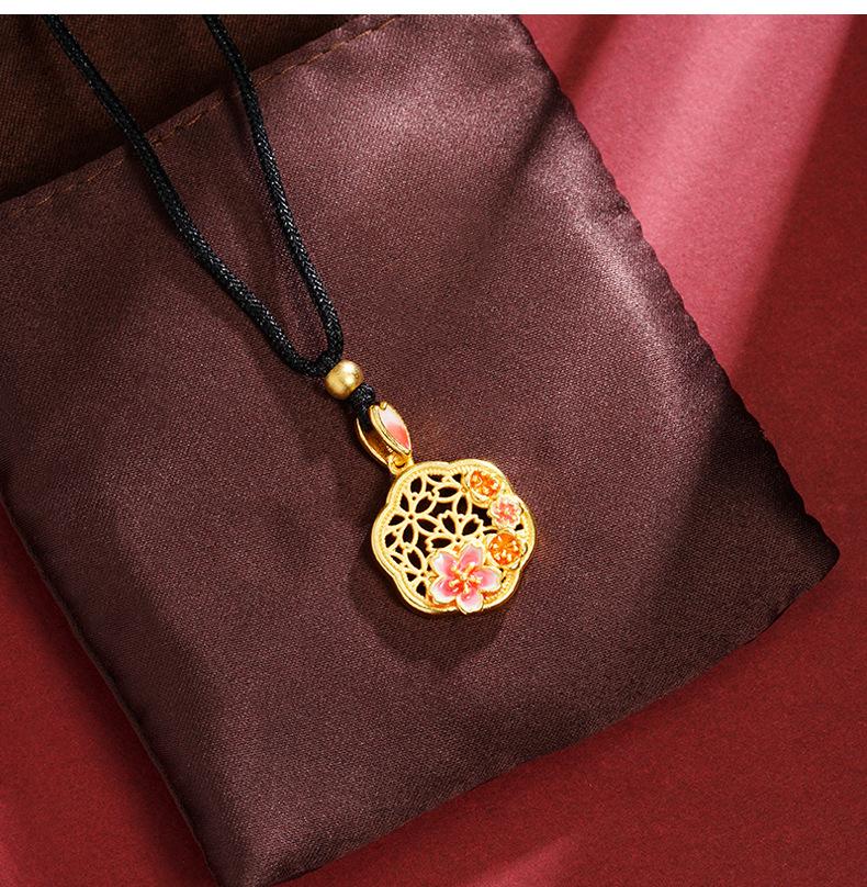Nuevo collar de oro antiguo de estilo chino con colgante de flor hueca esmaltada, estilo cortesano femenino, largo, no se decolora, joyería