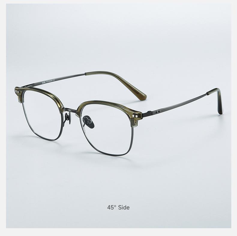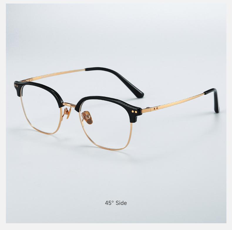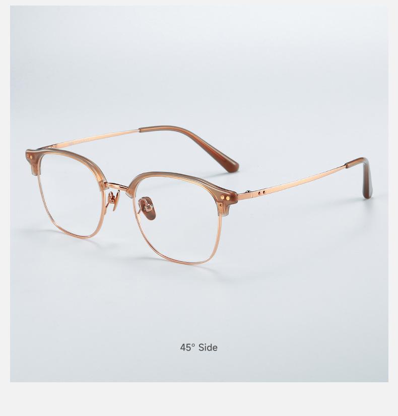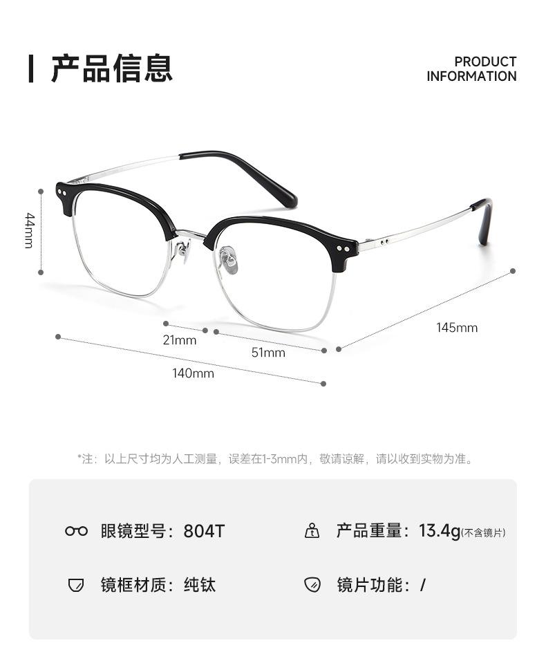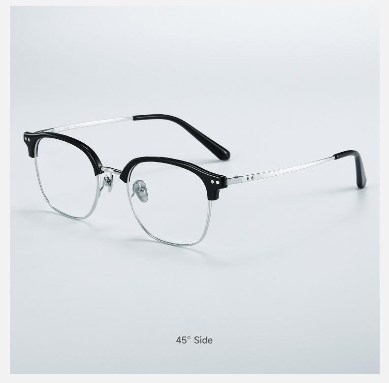 Gafas de titanio puro para miopía con montura media retro 2025, montura para cejas para mujer, 804T, ajustables, antiluz azul, planas