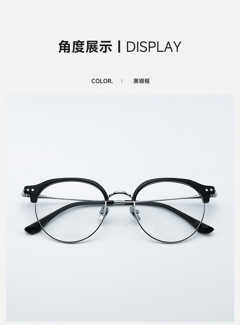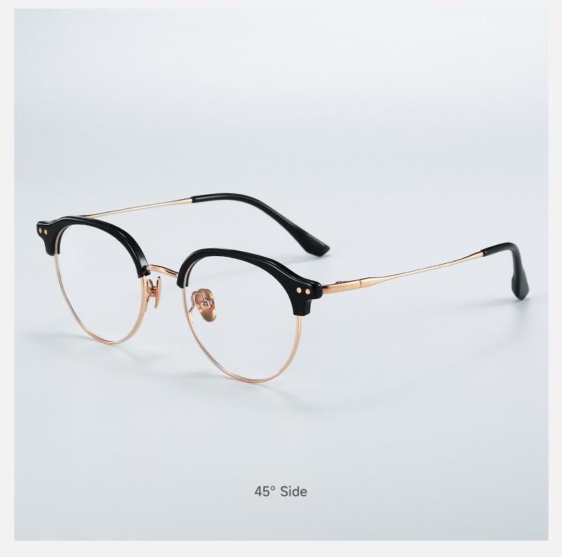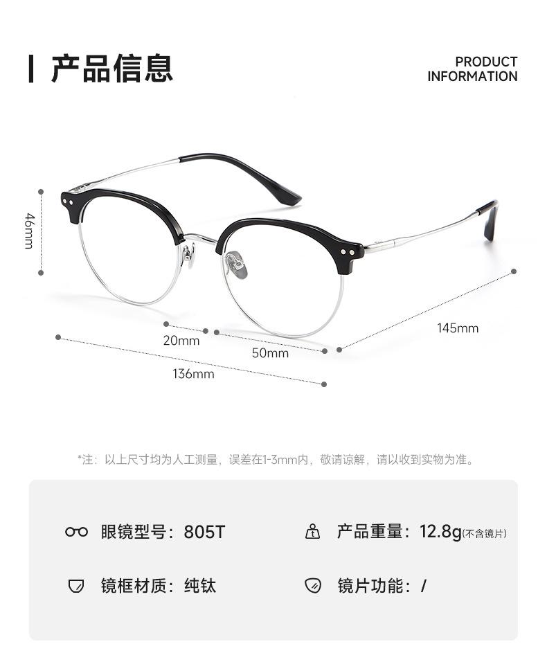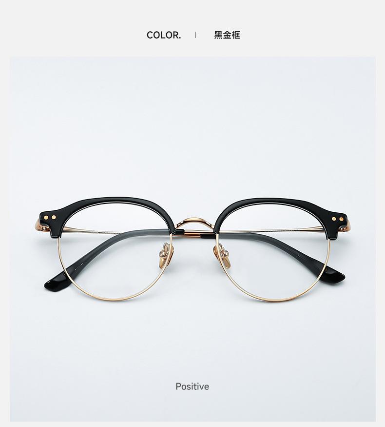 Gafas de media montura inferior con cejas de seda dorada para mujer 805T, miopía de grado ajustable, montura negra, artefacto liso, anti-luz azul, marea ocular
