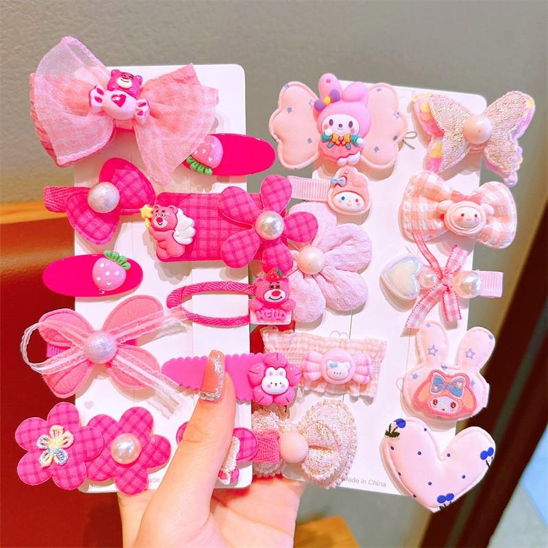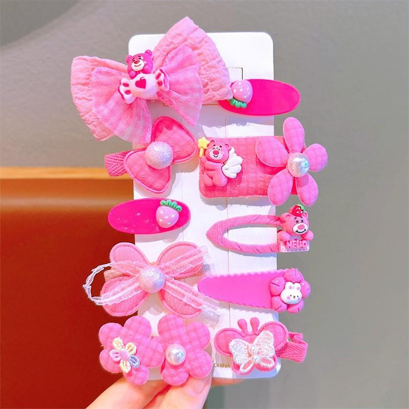 Horquilla para el cabello de niños, linda, de oso fresa, clip lateral, clip para flequillo, clip de lazo a cuadros para niña pequeña, accesorios para el cabello