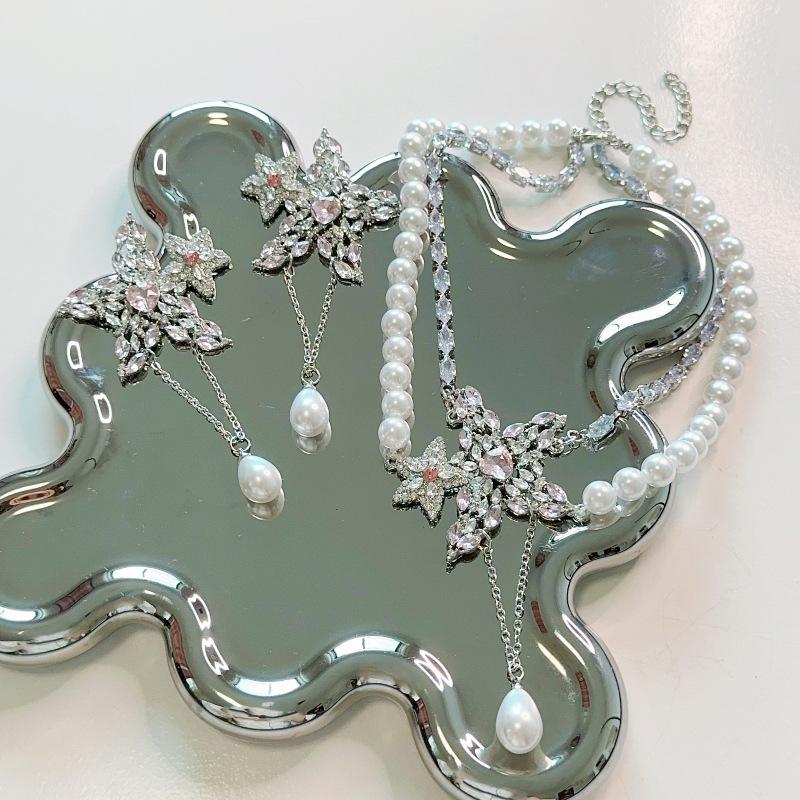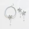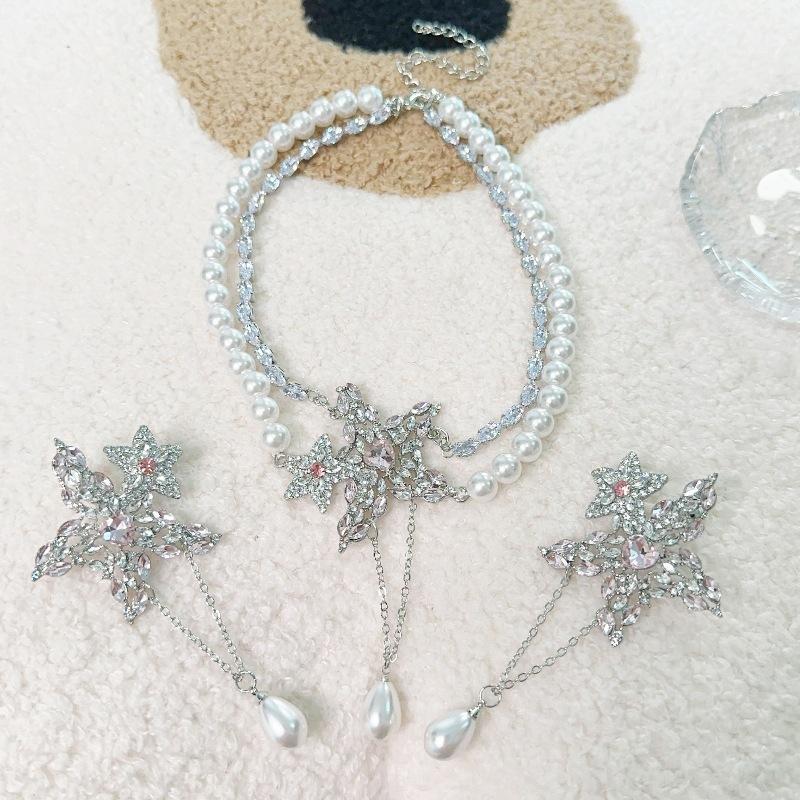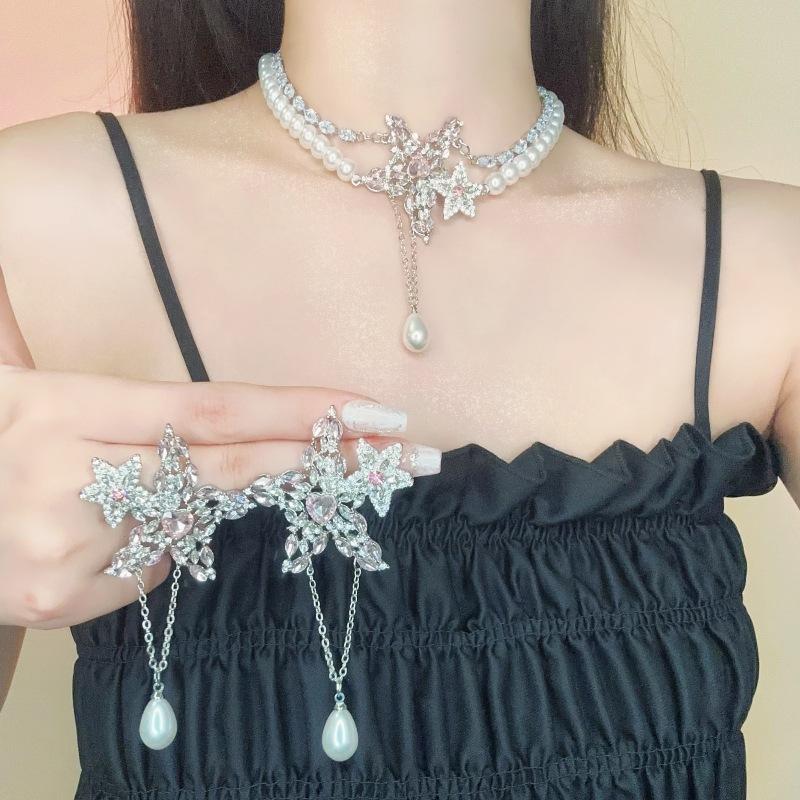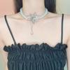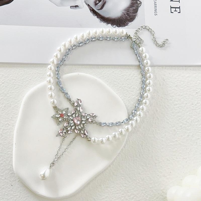 Collar de perlas de doble capa con colgante de circonita y diamante completo para mujer, gargantilla de nicho de lujo ligera, cadena para el cuello, cadena de clavícula con borla