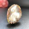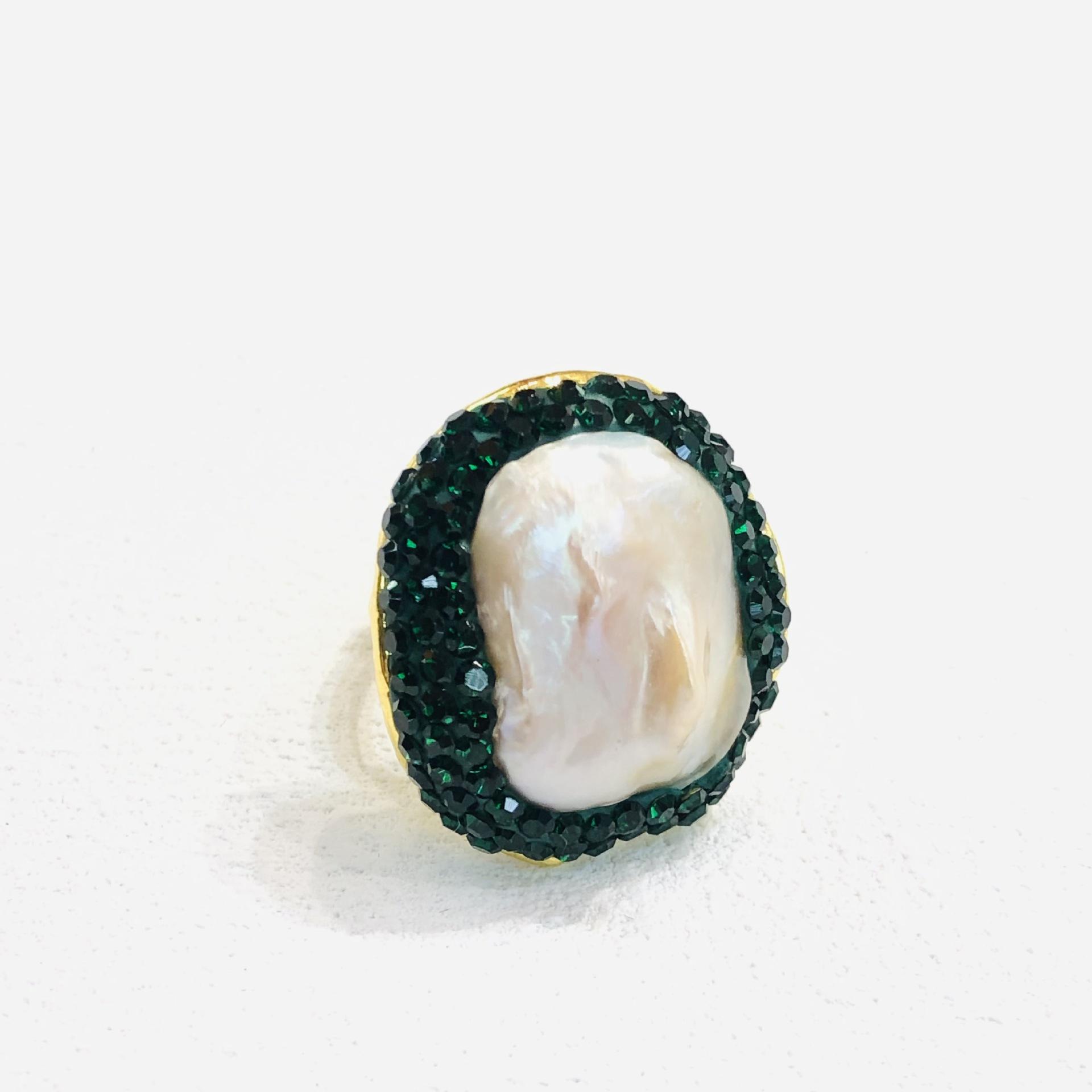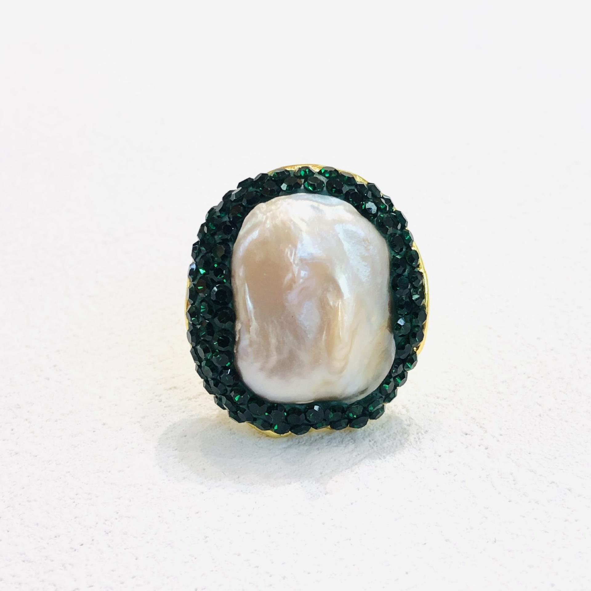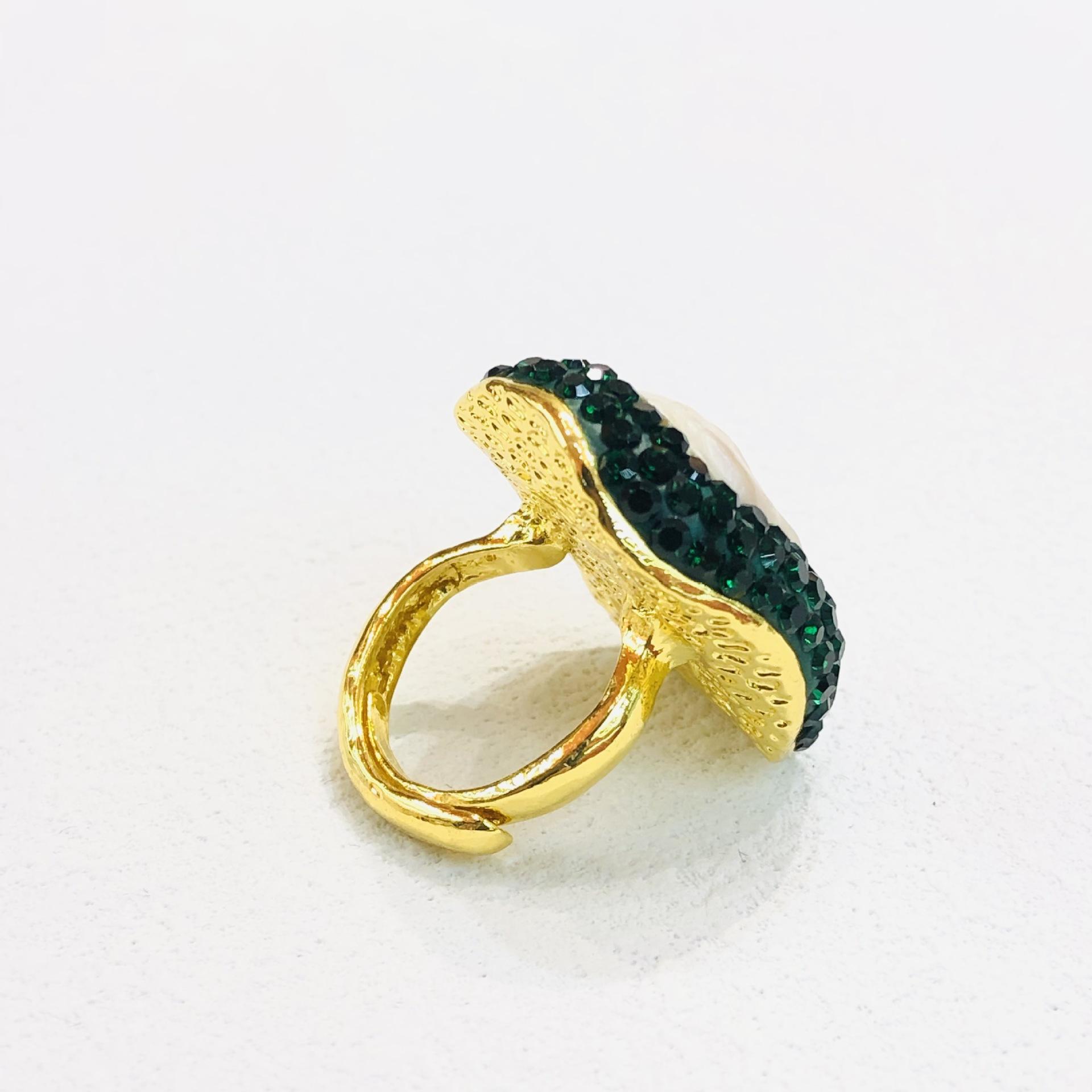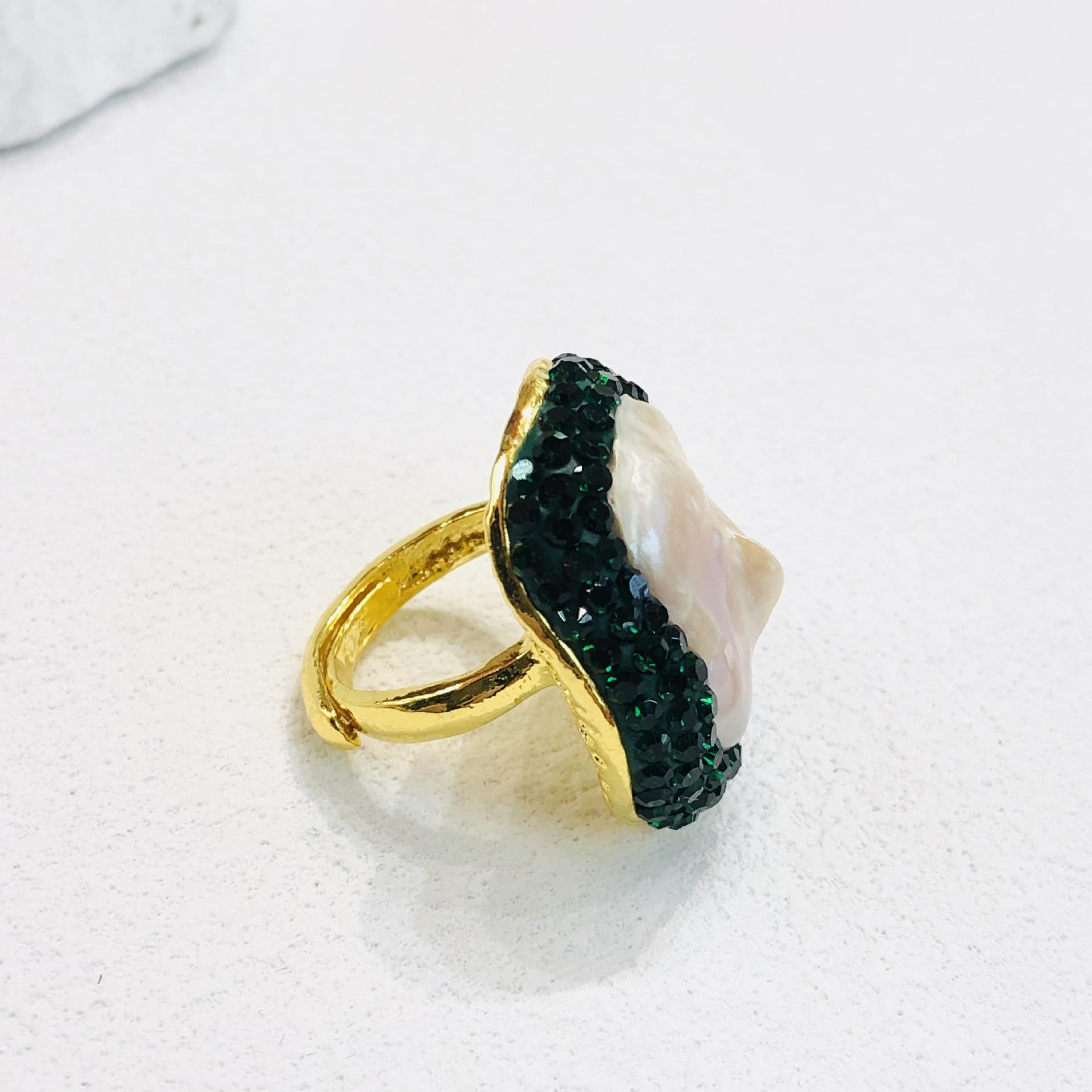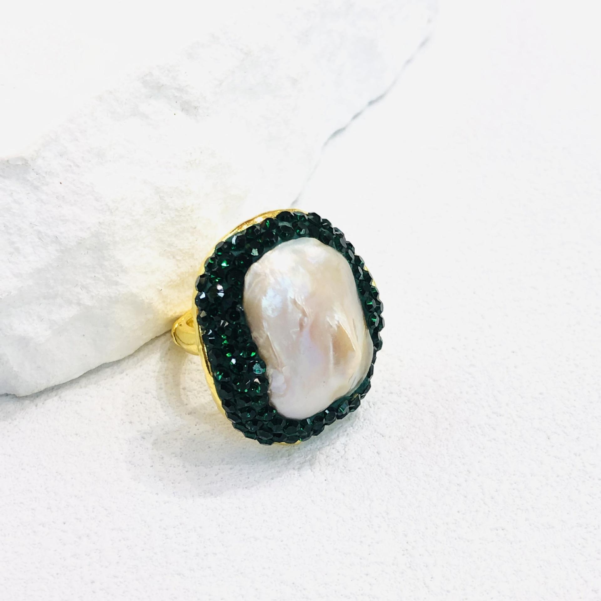Anillo Nuevo de Perla Natural de Agua Dulce Incrustado en Barro Cerámico Diamante Checo Verde Moda Lujo Ligero Anillo de Dedo Venta al Por Mayor de Fábrica