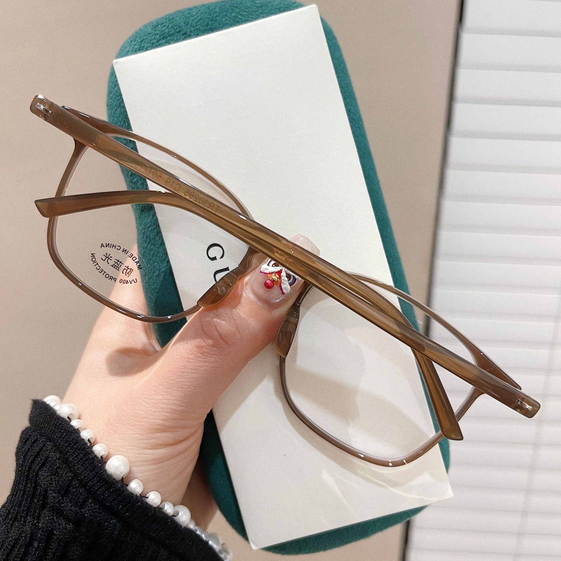 El mantenimiento de las gafas de sol es similar al de las gafas normales. Es necesario acostumbrarse a limpiarlas, doblarlas y guardarlas. Sin embargo, las gafas de sol se quitan y se ponen con frecuencia, y pueden rayarse si no se tiene cuidado. Por eso, hay algunos pequeños detalles que recordar: si las gafas tienen manchas, no se las quite con las uñas, ya que pueden rayarlas fácilmente. Cuando no se usan gafas de sol, muchas personas las cuelgan en la cabeza, el cuello o el bolsillo. En ese caso, no se debe mover demasiado para evitar que se rompan o se golpeen. Algunas personas también las guardan en el bolso. Se recomienda guardarlas primero en un estuche rígido y luego en el bolso para evitar que objetos pequeños como llaves, peines, monedas de cobre, etc., se desgasten en los cristales o se manchen con lápiz labial u otros cosméticos. Los conductores suelen dejar las gafas de sol en el salpicadero o el asiento cuando no las llevan puestas. Este es un hábito muy malo. El calor las deforma, especialmente las de plástico. Lo mejor es sacarlas del coche o guardarlas en un estuche para gafas. No importa dónde las guardes, recuérdalo.