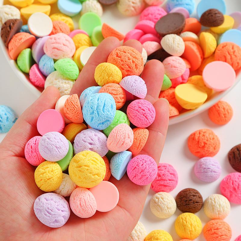 Helado de simulación de comida de colores mixtos, bola de helado semicircular, pegamento para crema, carcasa de teléfono móvil, accesorios de horquilla, accesorios de resina