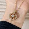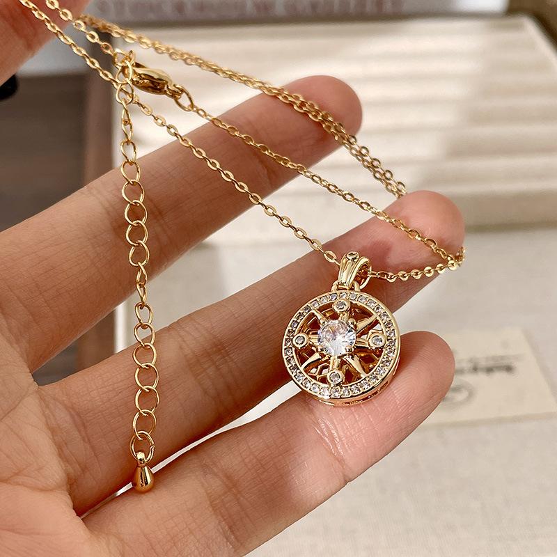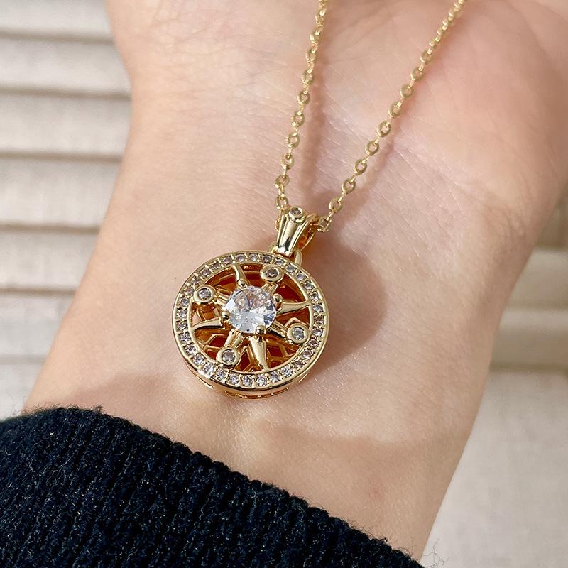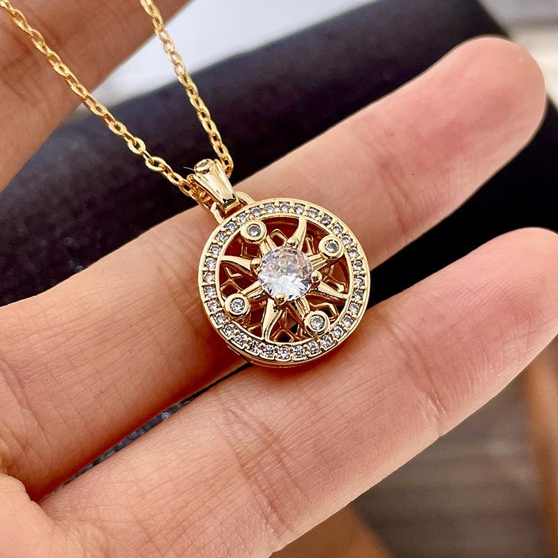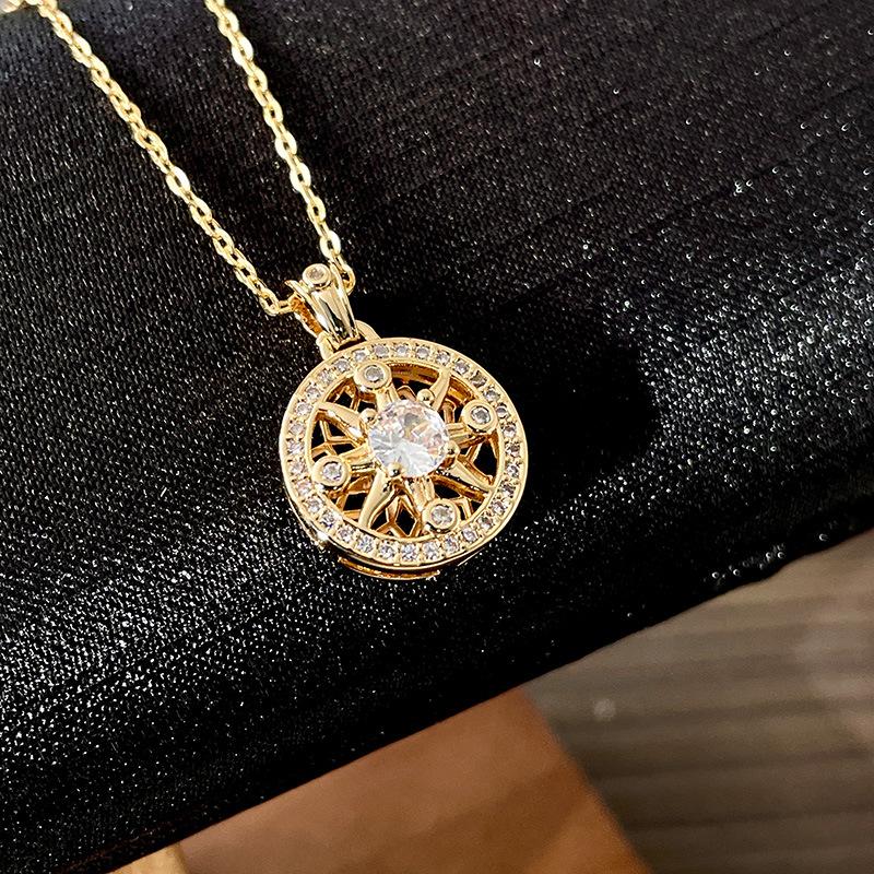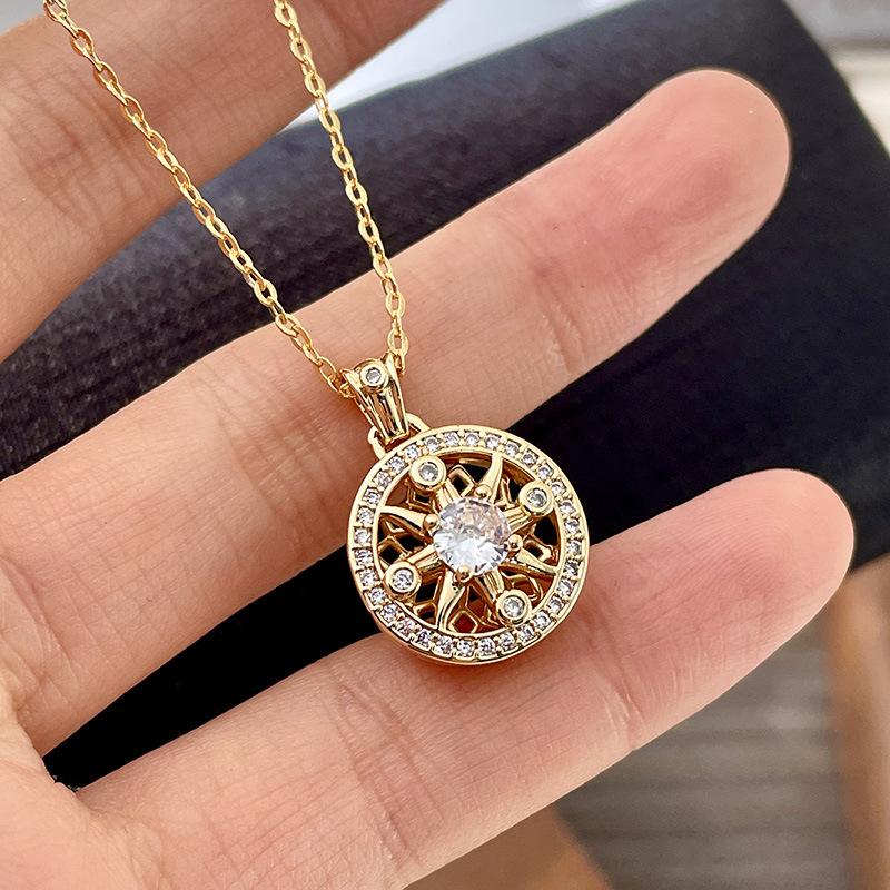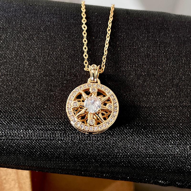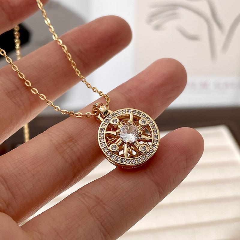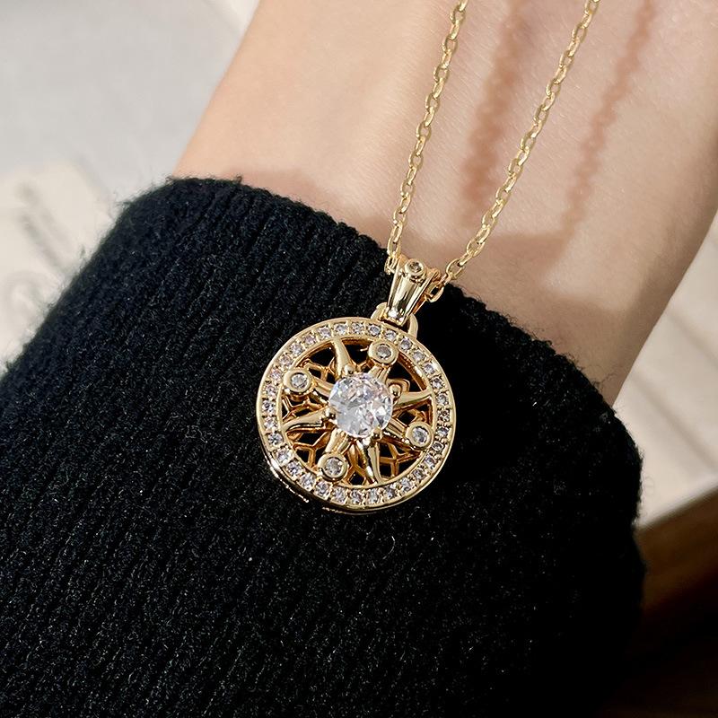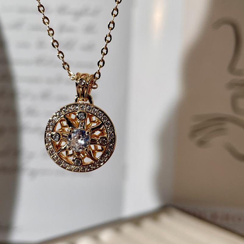 Collar de girasol de lujo estilo francés con diamantes, cadena de clavícula de circonita redonda, colgante estilo palacio, accesorios para mujer