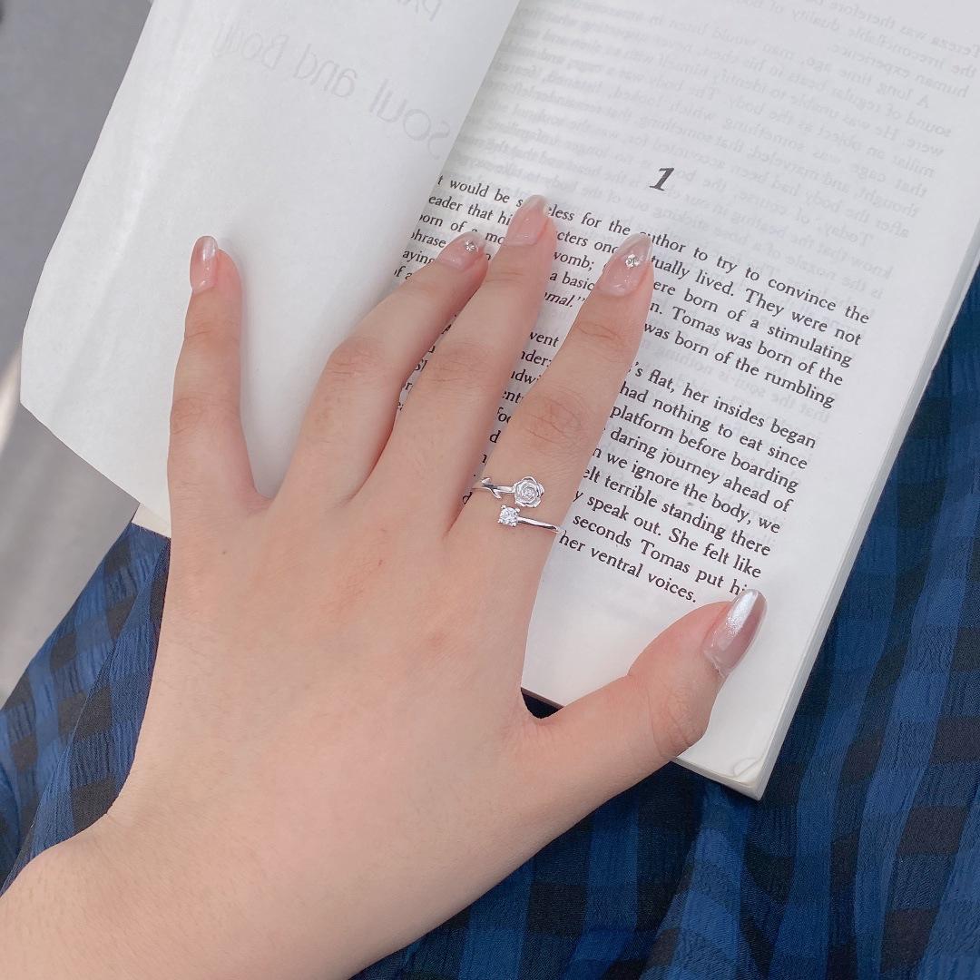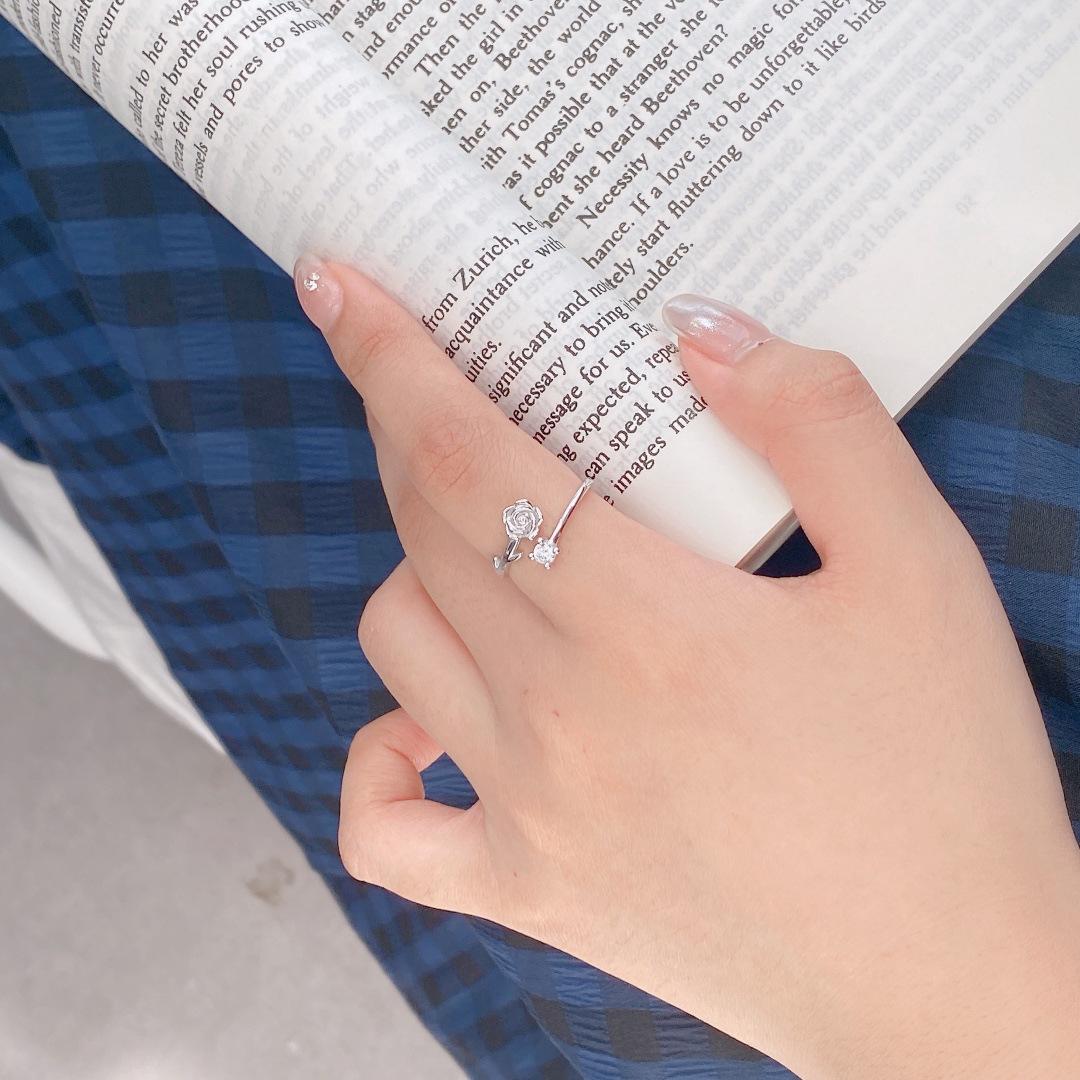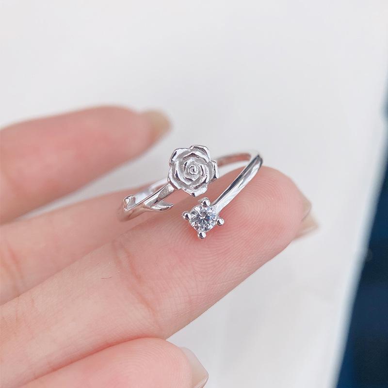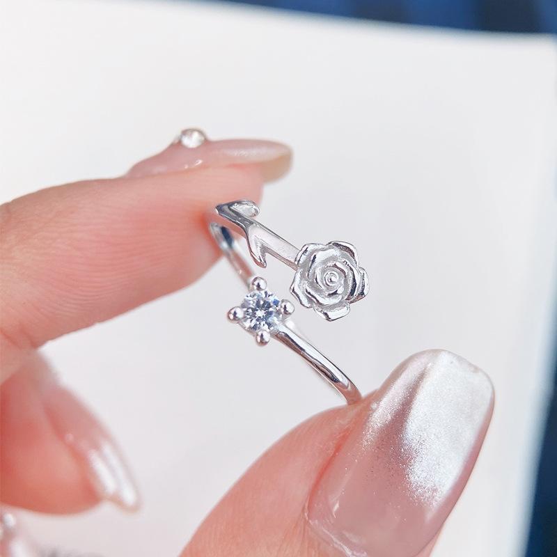 Anillo de plata de ley S925 con forma de rosa de espinas, anillo de nicho con flores personalizado, regalo de San Valentín