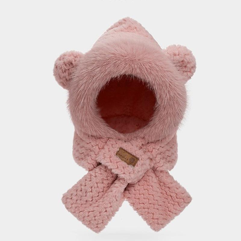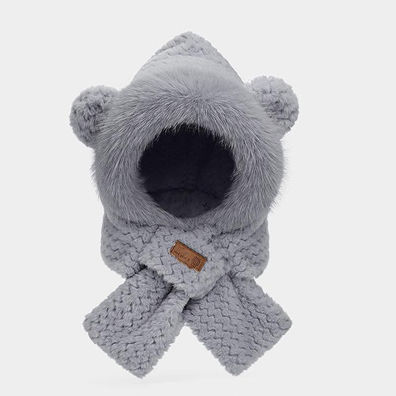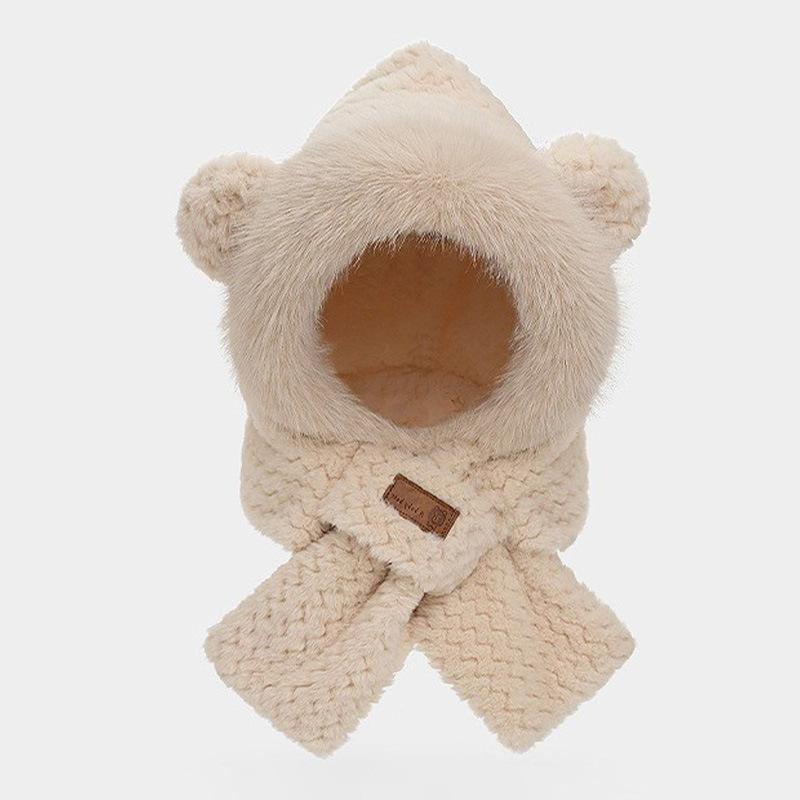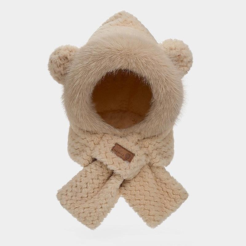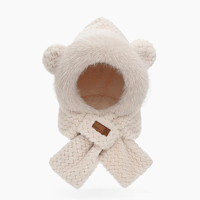 Gorro de osito, bufanda bonita, conjunto de dos piezas, guantes de ciclismo de invierno cálidos, resistentes al viento y con protección para los oídos, gorro esponjoso de invierno.