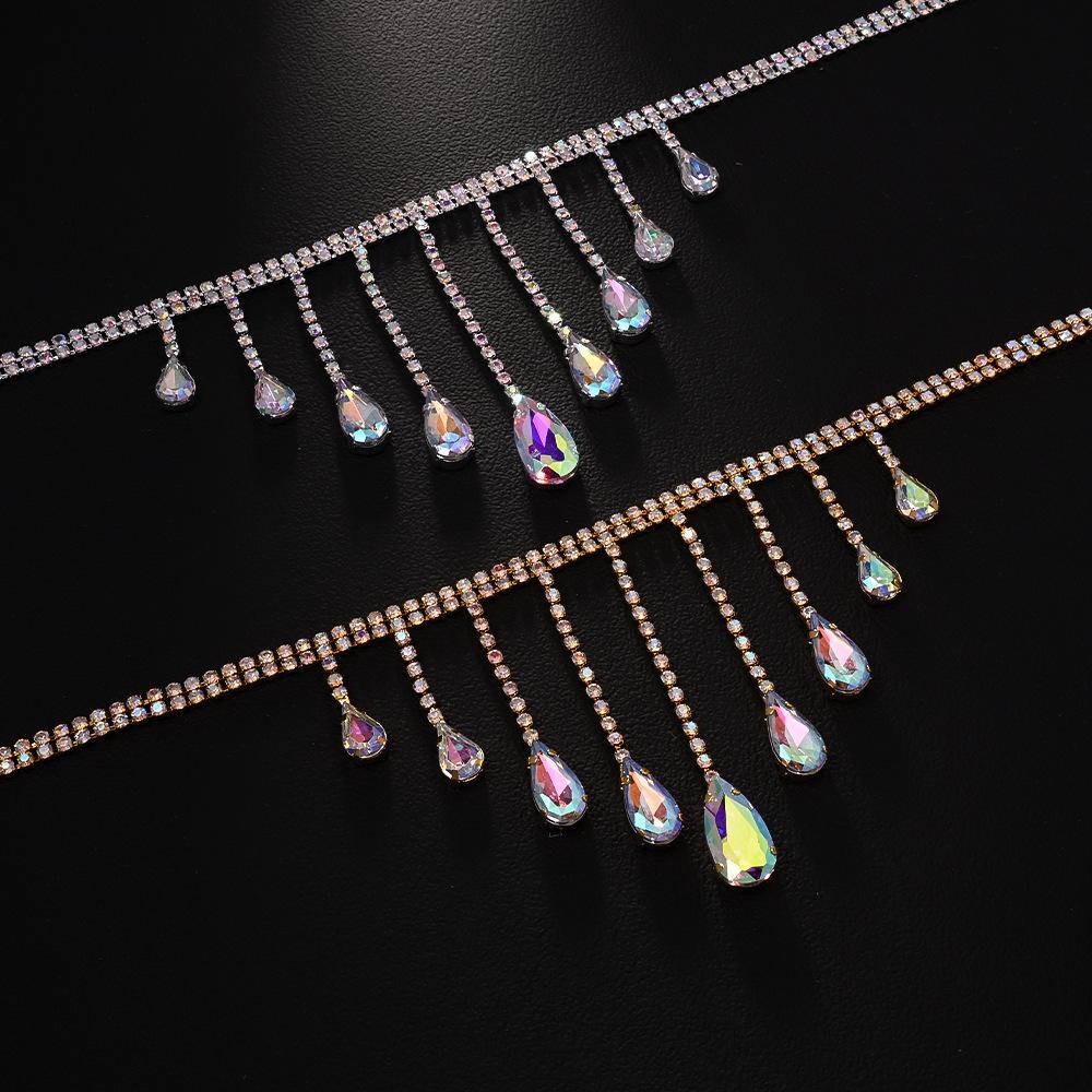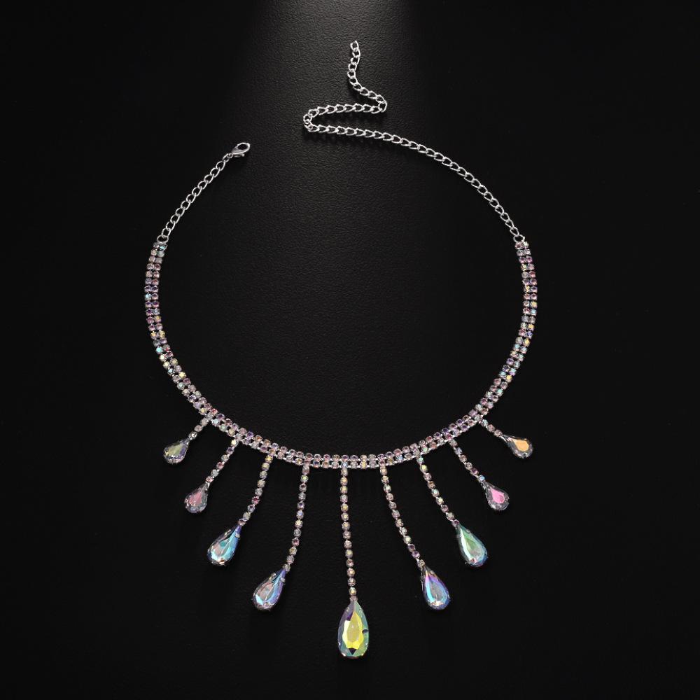 Nuevo collar transfronterizo de gota de agua con diamantes de imitación de alta calidad, estilo europeo y americano, con borlas y cadena de clavícula.