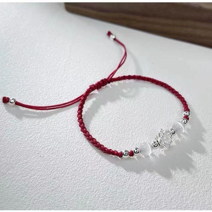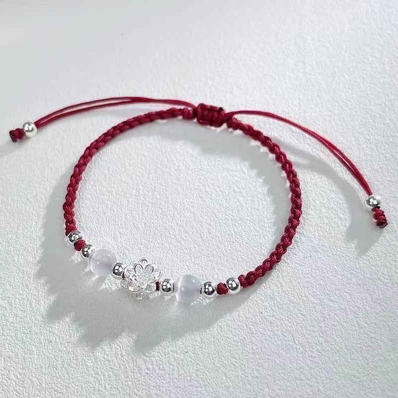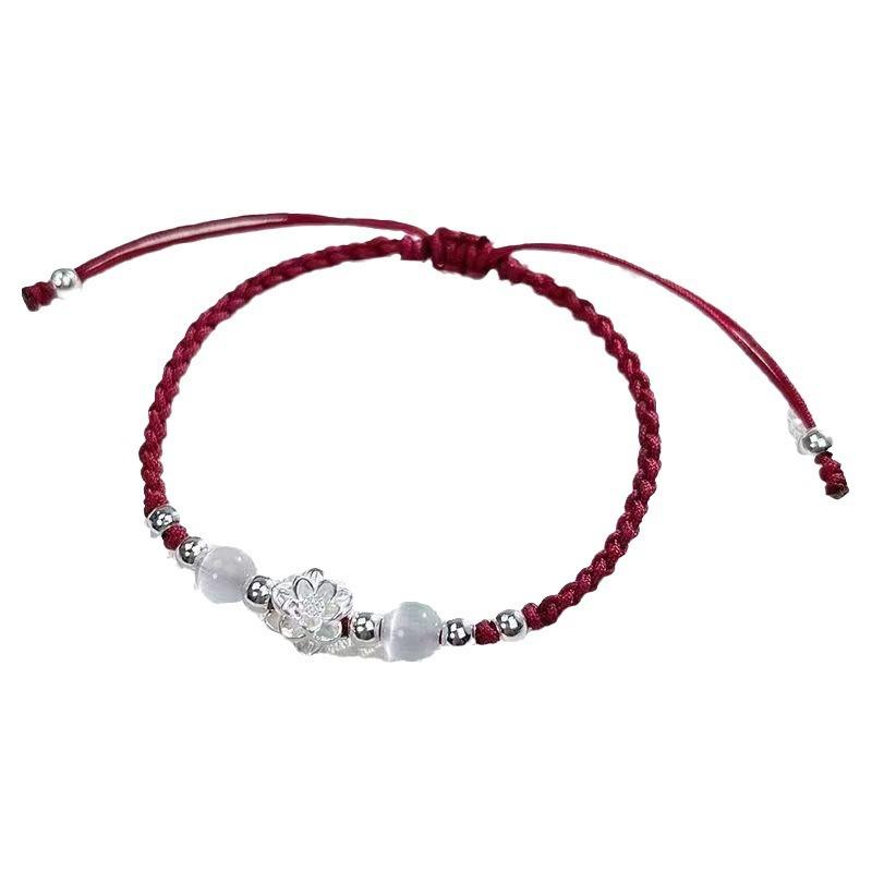 Pulsera Trenzada de Transferencia de Loto Pulsera Cuerda Antigua Hecha a Mano Tejida Ajustable Acero Mano Estilo Nacional Pulsera Regalos para Pareja Ins