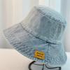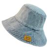 Sombrero de pescador de mezclilla lavada vintage japonés para hombre y mujer que muestra la cara pequeña, simple, casual, tipo maceta, sombrero para el sol