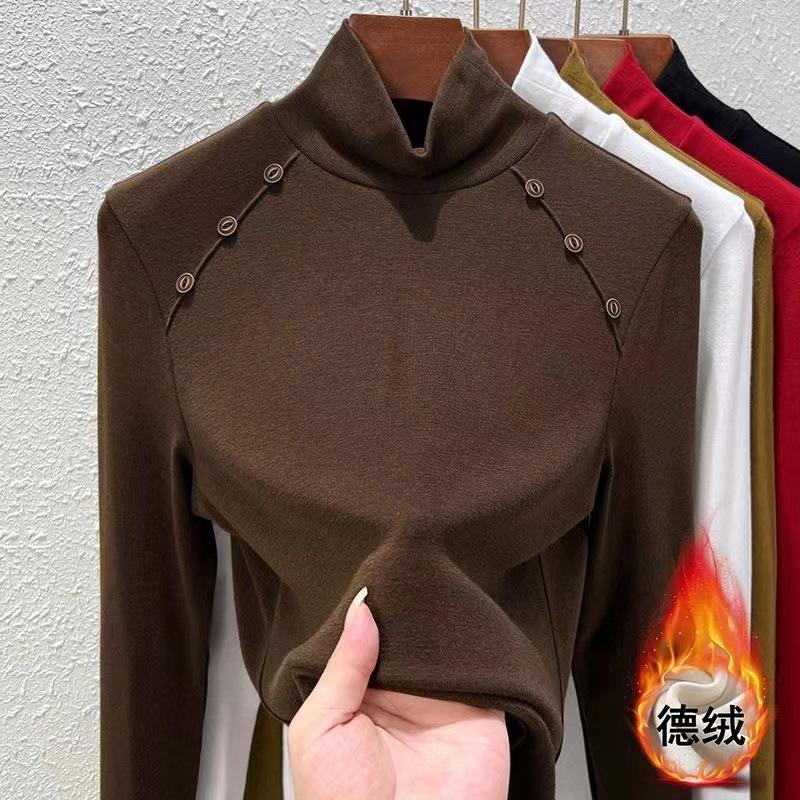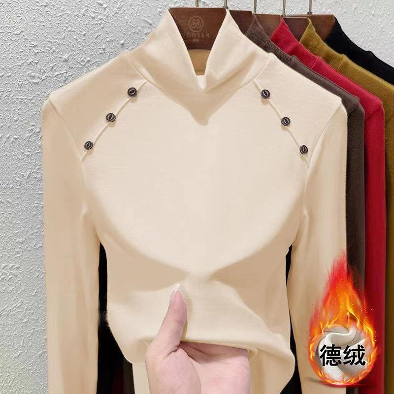 2023 otoño e invierno nueva línea brillante decorativa camiseta de manga larga de mujer medio cuello alto terciopelo adelgazante interior superior camisa de fondo para mujer