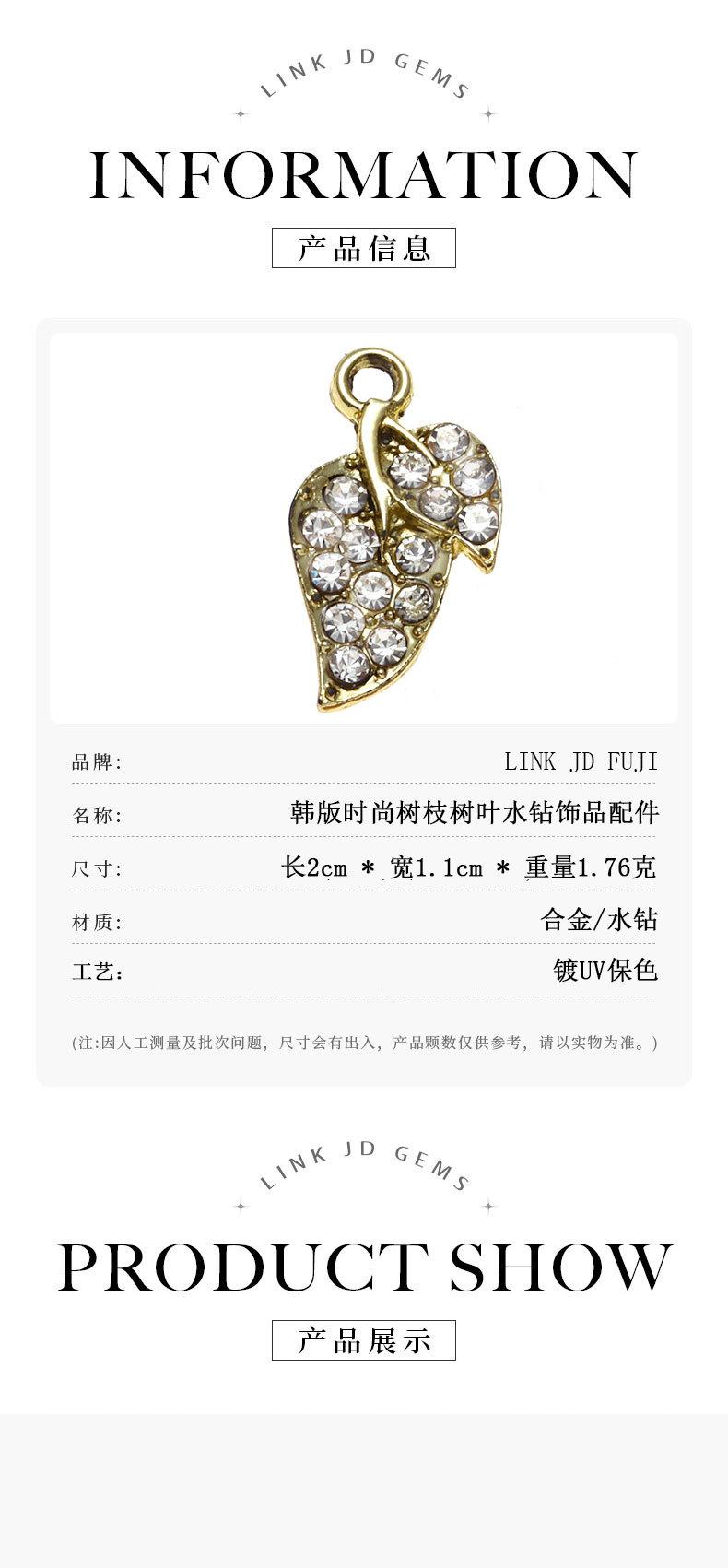 Accesorios Colgantes de Rama y Hoja con Diamante Colgante Pequeño Accesorios de Aleación Sencillos DIY Accesorios para el Cabello Pulsera Collar Llavero