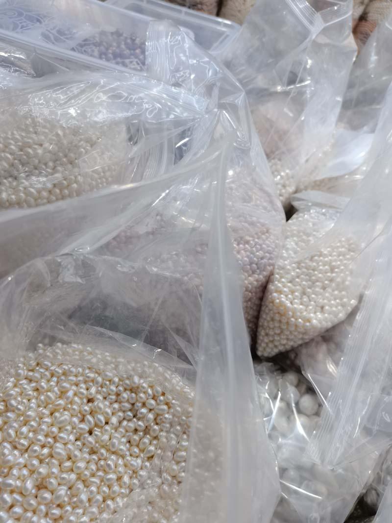 Las perlas pequeñas naturales, que cuestan decenas de yuanes el collar, no son muy redondas.