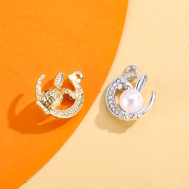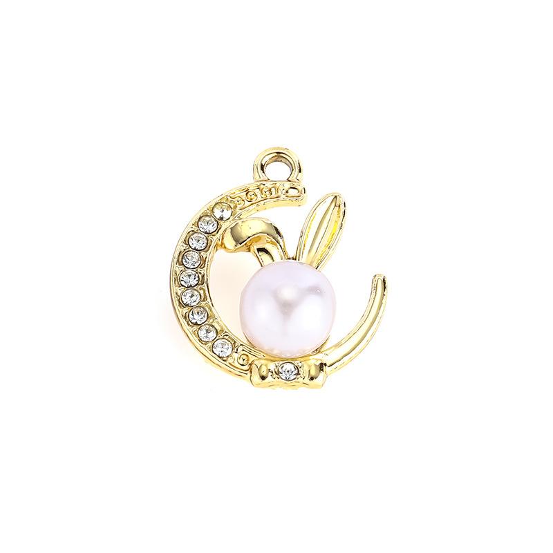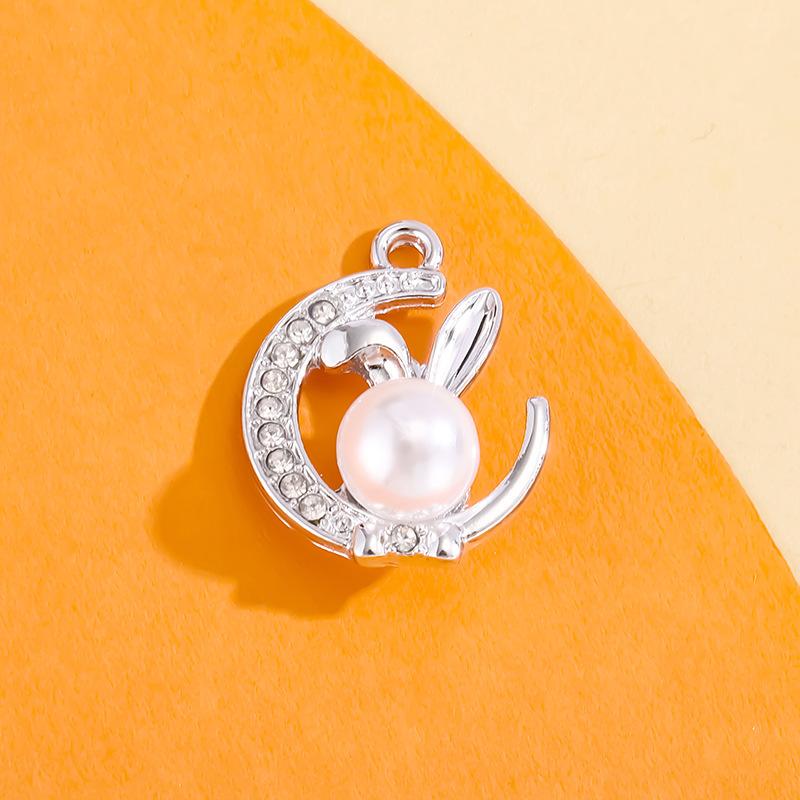 Colgante de aleación con forma de conejo y perla y diamantes, accesorio para hacer tú mismo, pulsera, collar, ropa y joyería.