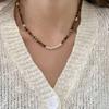 Collar de ágata de piedra natural de nicho de alta gama francés, collar de cadena de clavícula de forma irregular con cuentas vintage europeas y americanas