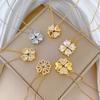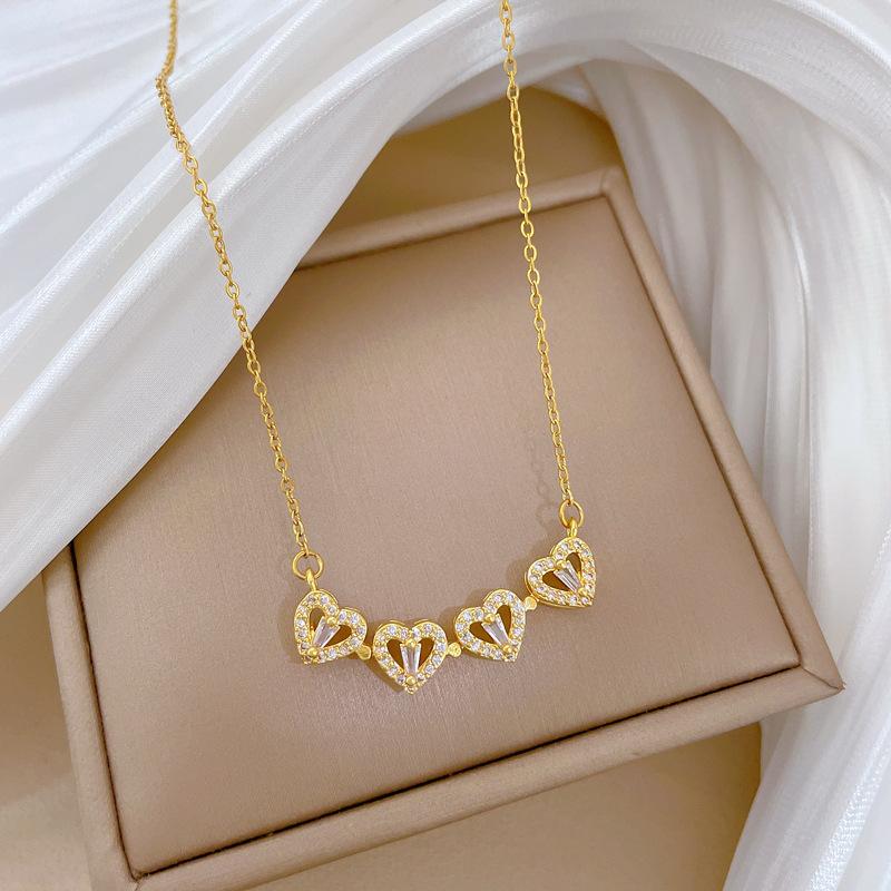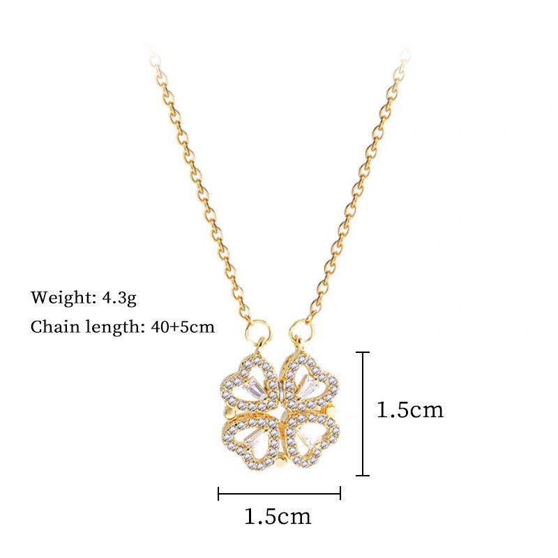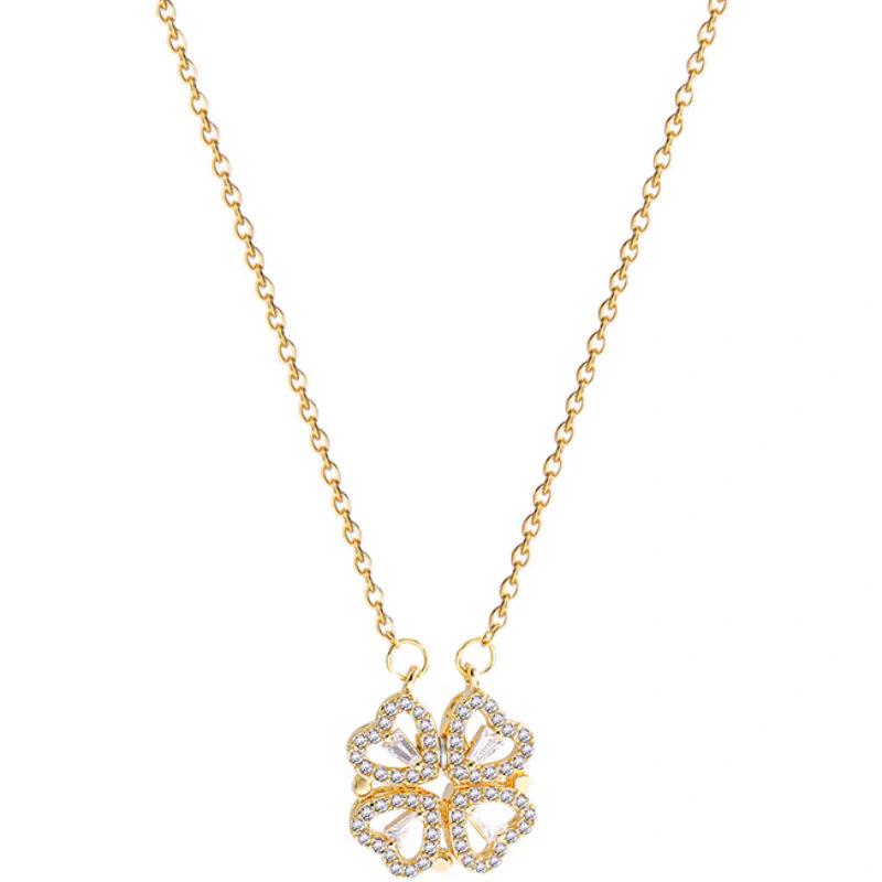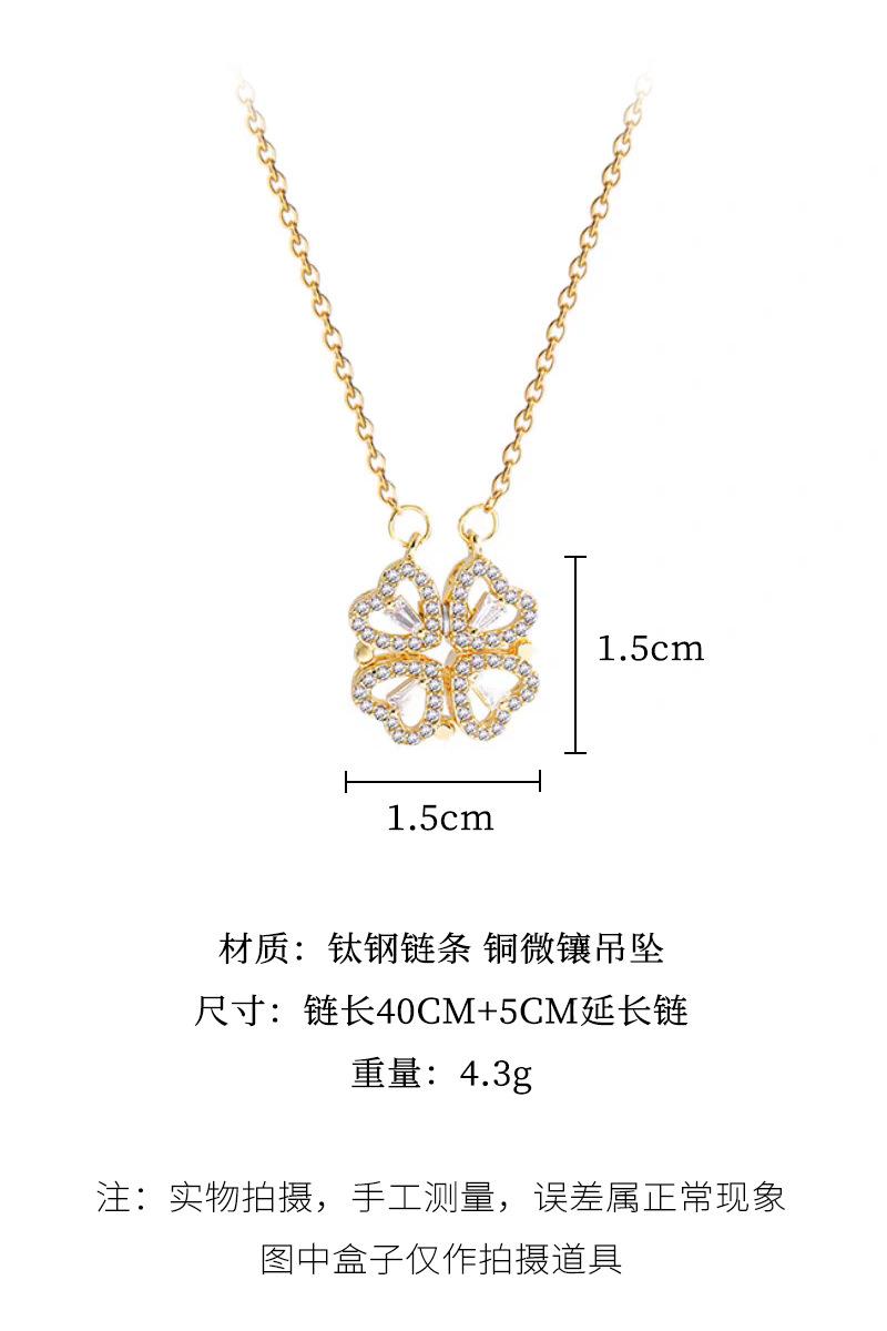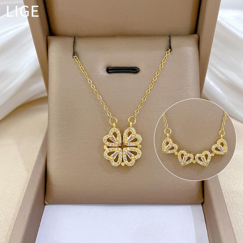 [Acero de Titanio] Collar Nuevo para Mujer Dos Usos Corazón a Corazón Apertura y Cierre Flor de Cuatro Hojas Diamante Completo Joker Cadena Clavicular Acero de Titanio