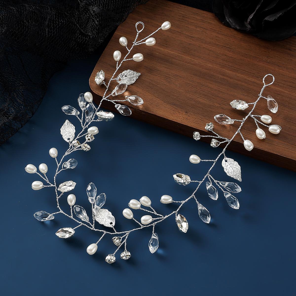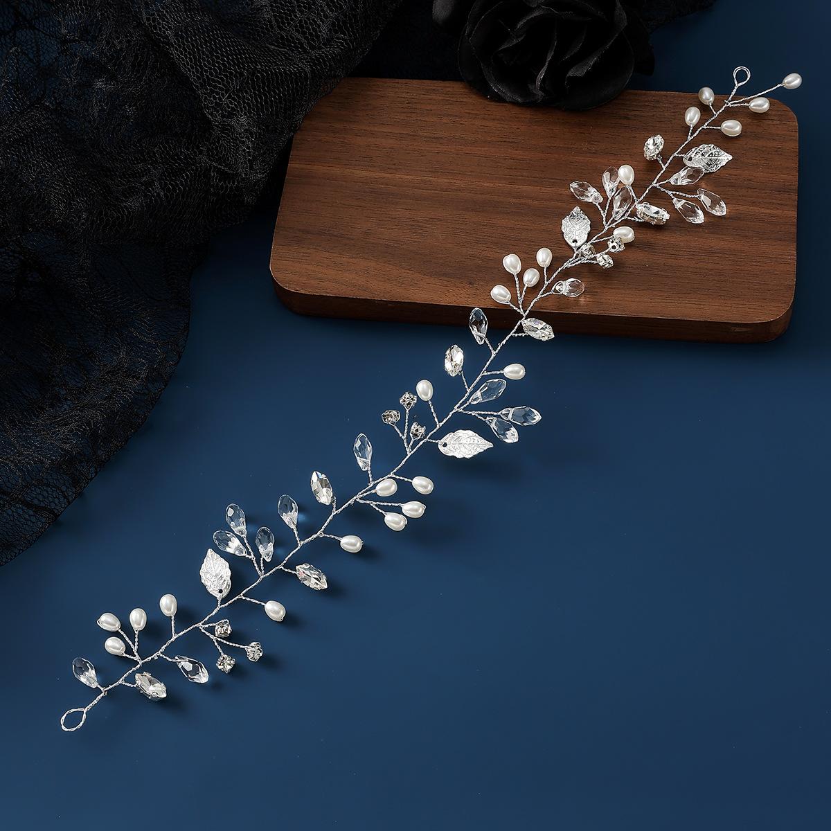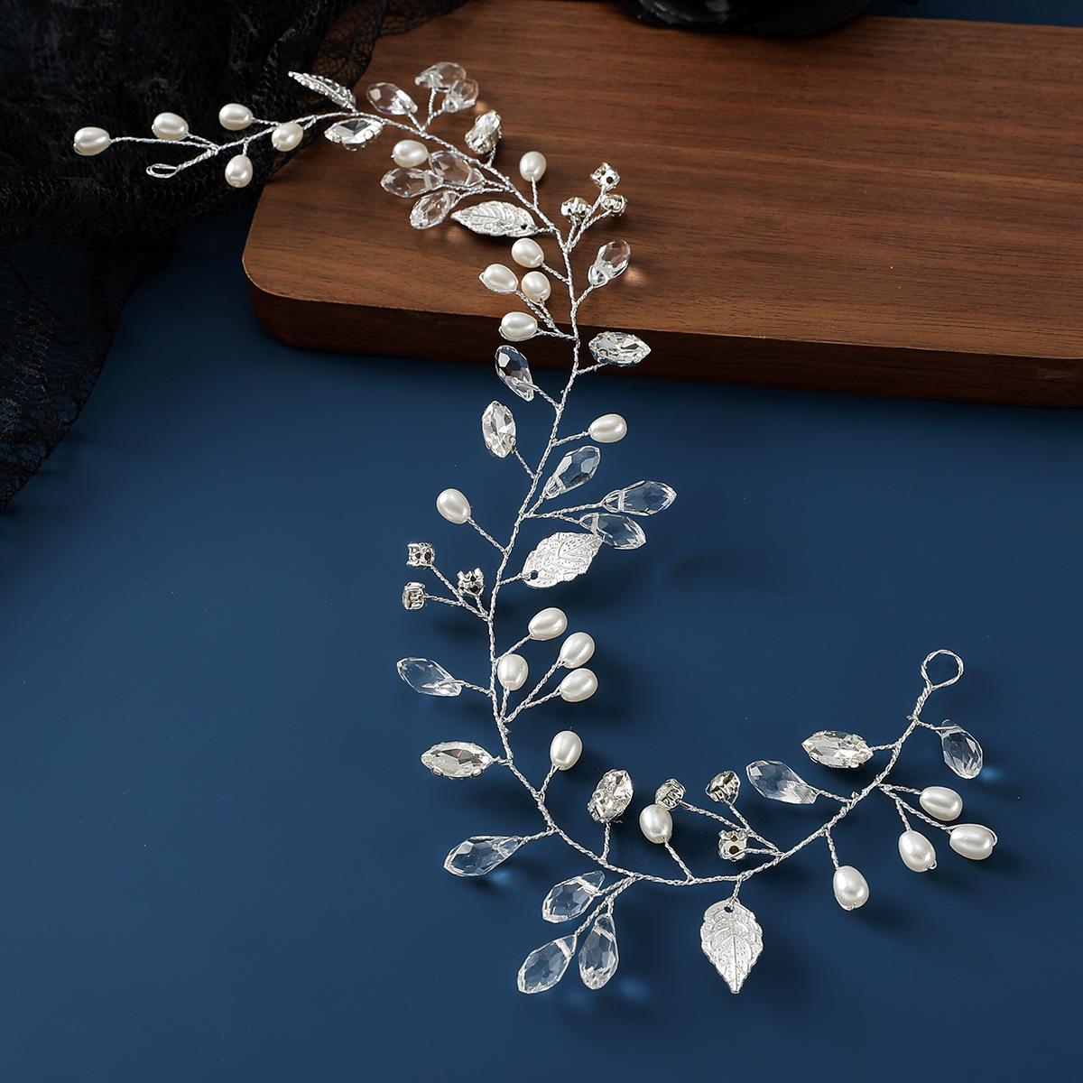 Transfronterizo nueva novia hecho a mano perla cristal aleación hoja cadena suave banda para el cabello tocado decoración de boda fábrica venta al por mayor