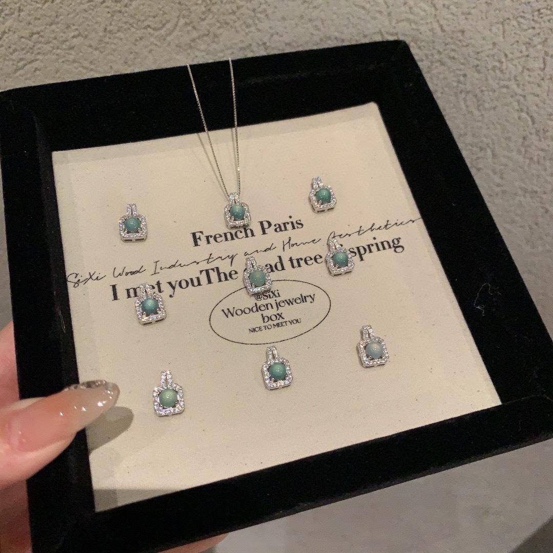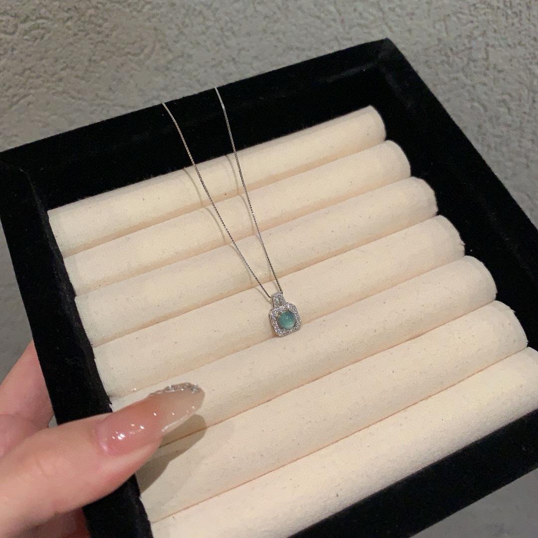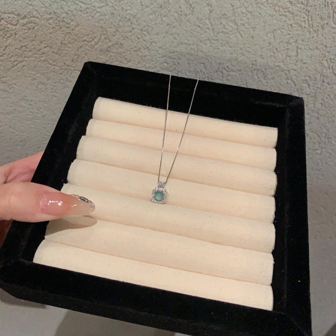 Collar cuadrado con colgante de jade azul de agua, material natural peligroso, de plata esterlina S925, para mujer, ligero, de lujo, pequeño, estilo chino, cadena de clavícula.