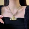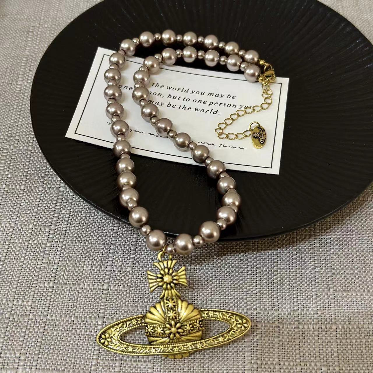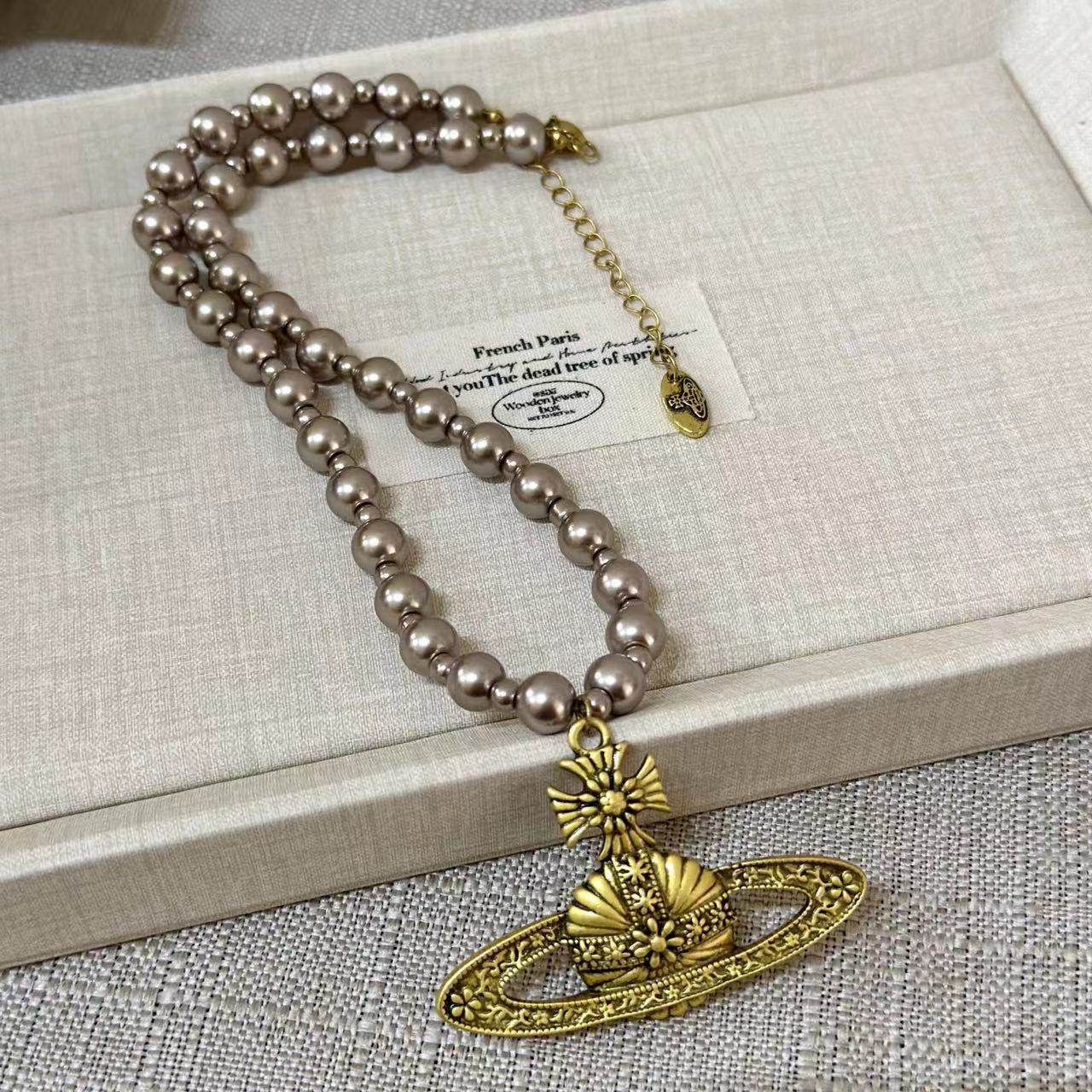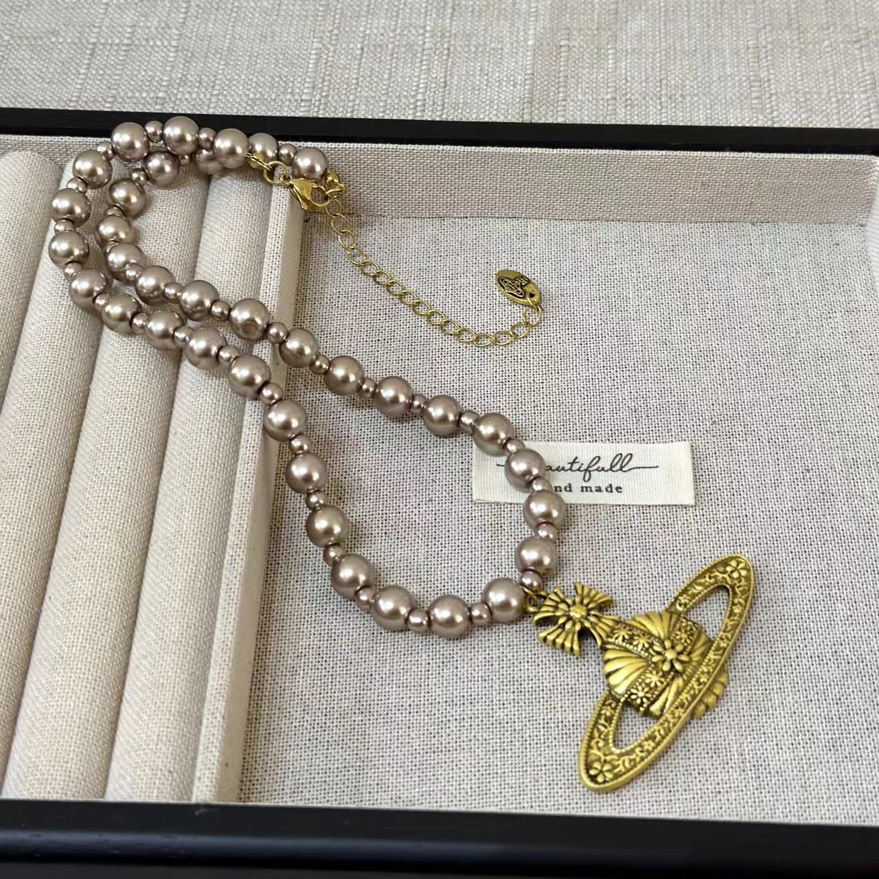 Collar Planeta Saturno Perla Oro Champán Cadena Clavícula para Mujer Otoño e Invierno Sentido de Lujo Ligero de Alta Gama Cadena de Lana Nueva Moda 2024