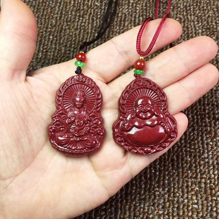 Colgante de cinabrio, oro púrpura, arena, Guanyin, Bodhisattva, Buda Maitreya, amuleto de la paz, para hombres y mujeres, collar masculino de cinabrio, Buda Guanyin