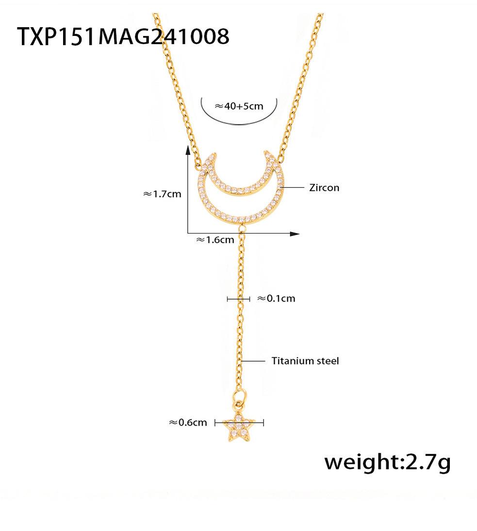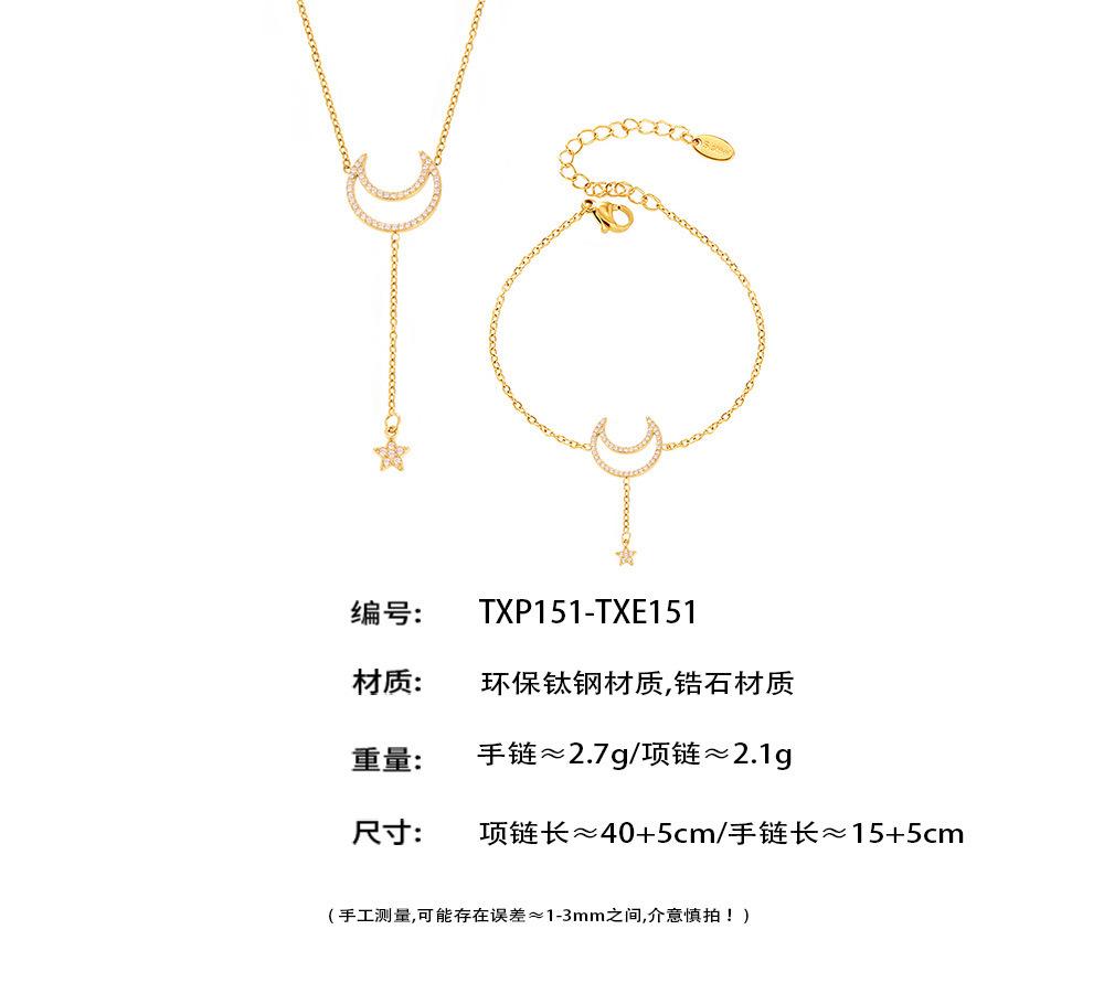 TXP151-Golden Star and Moon Diamond Necklace, TXP151-Steel Star Moon Diamond Necklace, TXE151-Golden Star and ...