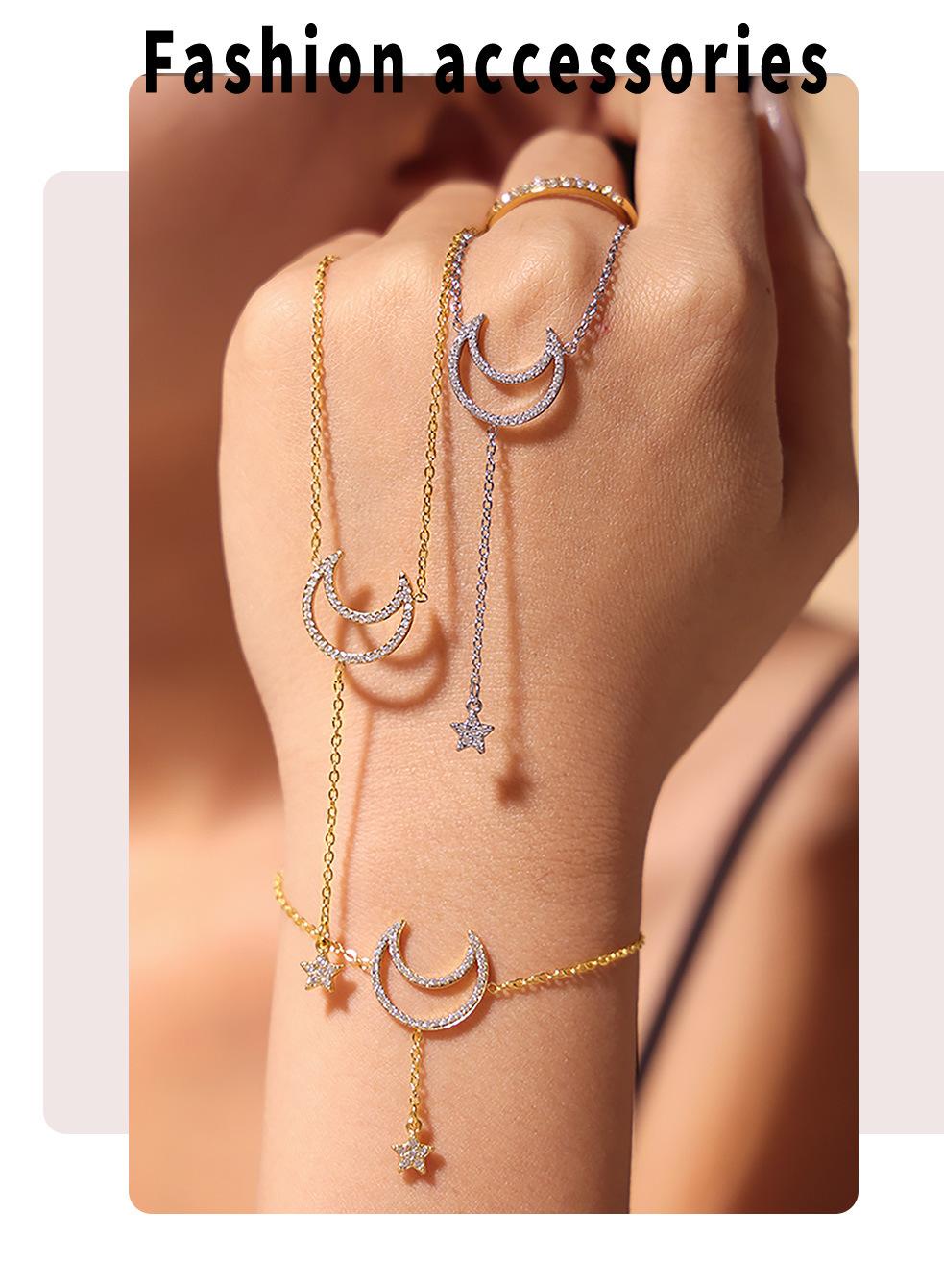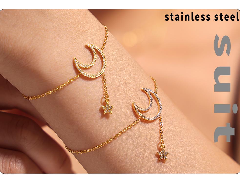 TXE151-Golden Star and Moon Diamond Bracelet