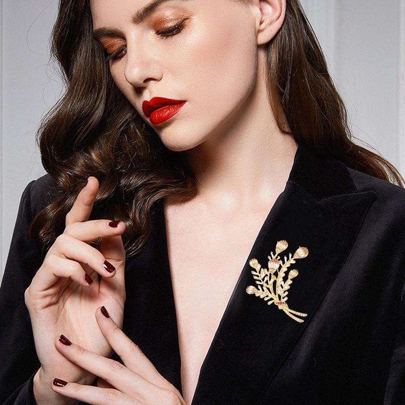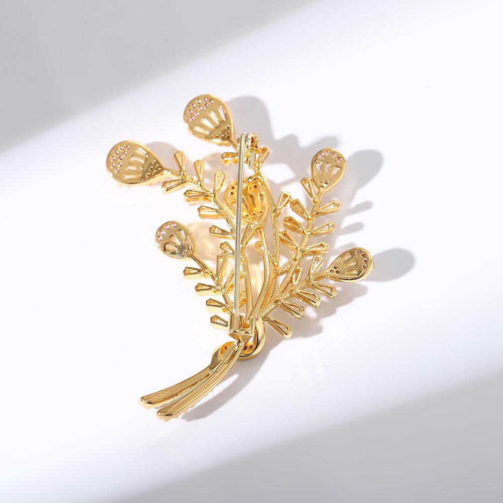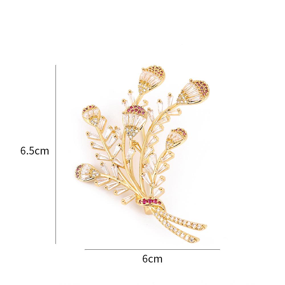 Broche de Cobre Estilo Coreano Regalo Espiga de Trigo Circonita Micro-incrustada Pin Ramo Corsage de Lujo para Mujer Accesorios para Abrigo de Traje de Alta Gama