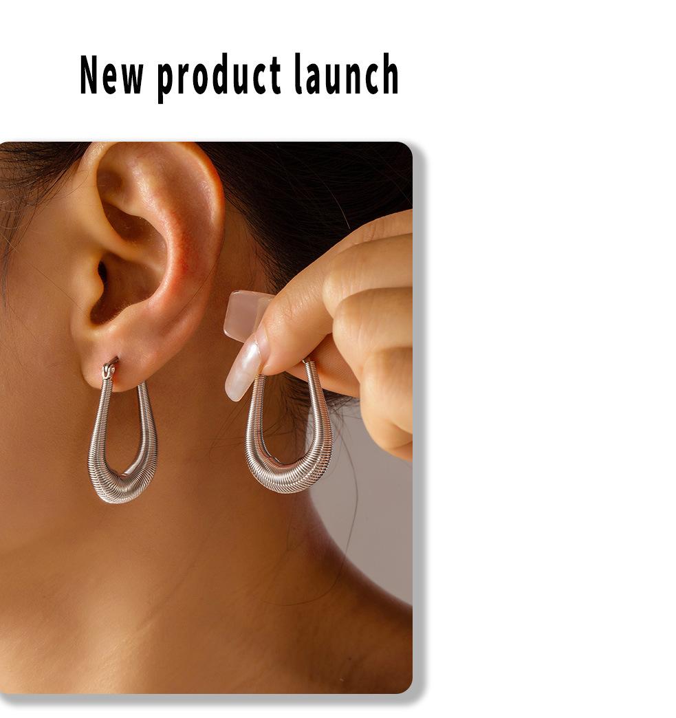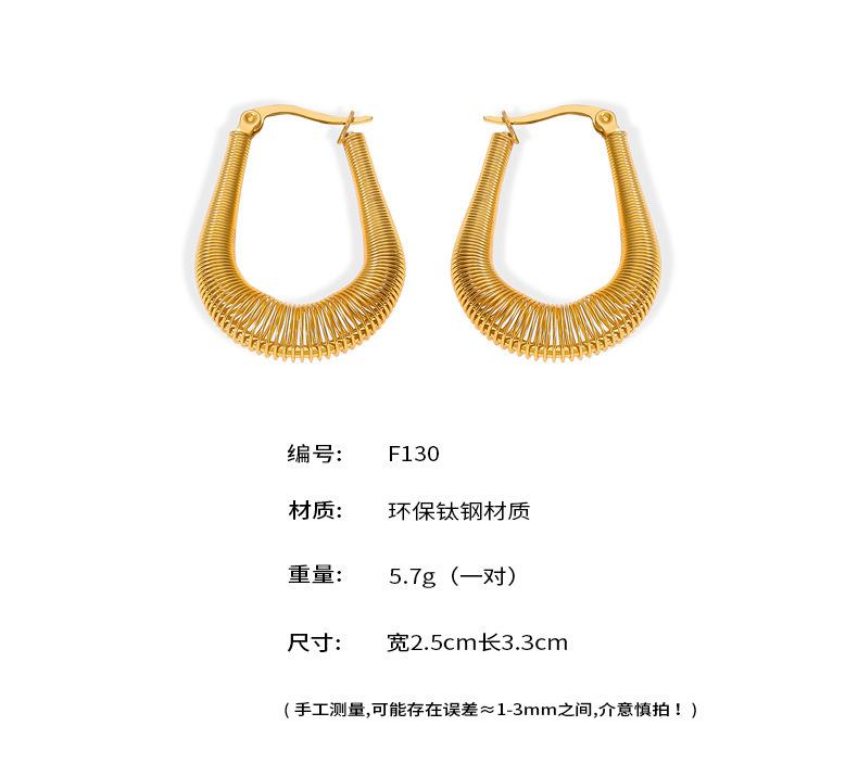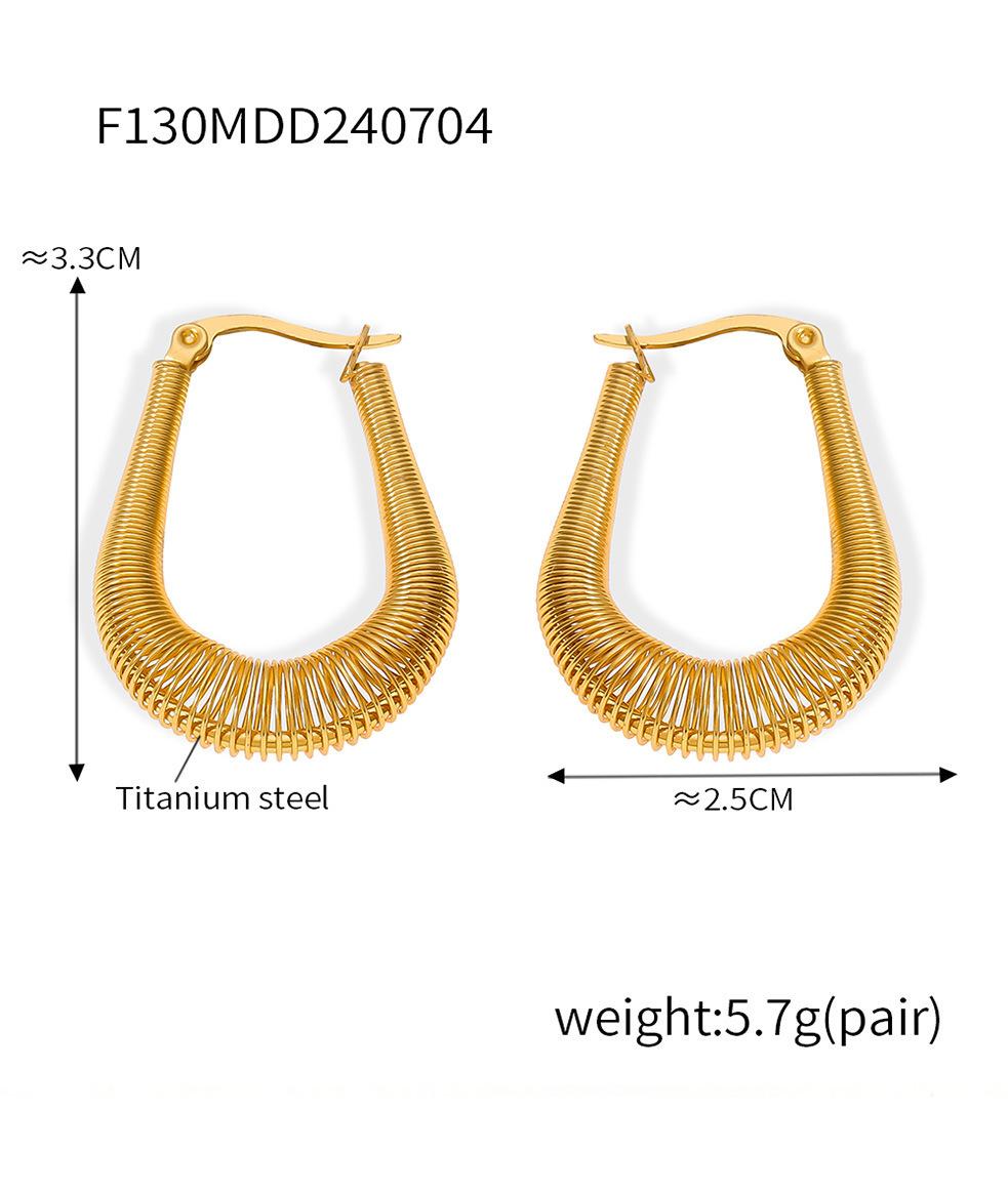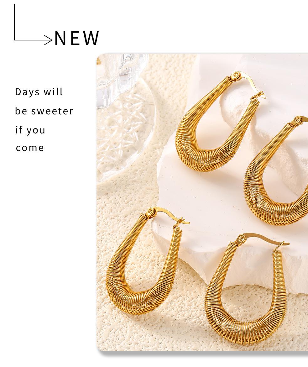 Pendientes de moda estilo retro europeo y americano con personalidad que no se desvanecen, con textura en forma de U de primavera, chapados en oro real y acero de titanio.