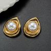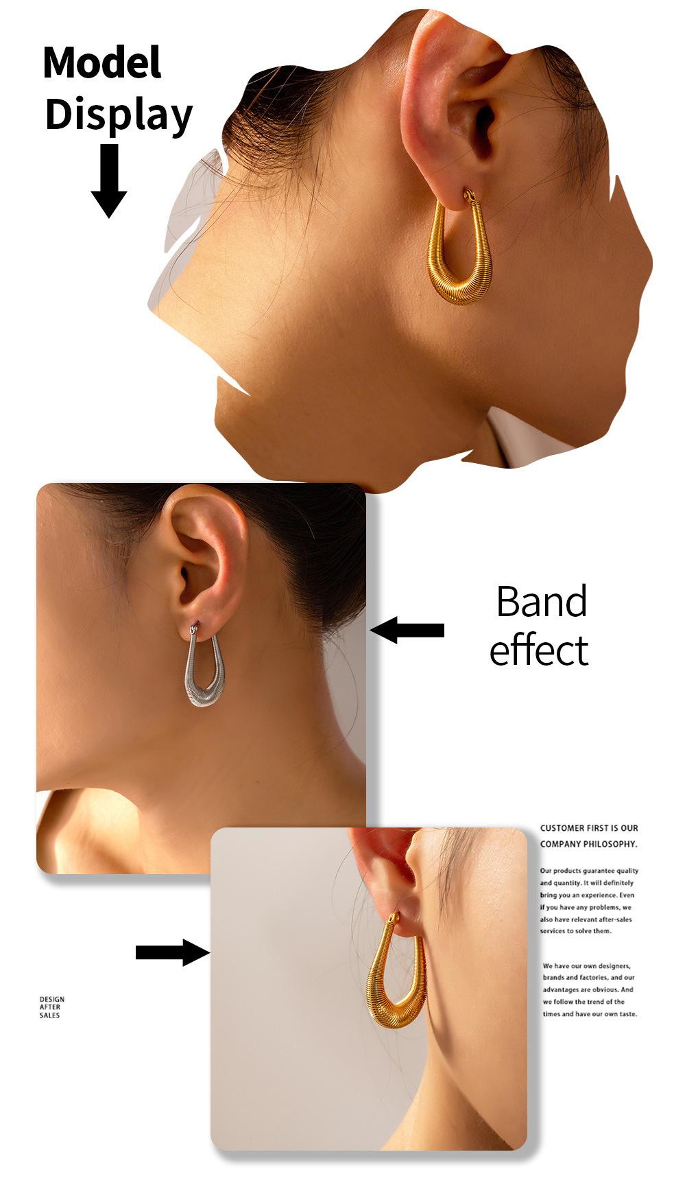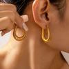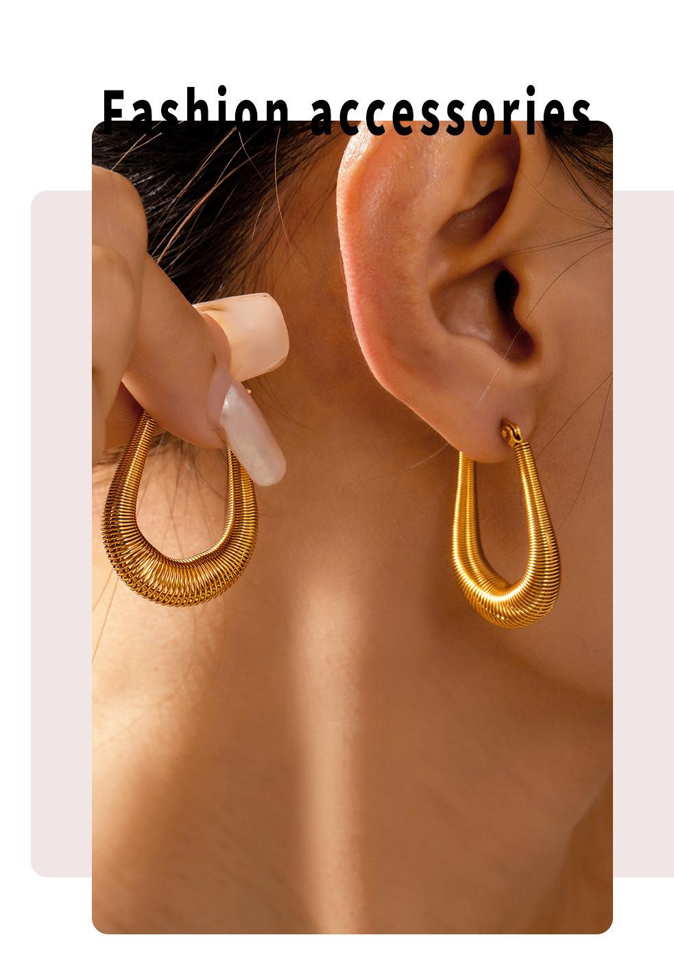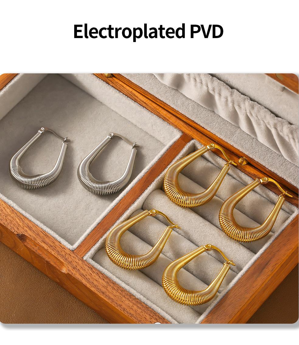 Pendientes de moda estilo retro europeo y americano con personalidad que no se desvanecen, con textura en forma de U de primavera, chapados en oro real y acero de titanio.