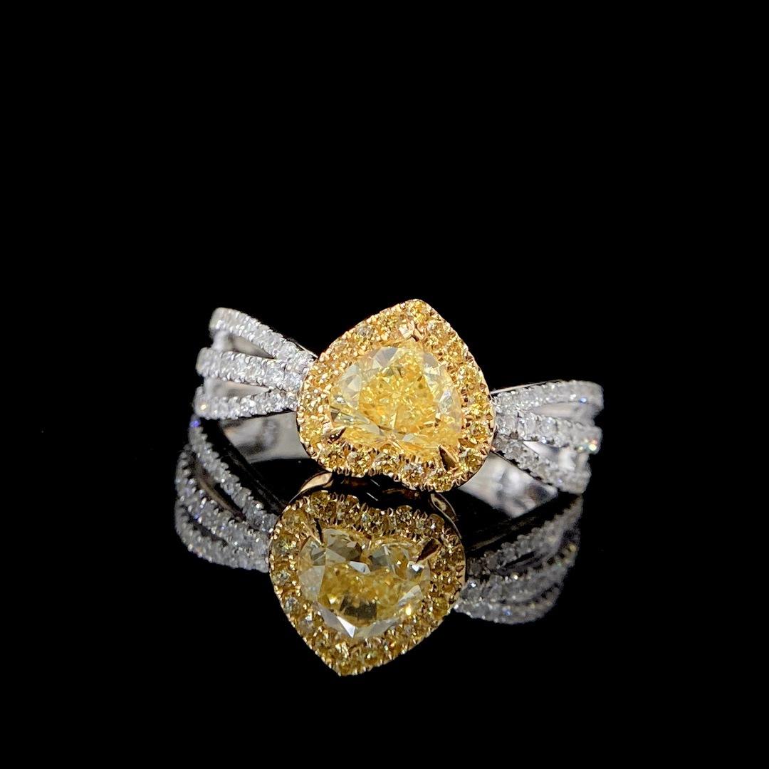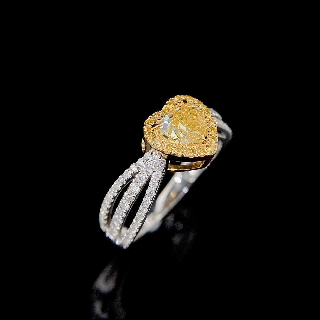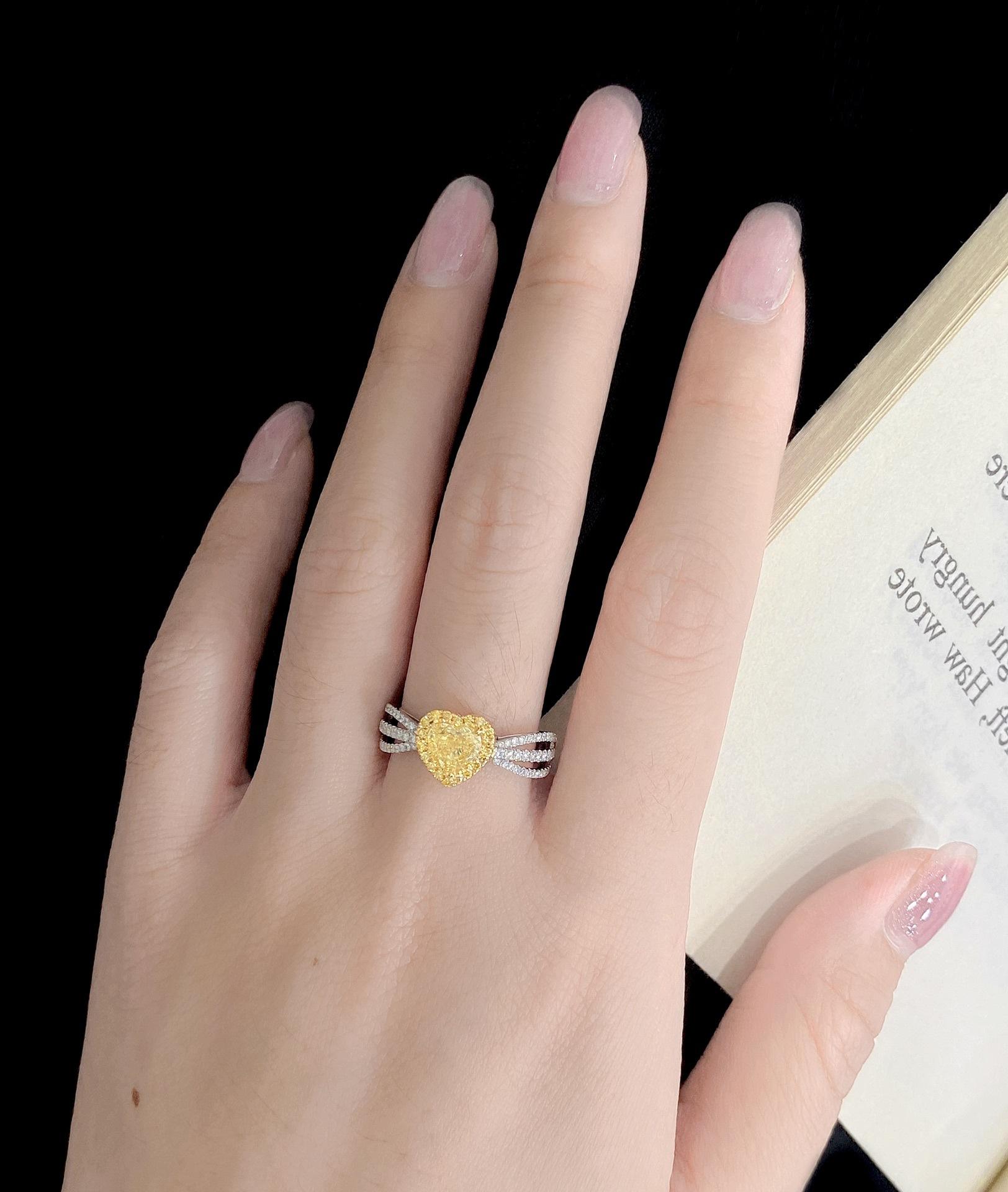 Anillo de Oro de 18K con Incrustaciones de Diamante Amarillo Amor para Mujer, Amuleto de la Suerte, Lujo Ligero, Exquisito, Nicho, Sentido del Diseño de Personalidad, Accesorios de Moda