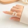Anillo de tres perlas redondas para mujer, ligero, de lujo, de alta gama, diseño de nicho, estilo retro, apertura ajustable.