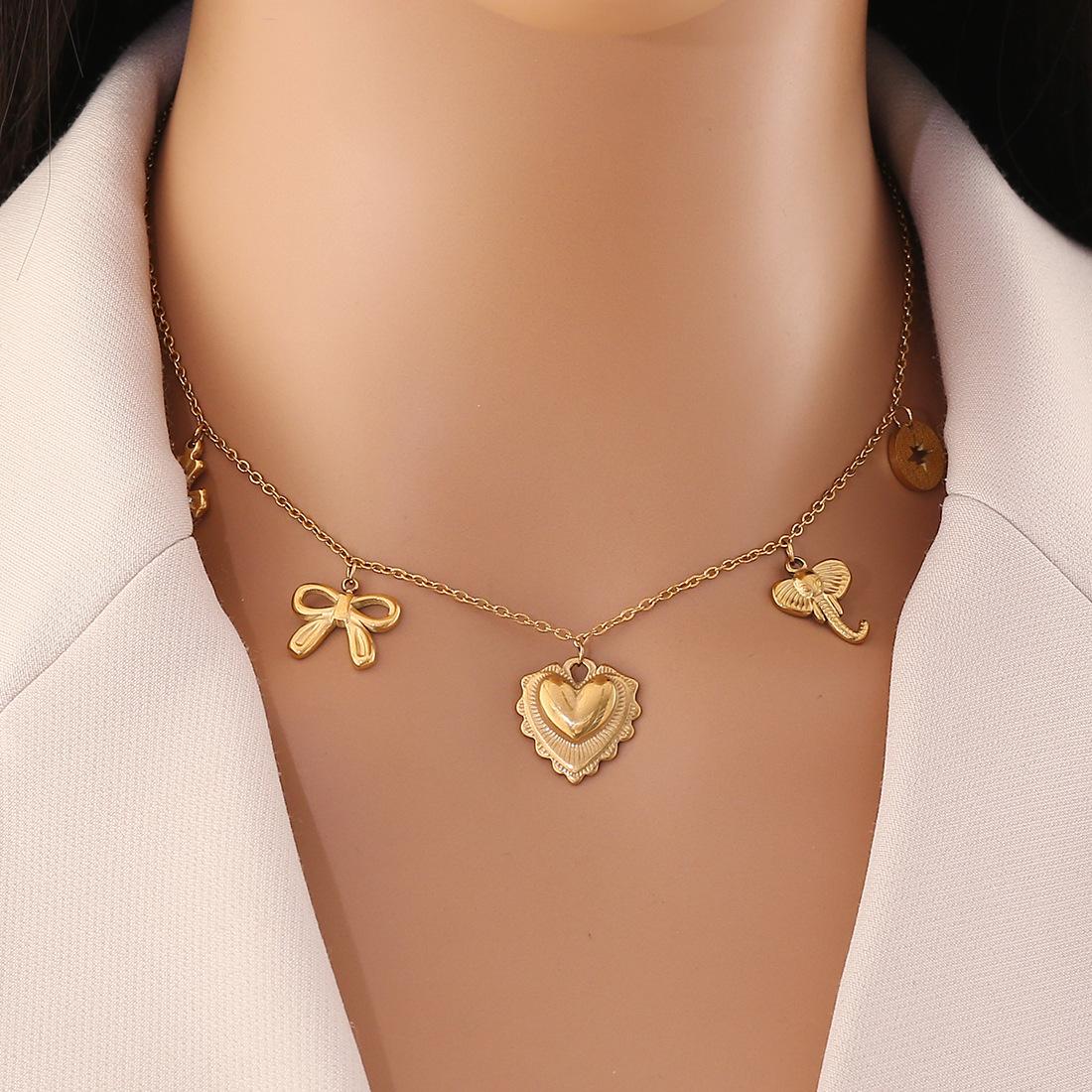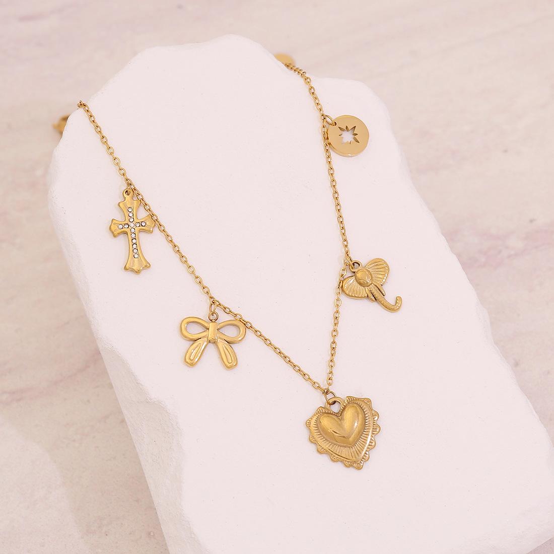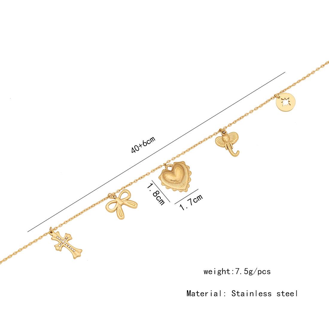[Ice Meng] Collar con colgante de amor, cruz de arco multielemento, acero de titanio, cadena de clavícula con elefante N1495