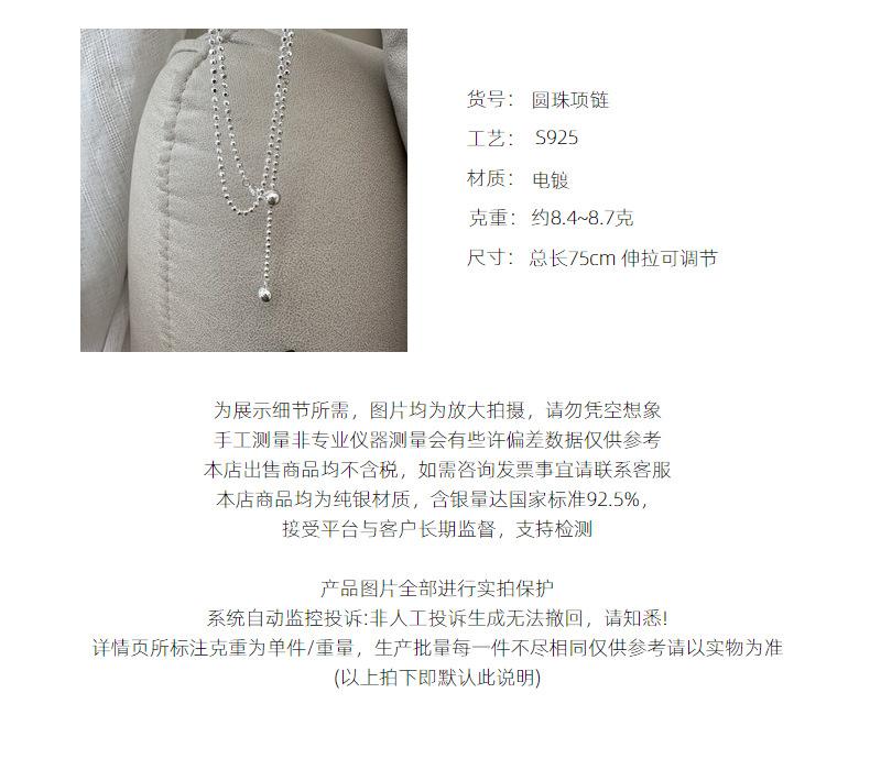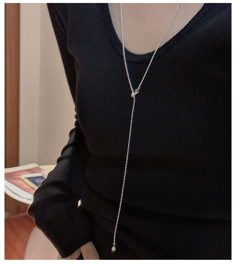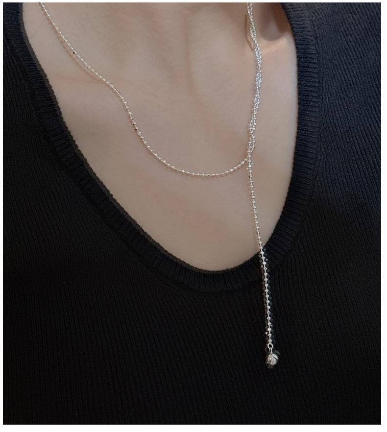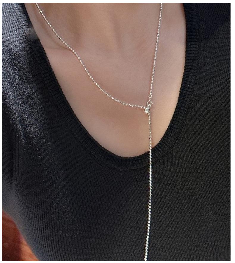 Collar con colgante de cuentas de estilo coreano, diseño de nicho, estilo coreano, cadena de suéter simple, estilo coreano, plata S925