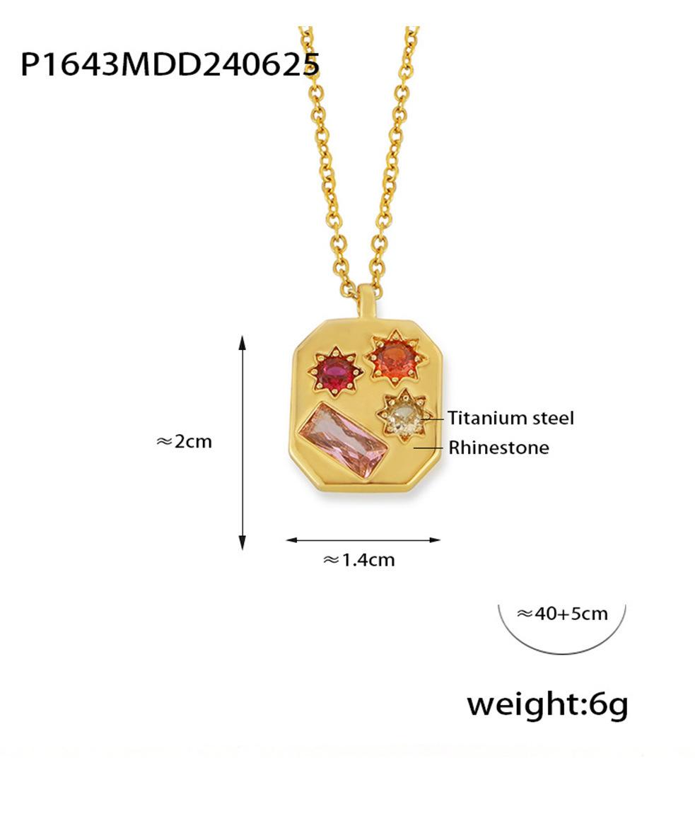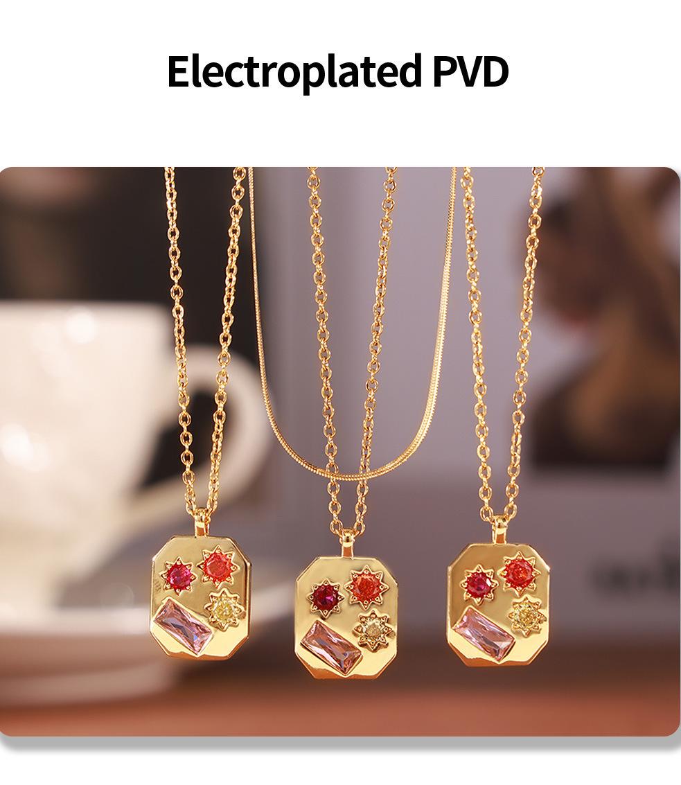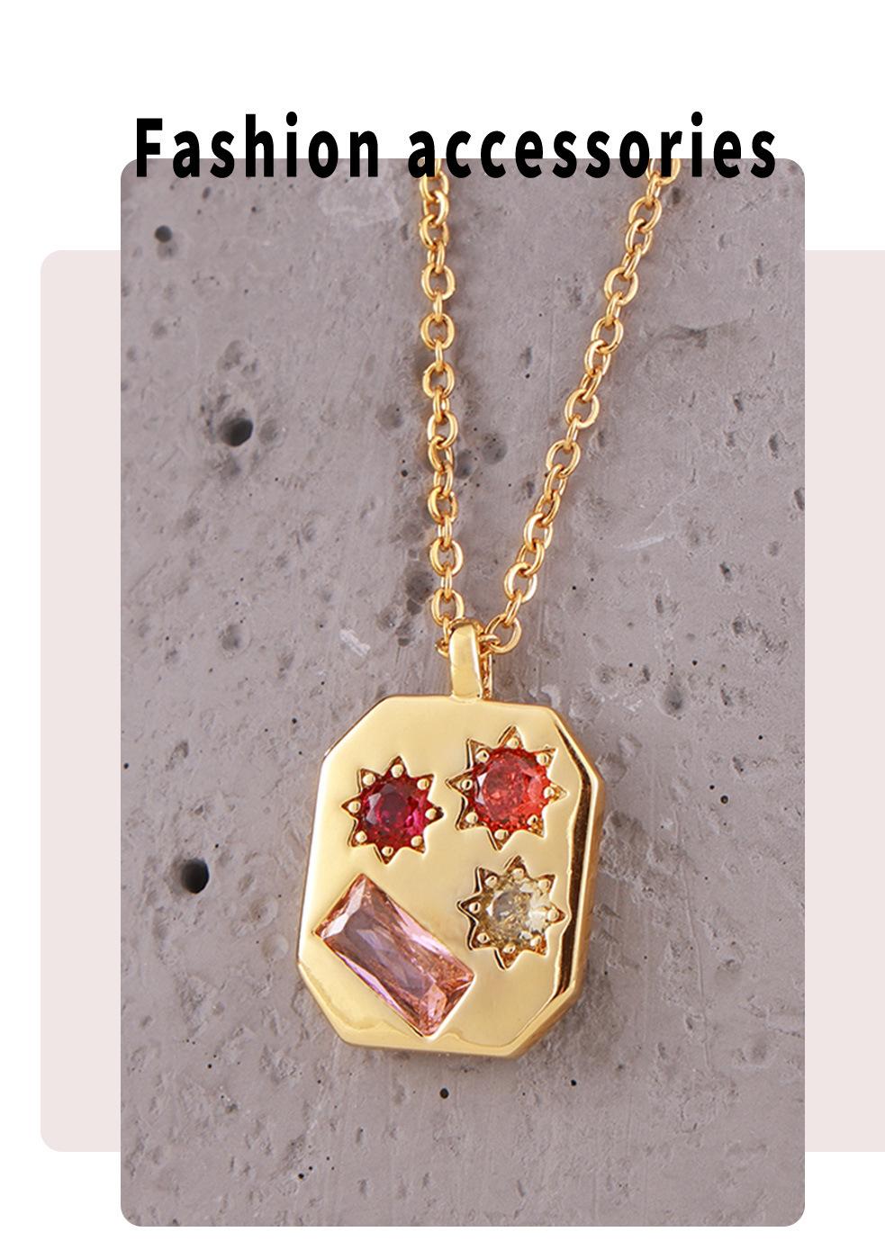 Colgante de circonita de color elegante, estilo retro francés, estilo artístico, octogonal, para mujer, de acero de titanio chapado en oro de 18 quilates.
